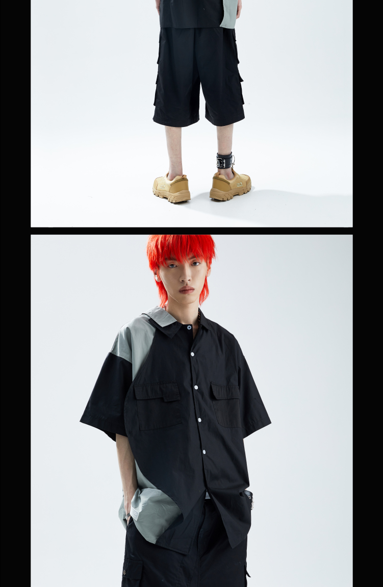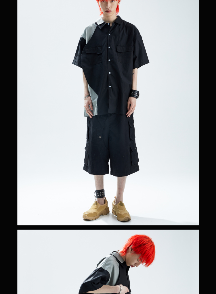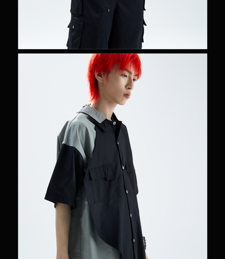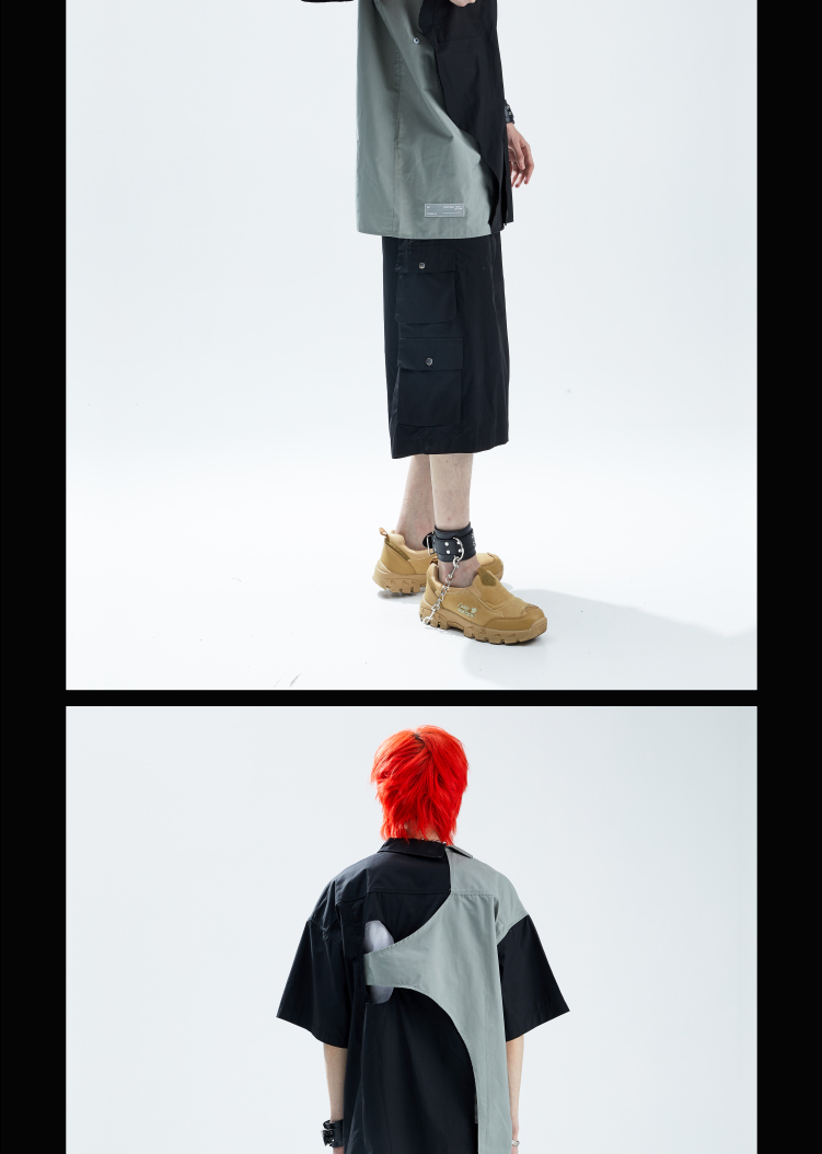SFTTR 2021SS 曲线分割后背镂空解构拼接男女不规则异型裁片衬衫