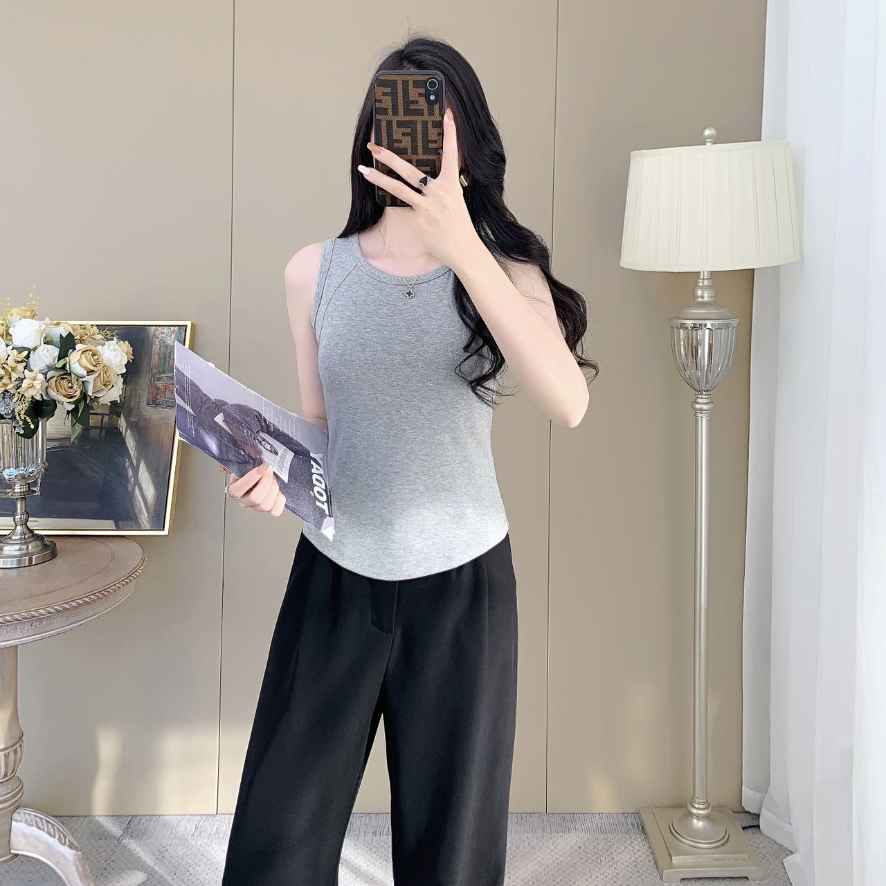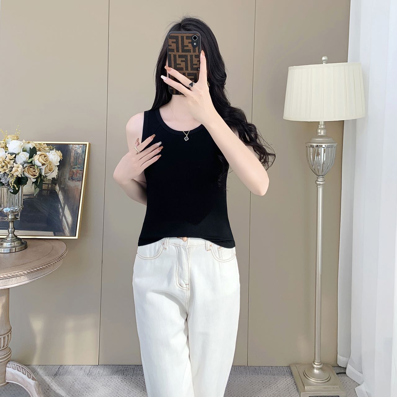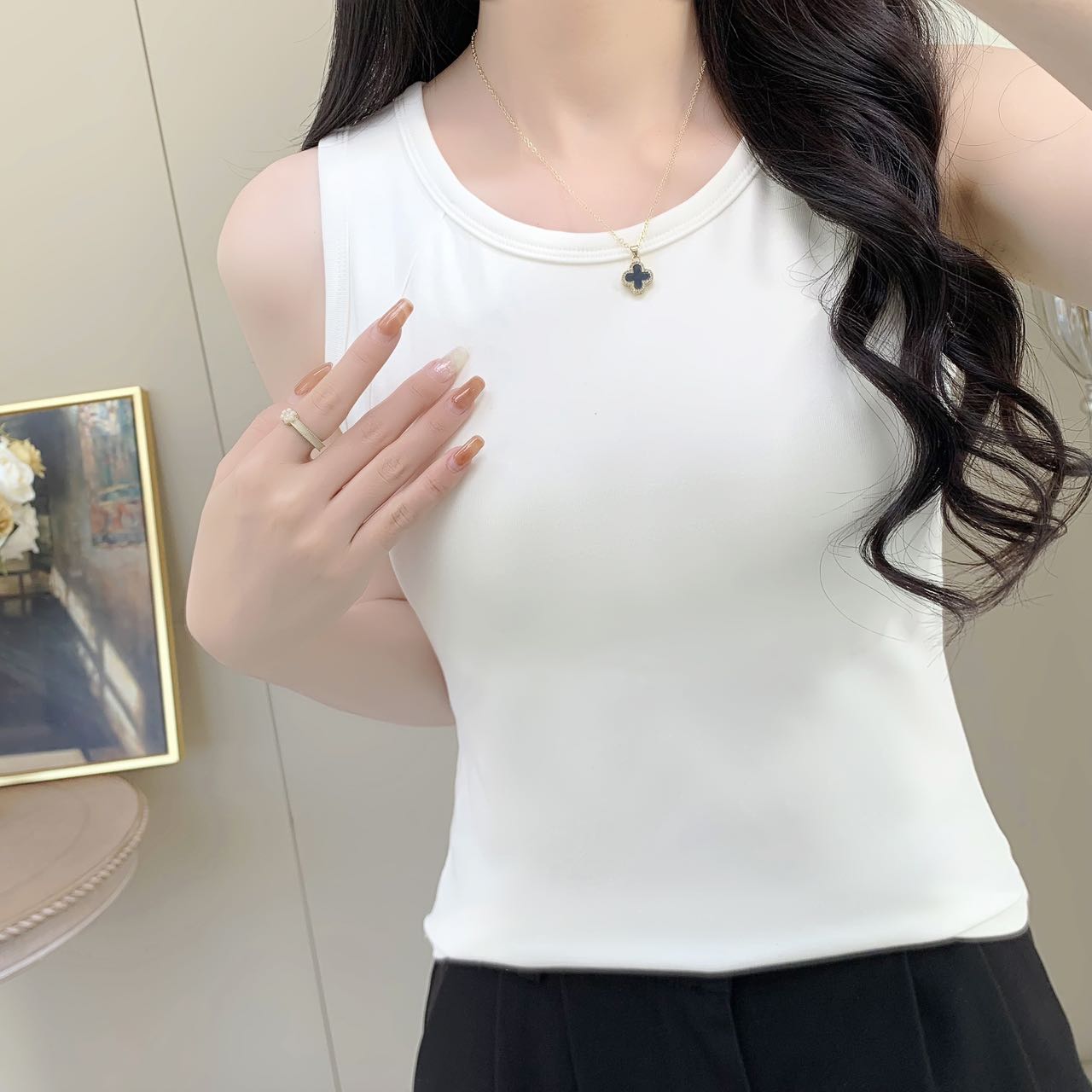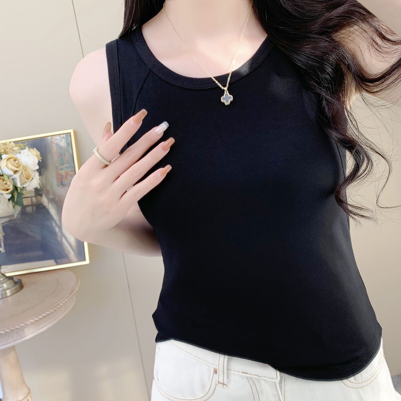 【99元2件】女士夏季鱼骨背心针织棉背心宽肩带背心(带胸垫)【FF25503】