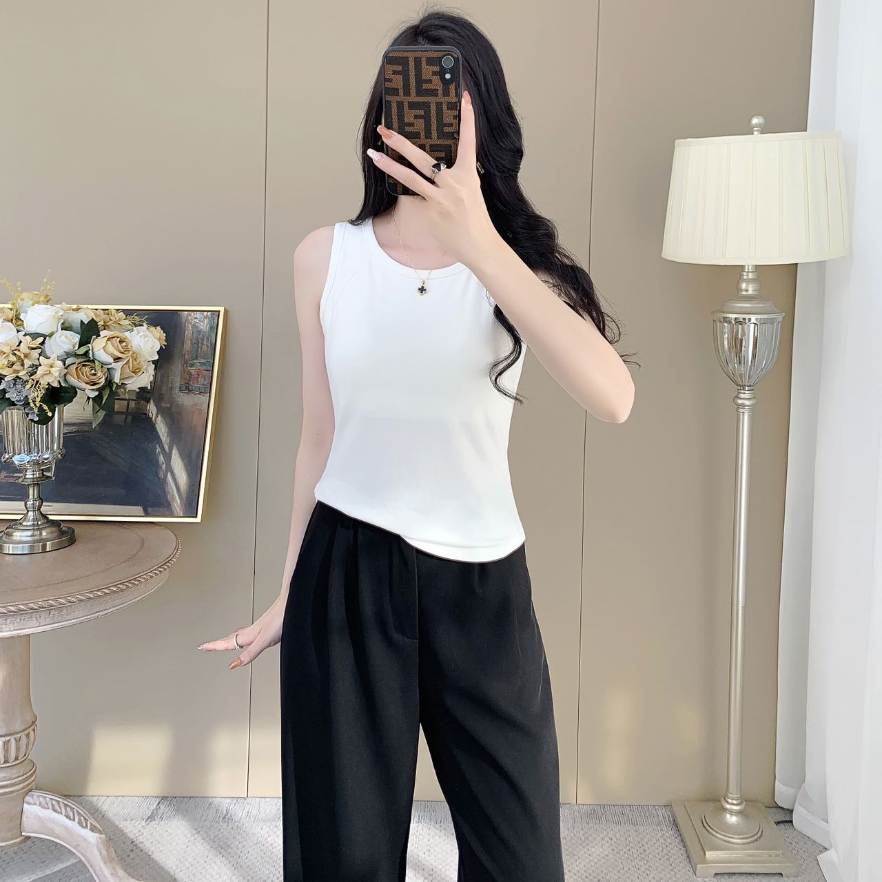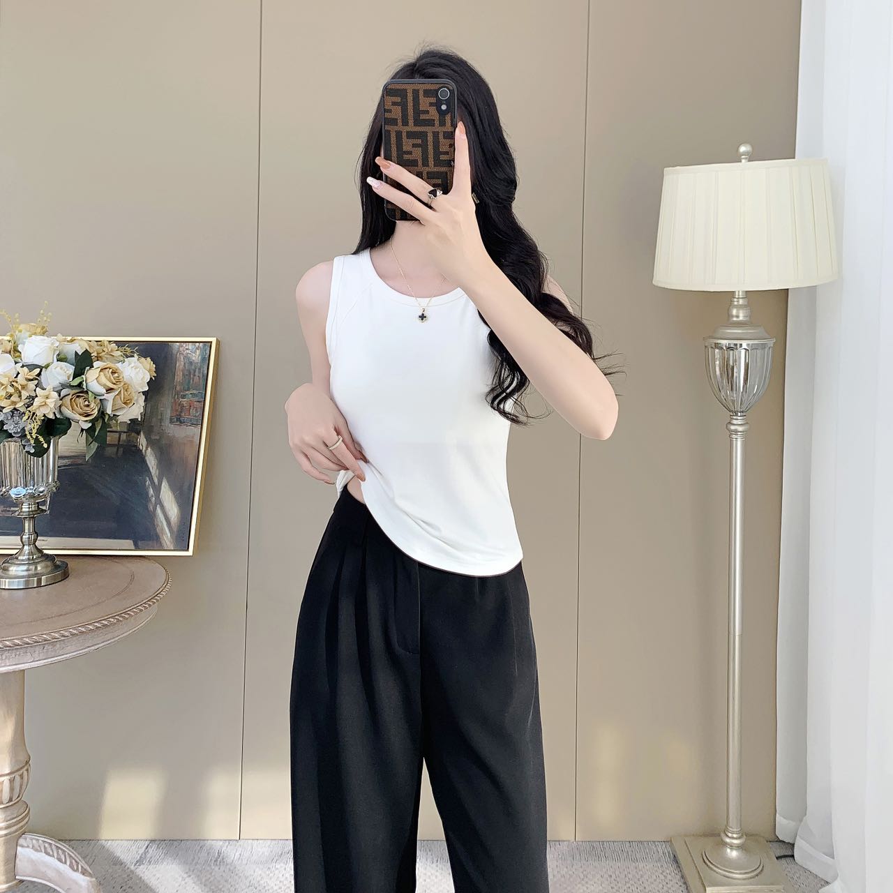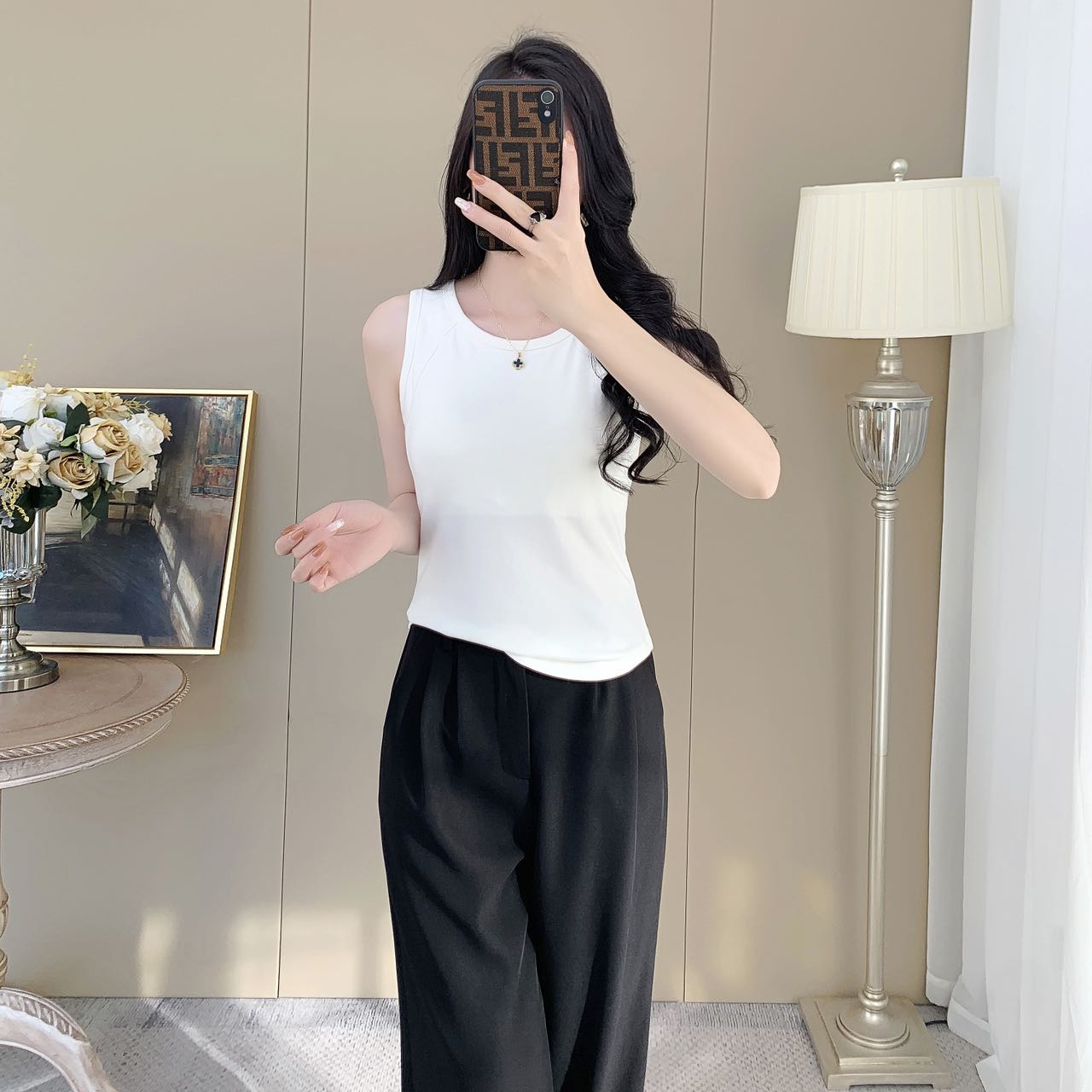 【99元2件】女士夏季鱼骨背心针织棉背心宽肩带背心(带胸垫)【FF25503】