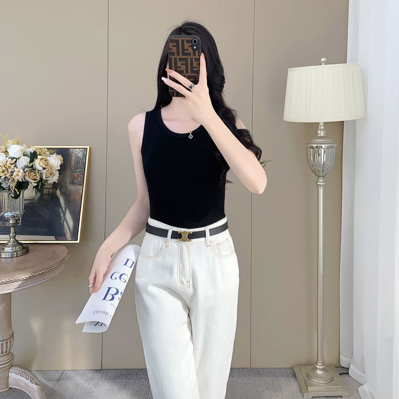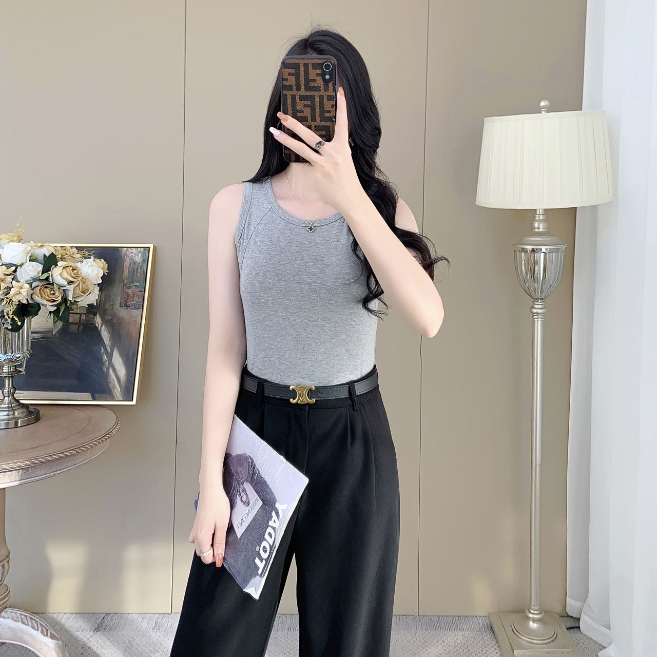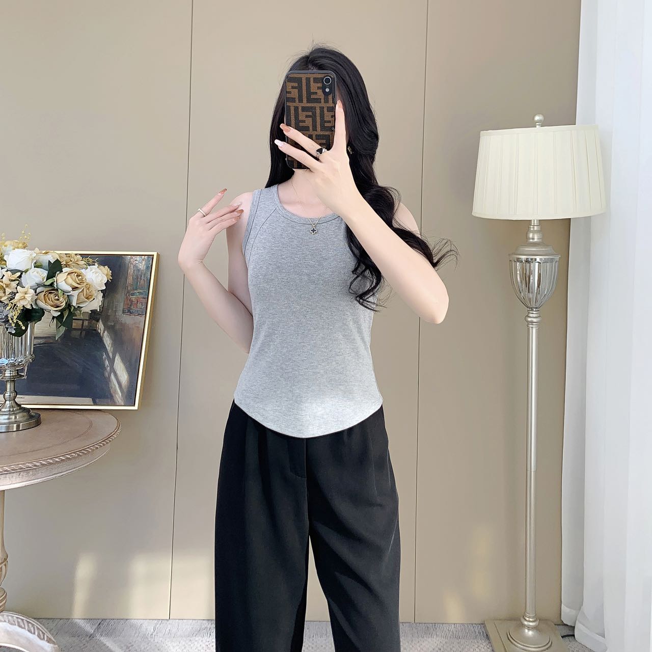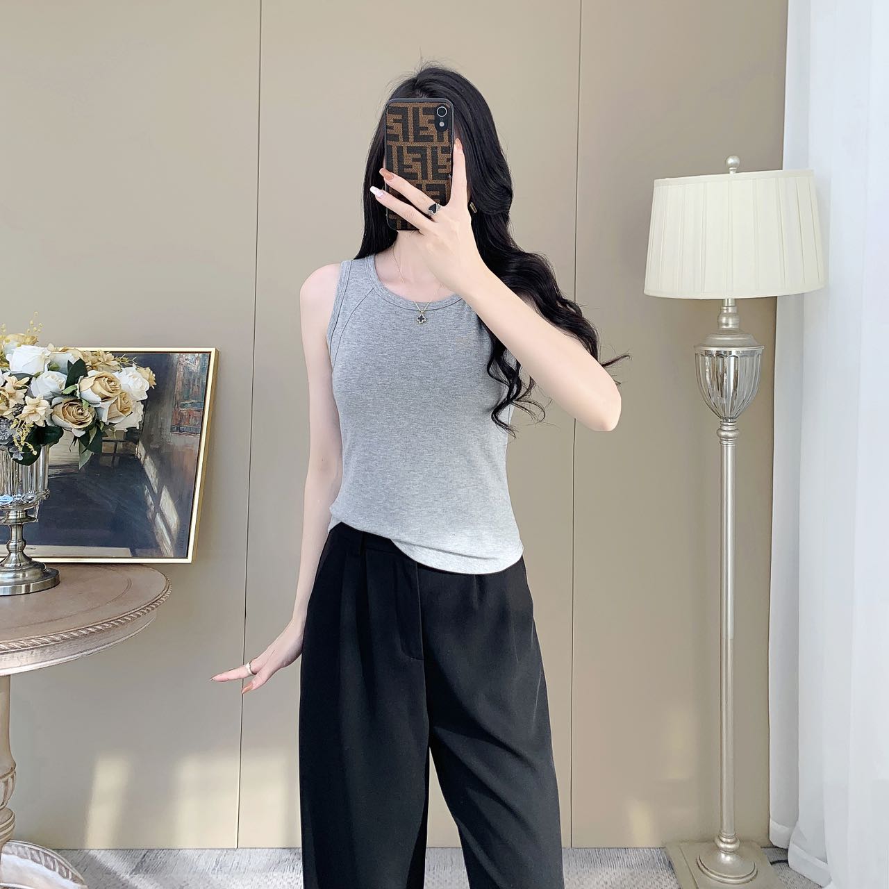 【99元2件】女士夏季鱼骨背心针织棉背心宽肩带背心(带胸垫)【FF25503】