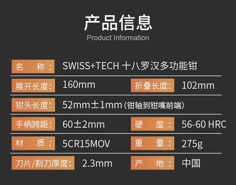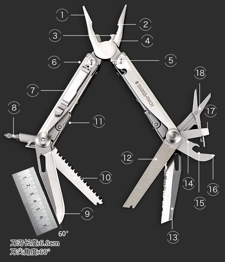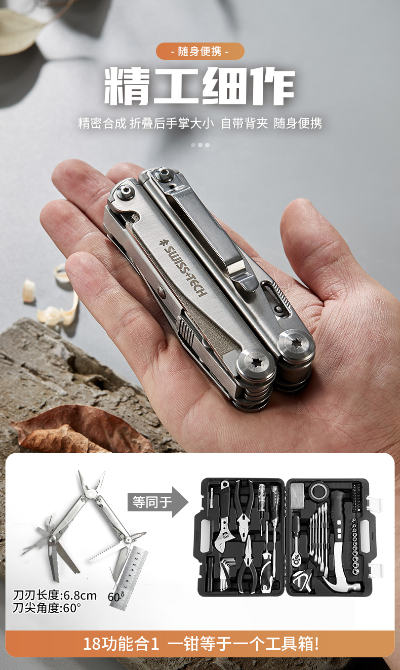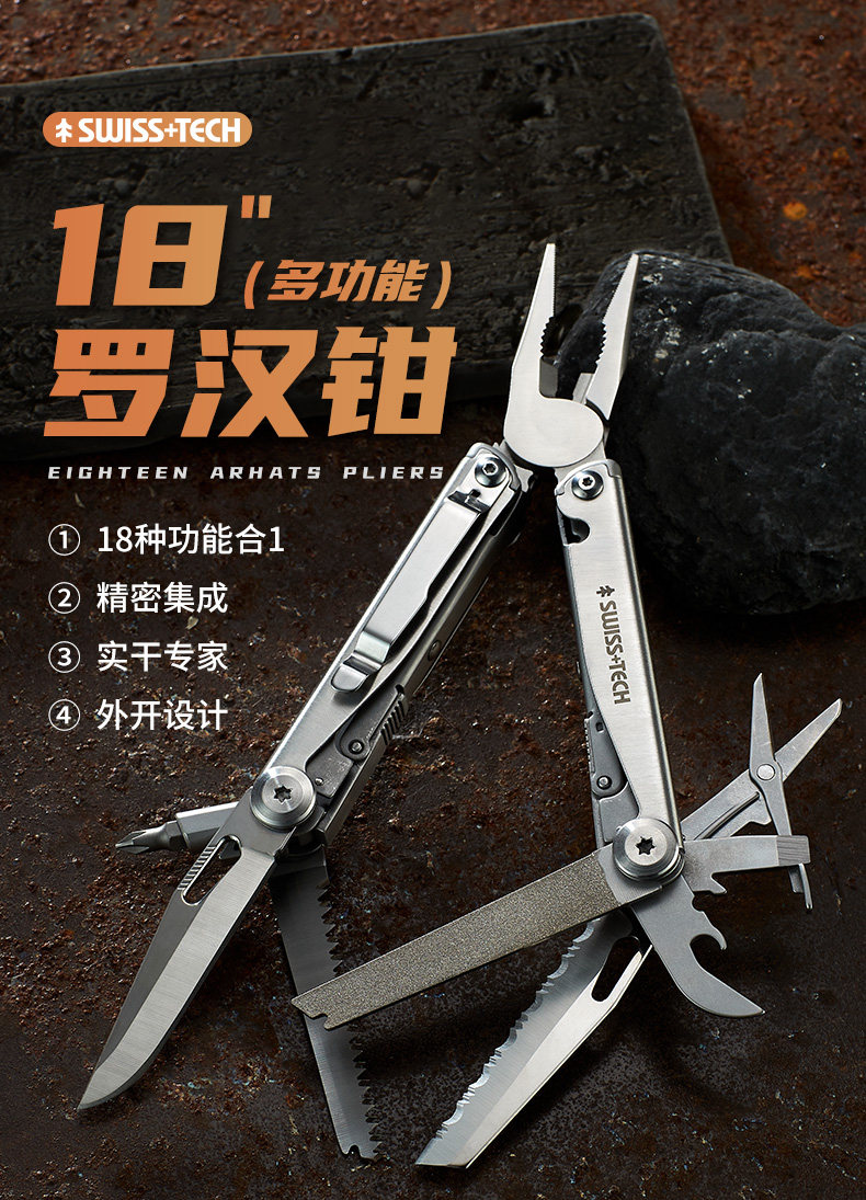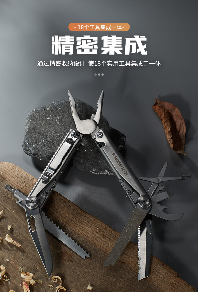 SWISS+TECH瑞士科技18合1霸王龙多功能户外工具钳野外露营求生多用工具