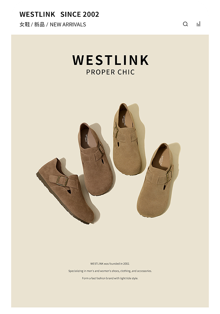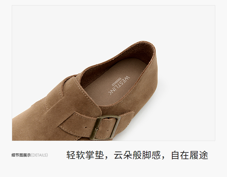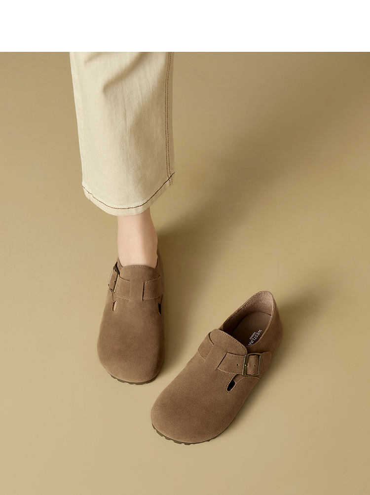 西遇全包勃肯鞋女新款百搭配裙子一脚蹬软底单鞋平底鞋V0056423