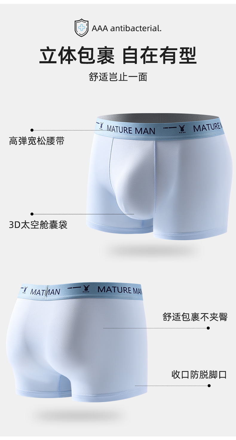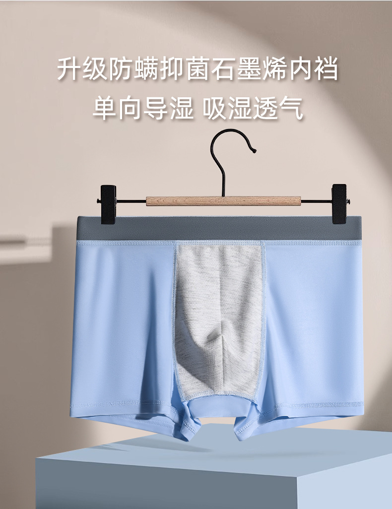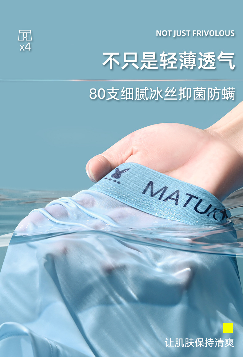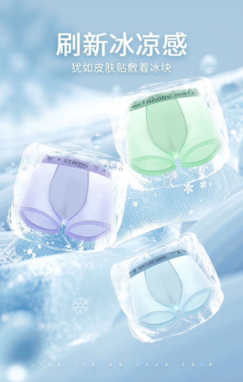 【裸感冰丝,清爽一夏❄拍1发3!】男士必备!80支抗菌冰感内裤,轻薄无痕,舒适到底!冰感无痕来袭 薄款男士内裤纯色平角裤 冰丝男生抗菌四角短裤头
