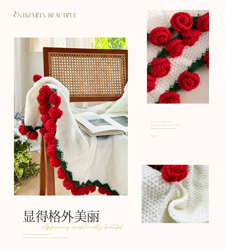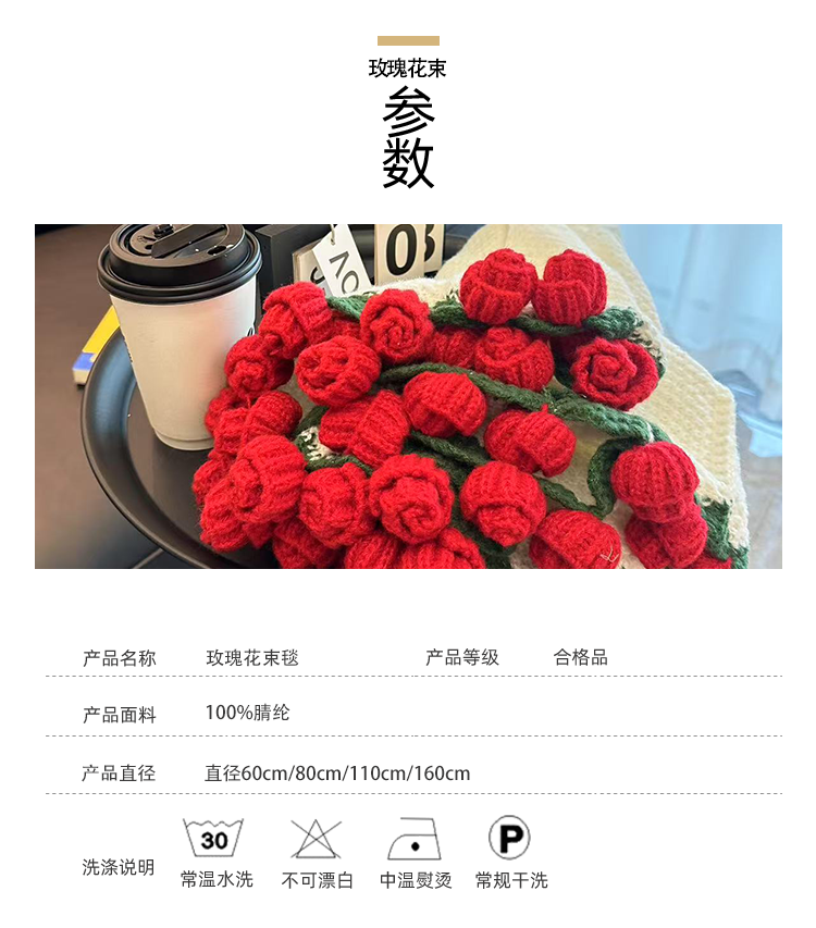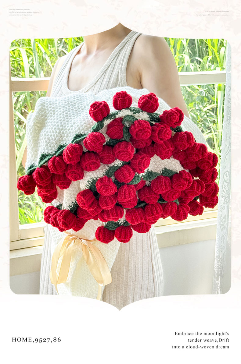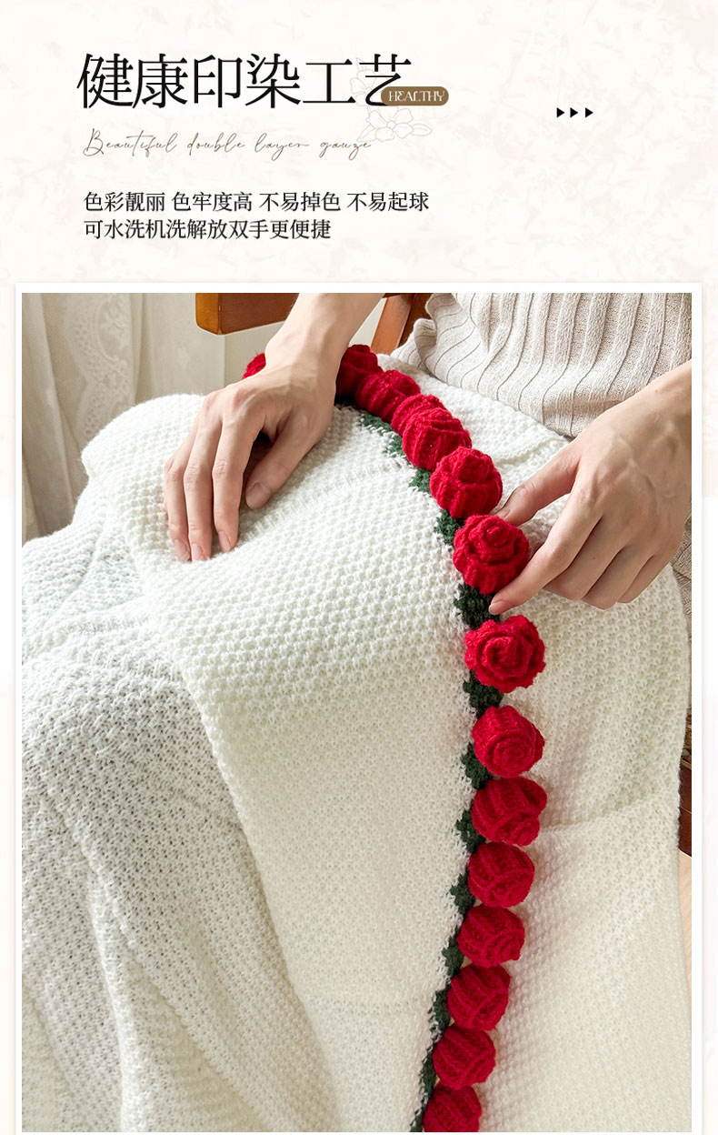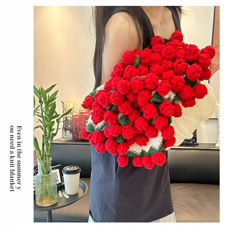 【品牌直发】加倍生活 玫瑰花束毯 4色可选 手工编织送礼毛毯 鹿毛绒针织毛毯 竹绒毯 玫瑰花保暖针织毯子情人节三八节女神节礼物 送爱人送自己