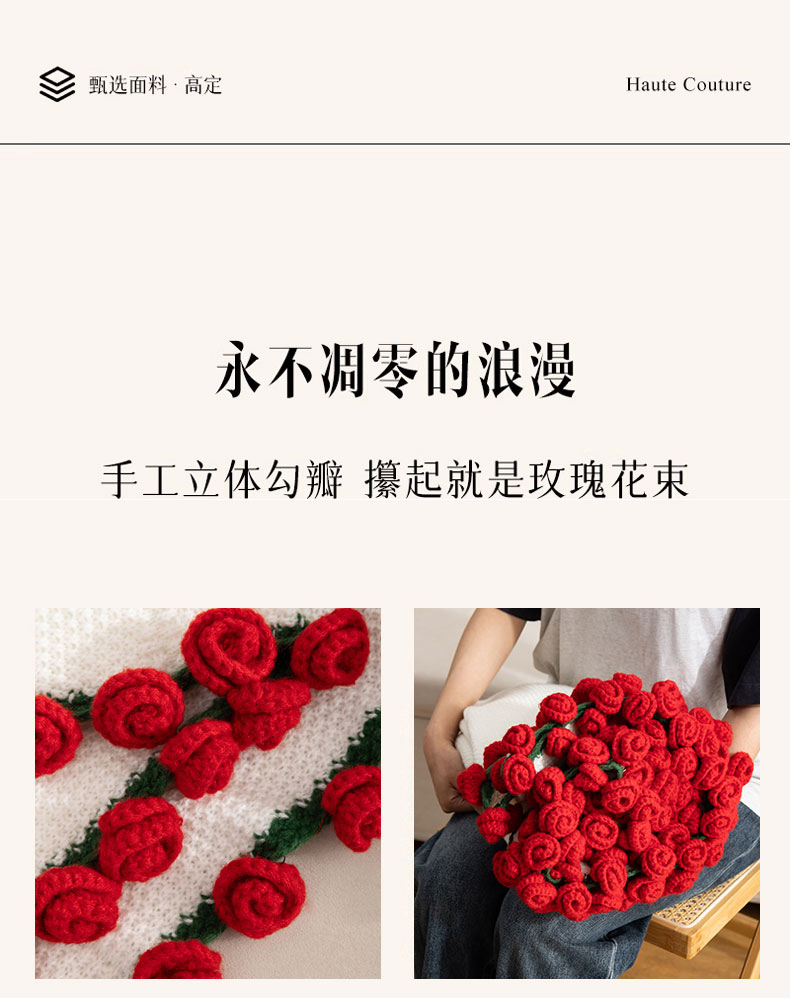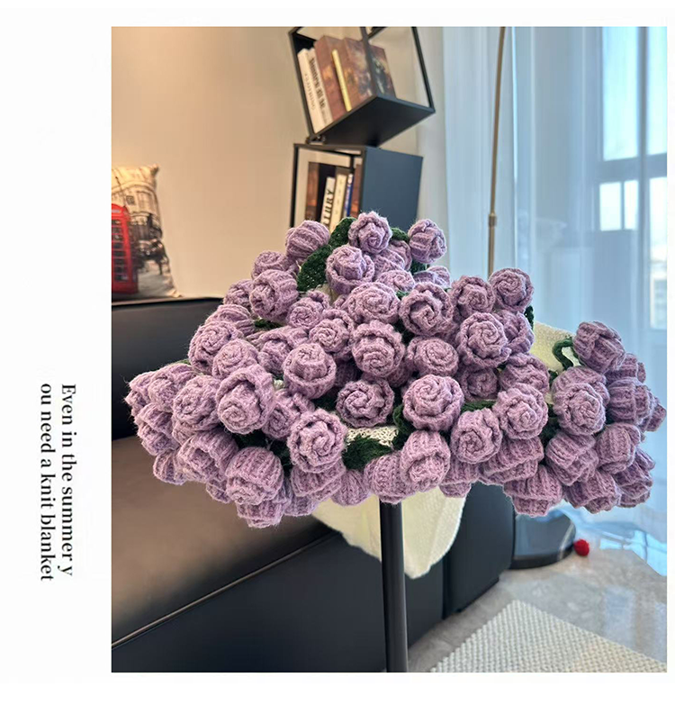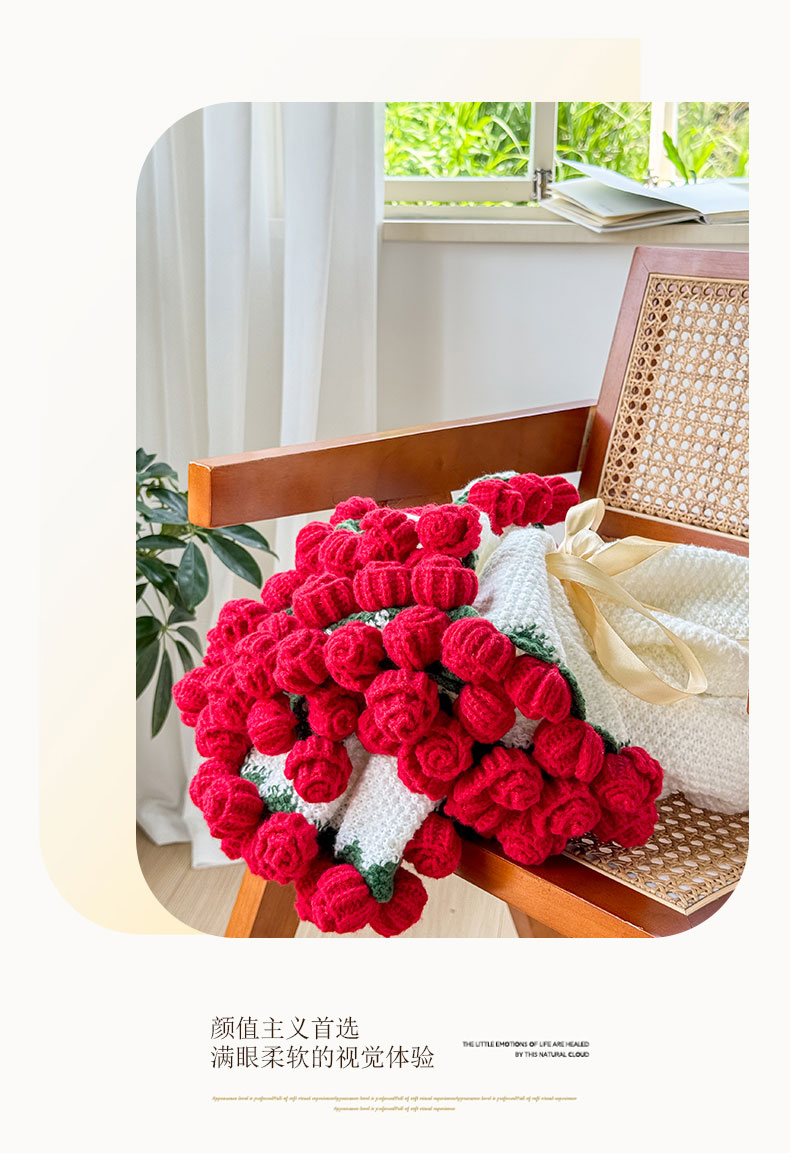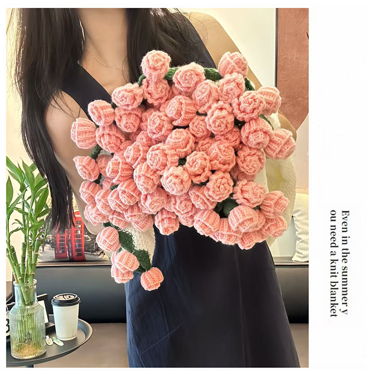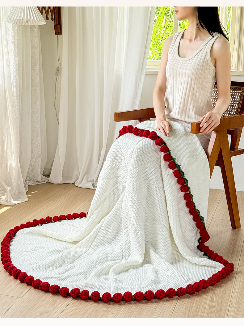 【品牌直发】加倍生活 玫瑰花束毯 4色可选 手工编织送礼毛毯 鹿毛绒针织毛毯 竹绒毯 玫瑰花保暖针织毯子情人节三八节女神节礼物 送爱人送自己