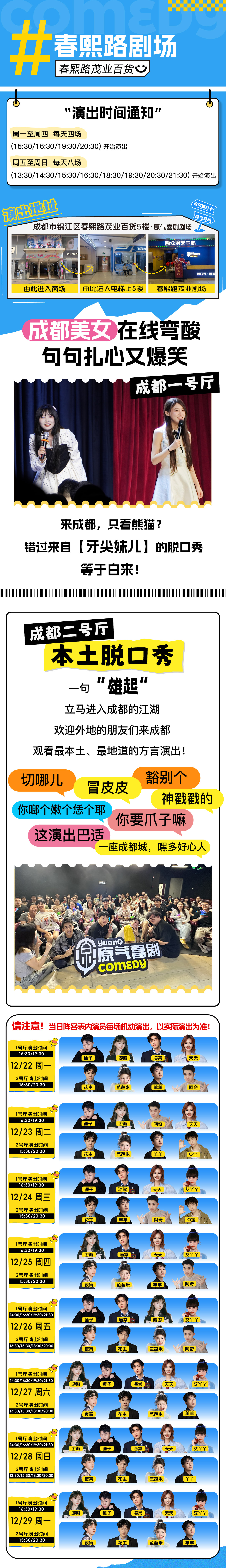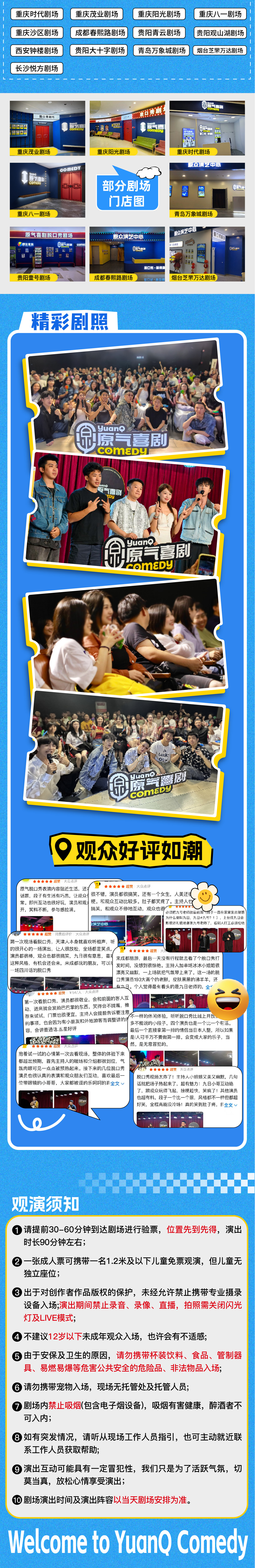 - 提供脱口秀、新喜剧、即兴喜剧、相声、沉浸式戏剧、儿童剧演出和新趣活动体验。