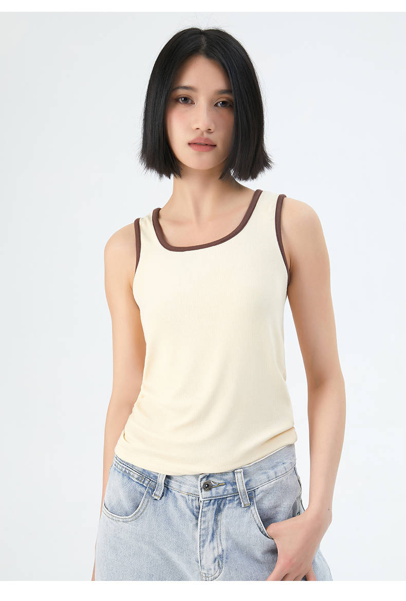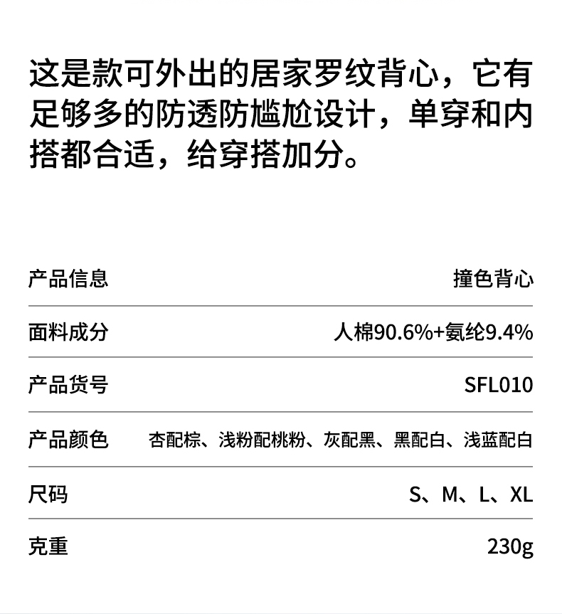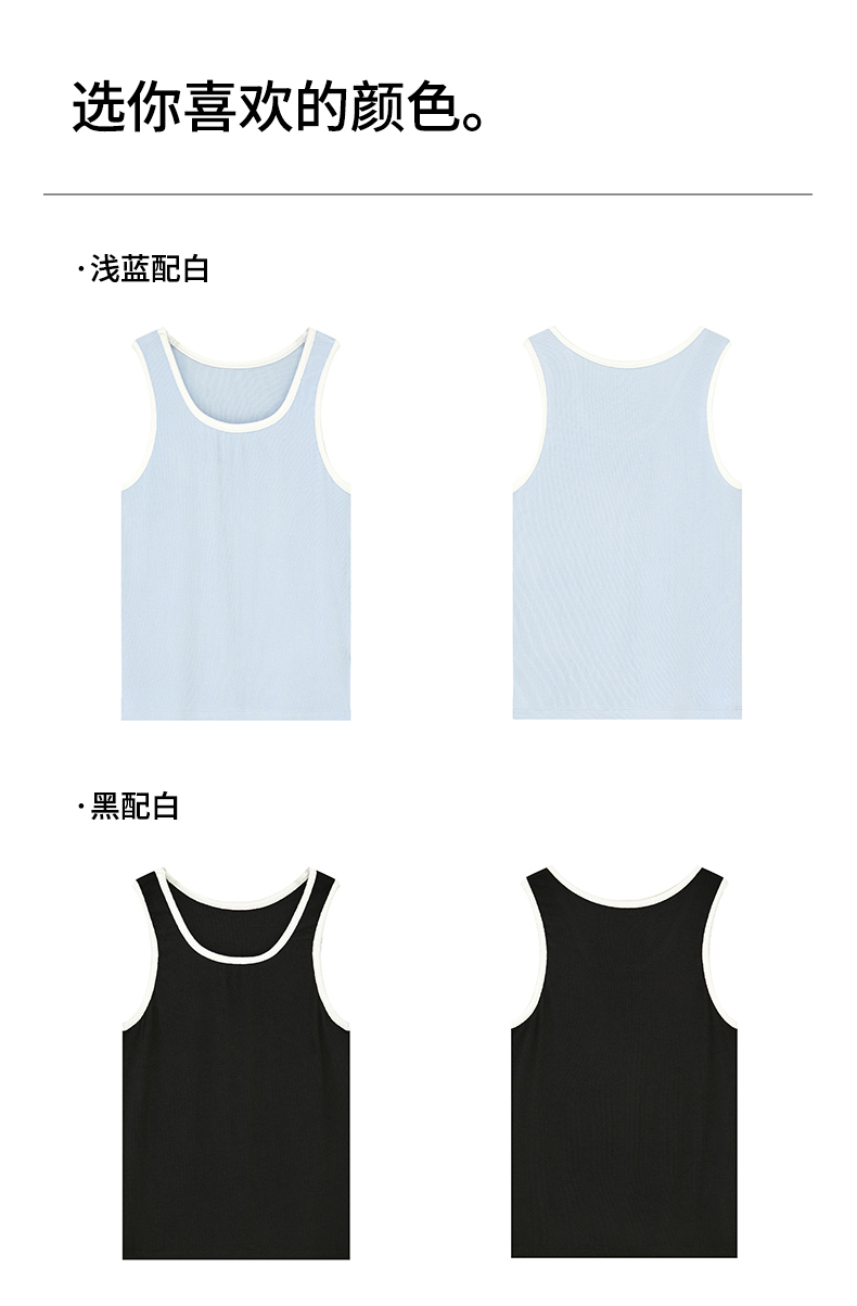 上新啦【喵小仟 女士撞色背心】外出可穿 手体感都很软 居家罗纹背心 防透防尴尬设计 单穿内搭都合适