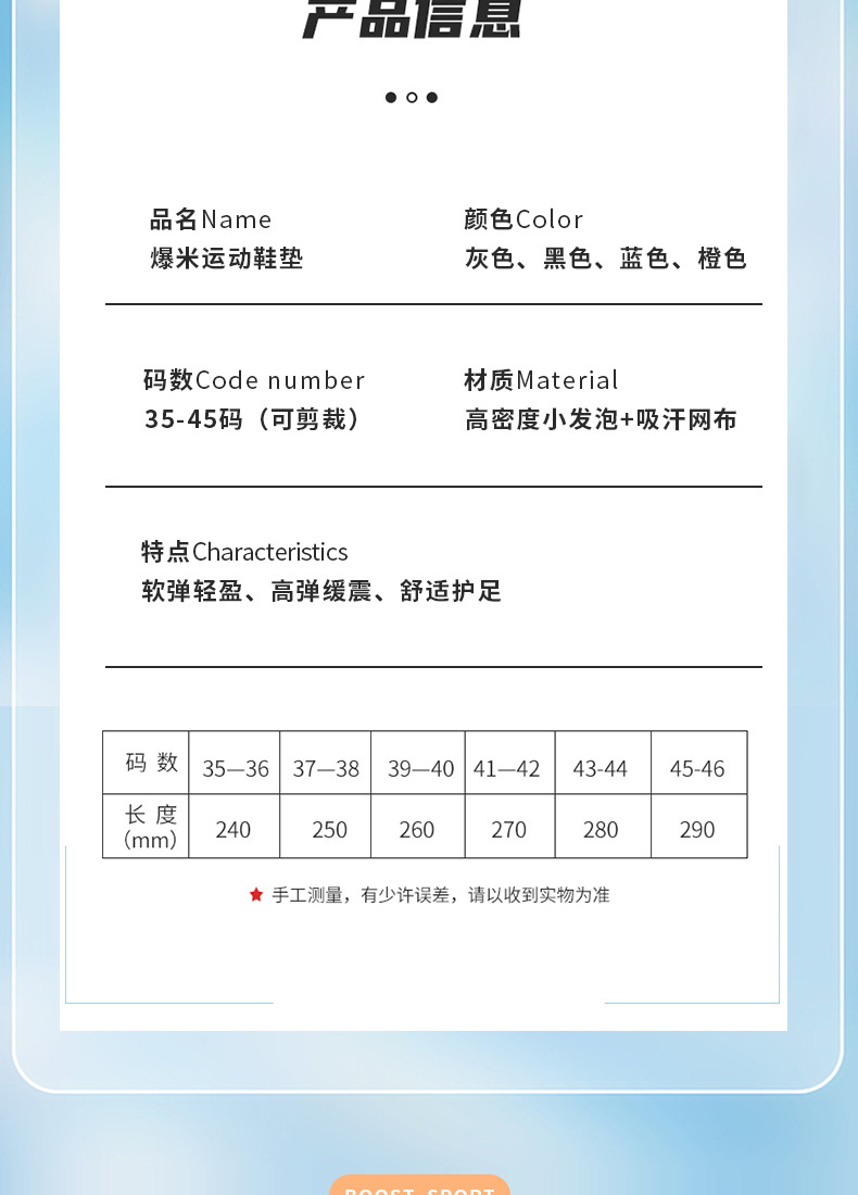 boost踩屎感男女超软PU运动跑步减震软蓝球久站不累军训鞋垫
