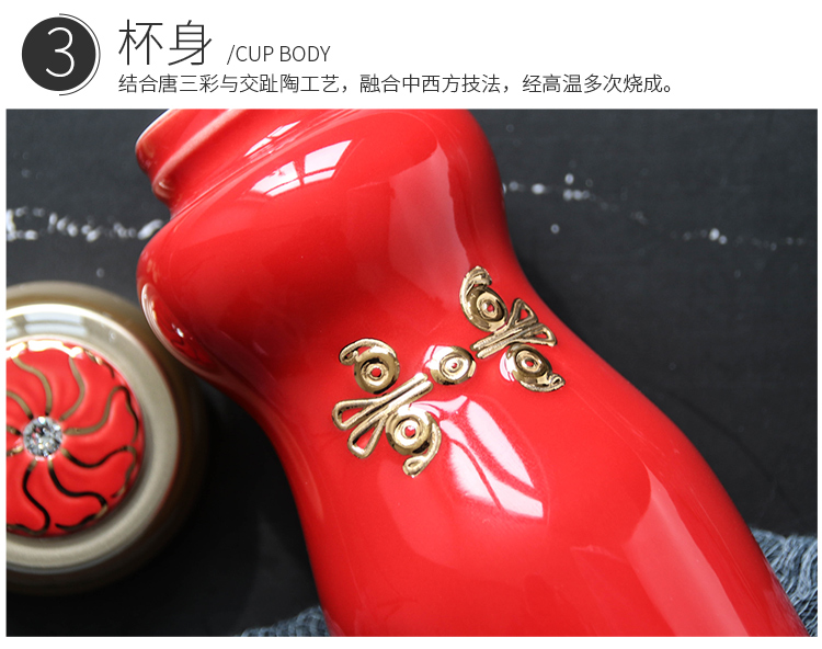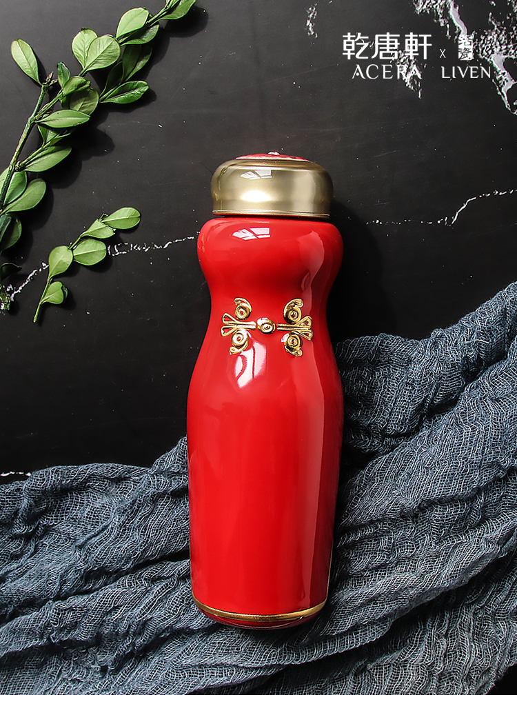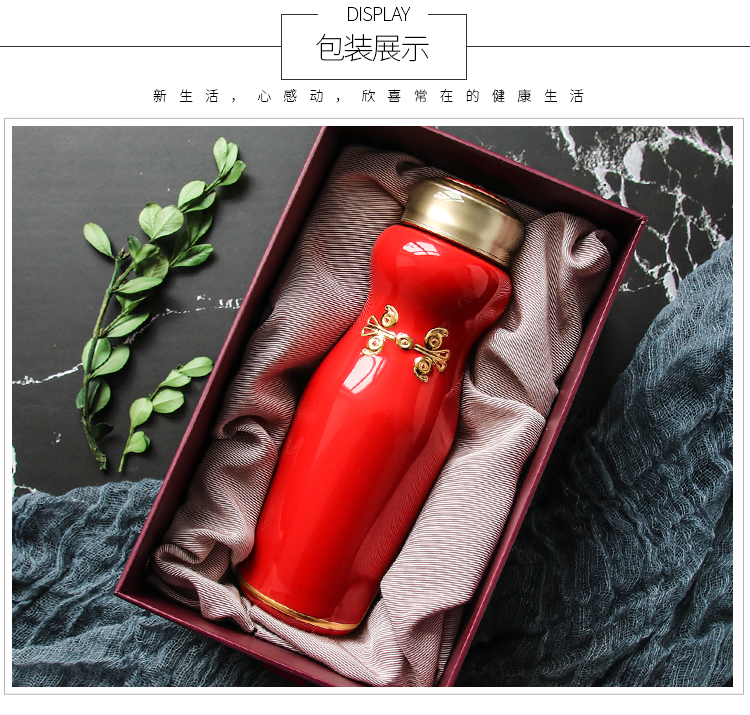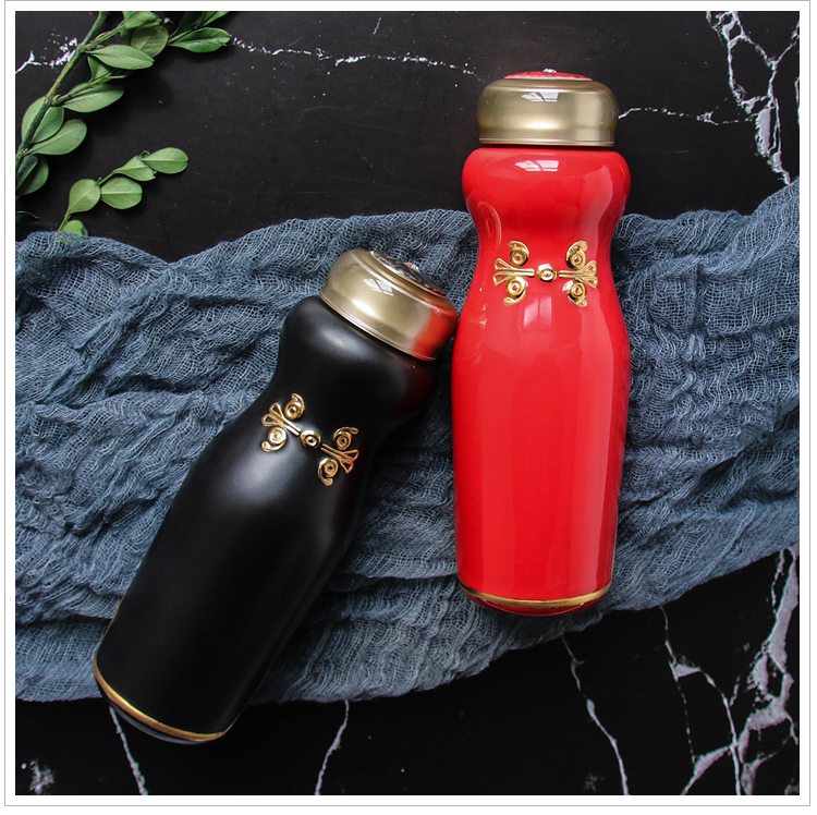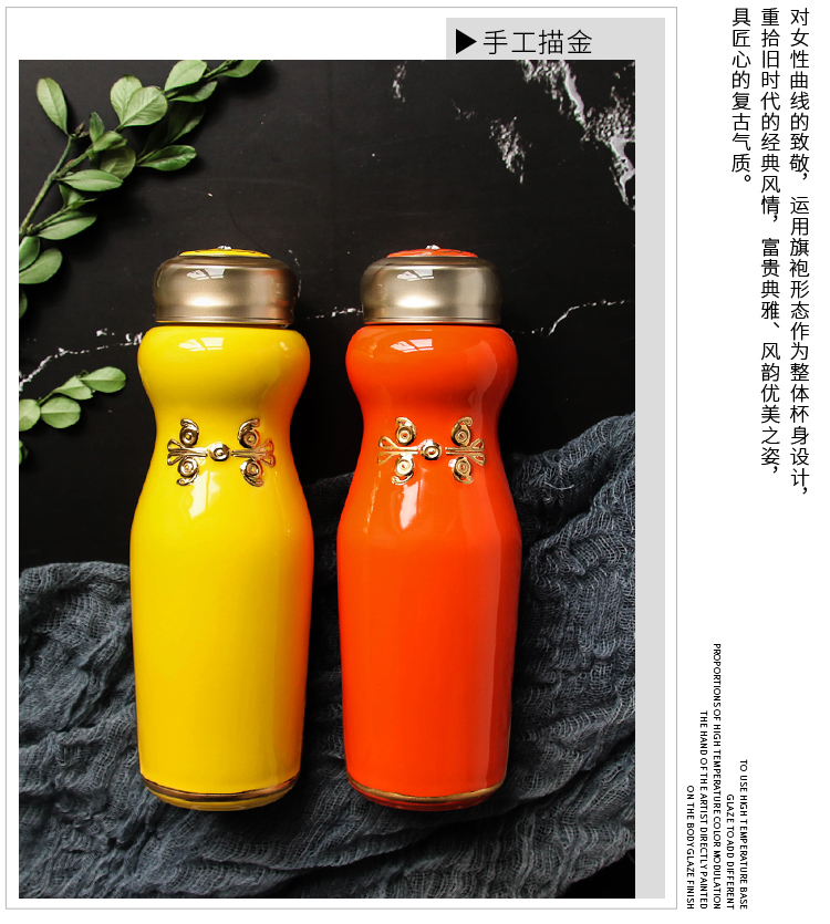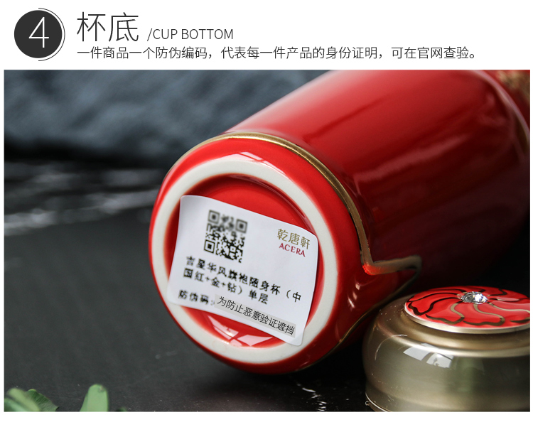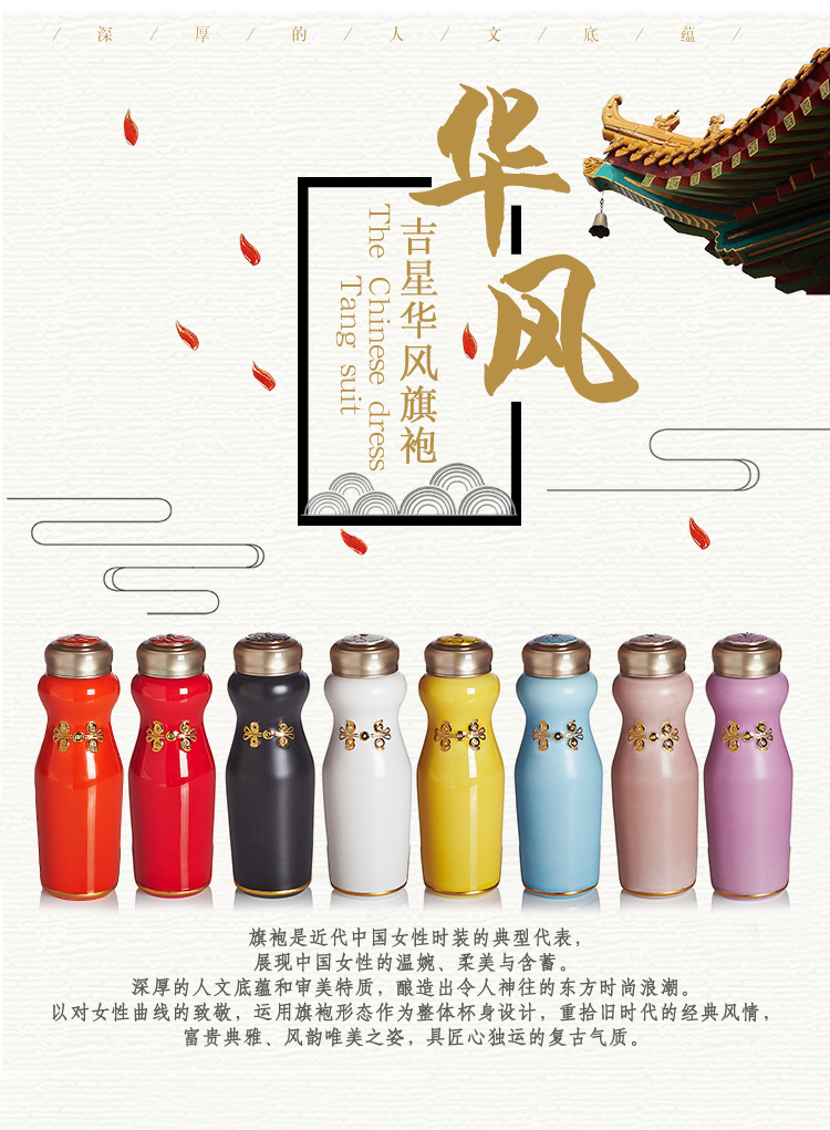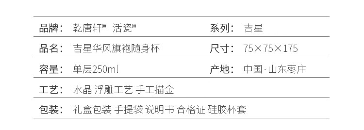 【非同款】乾唐轩活瓷杯吉星华风旗袍随身杯单层创意带盖便携精致迷你陶瓷水杯子送长辈朋友礼品杯女 无光水蓝 鎏金 吉星元素