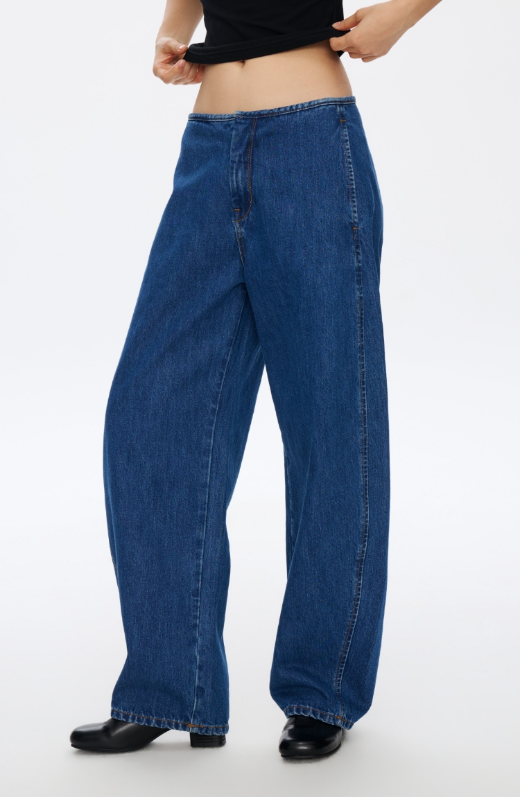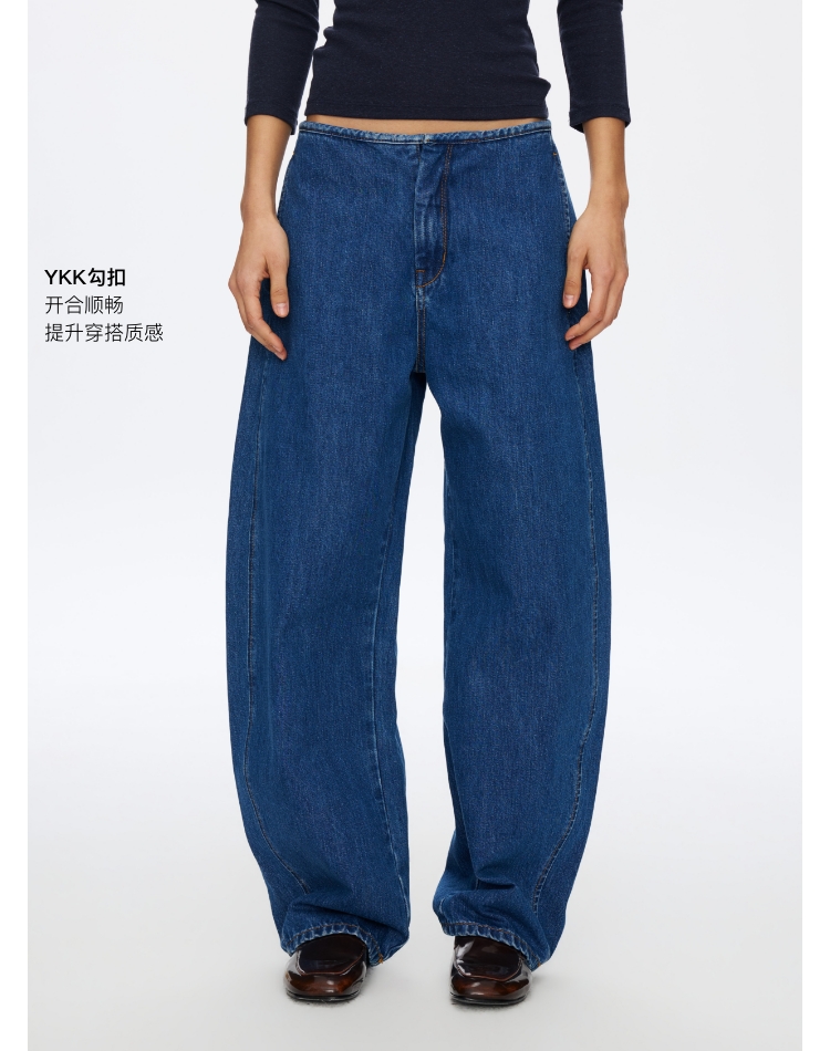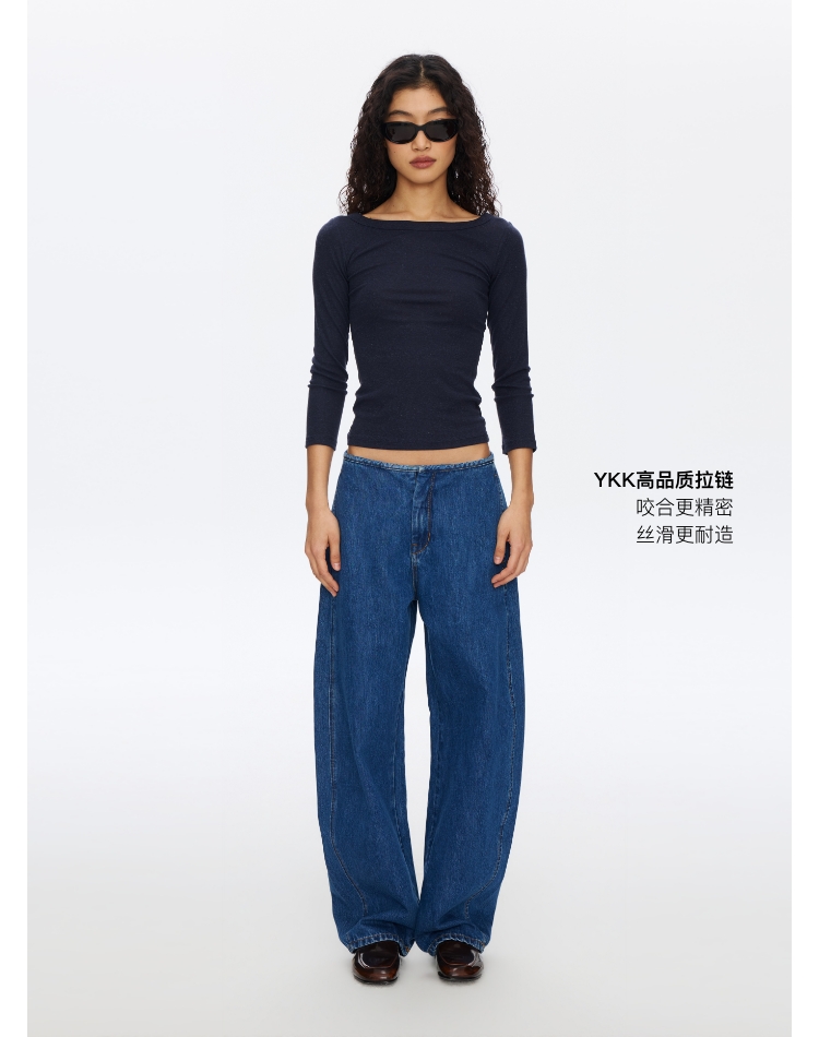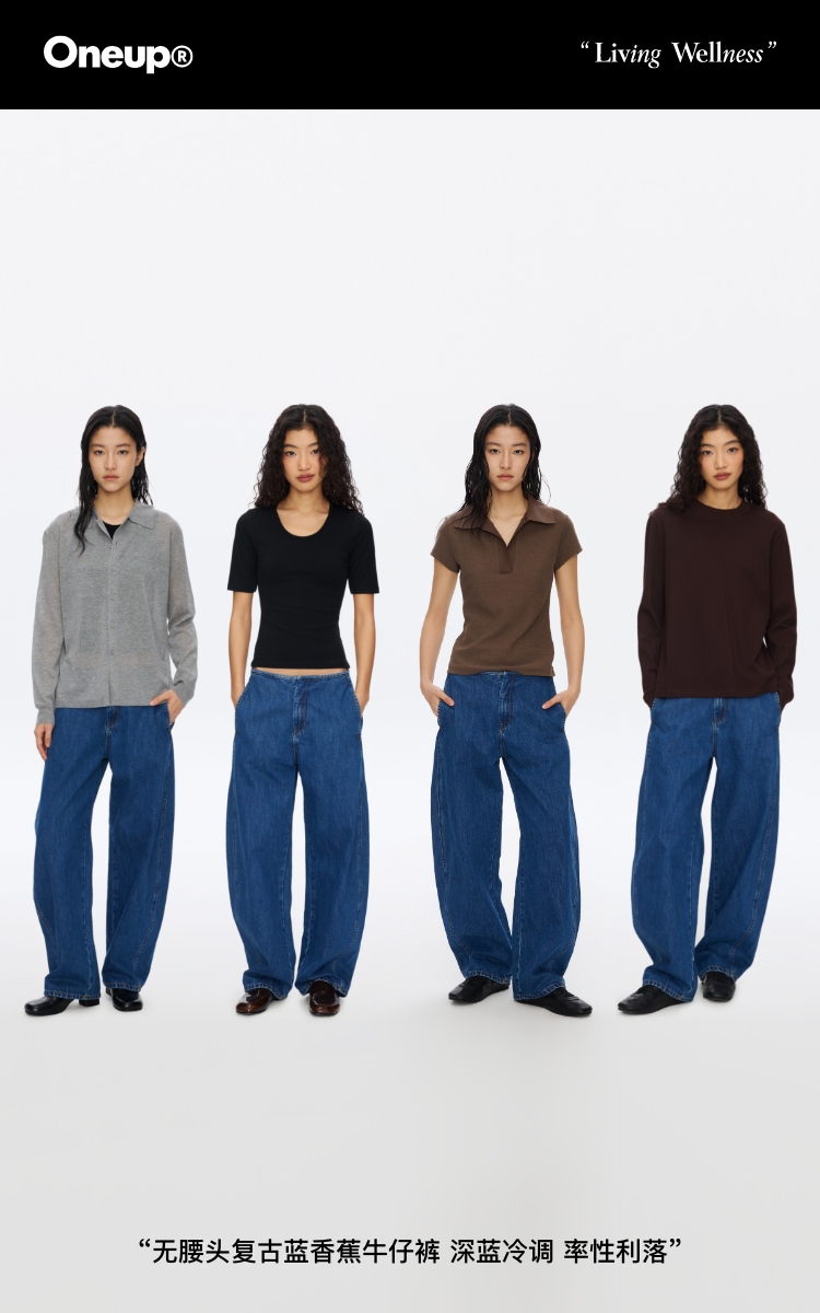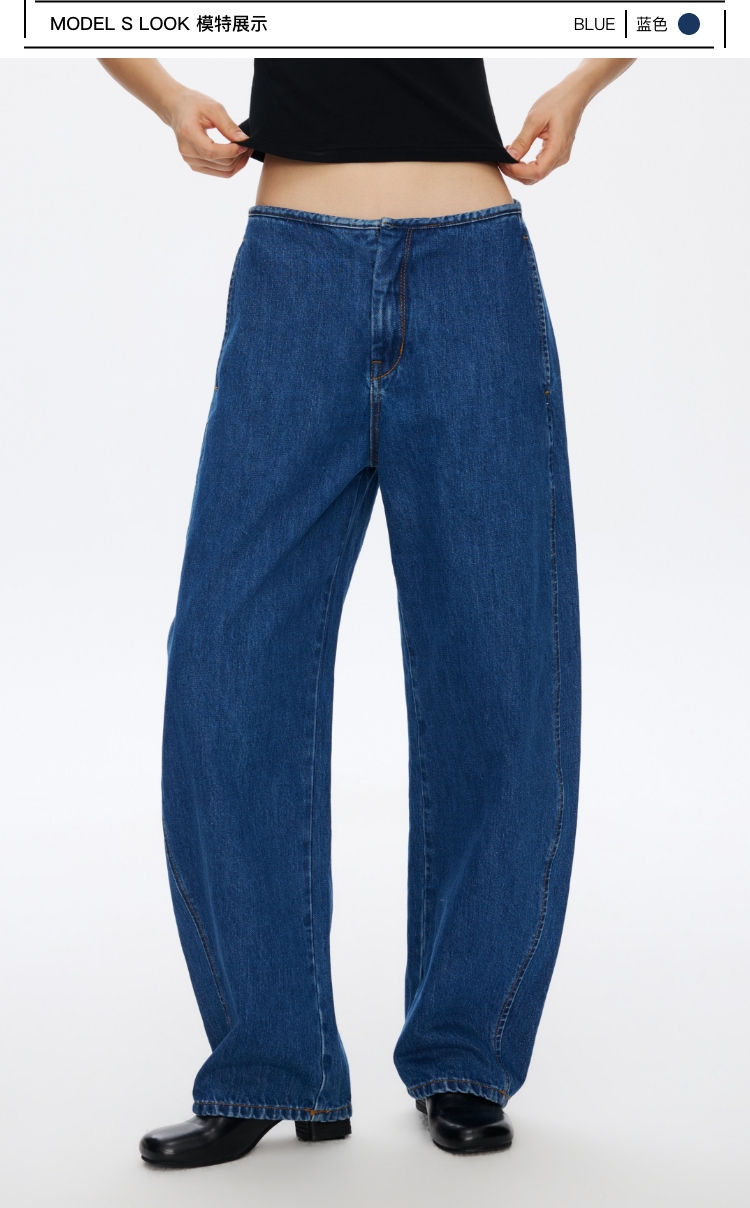 无腰头复古蓝香蕉牛仔裤