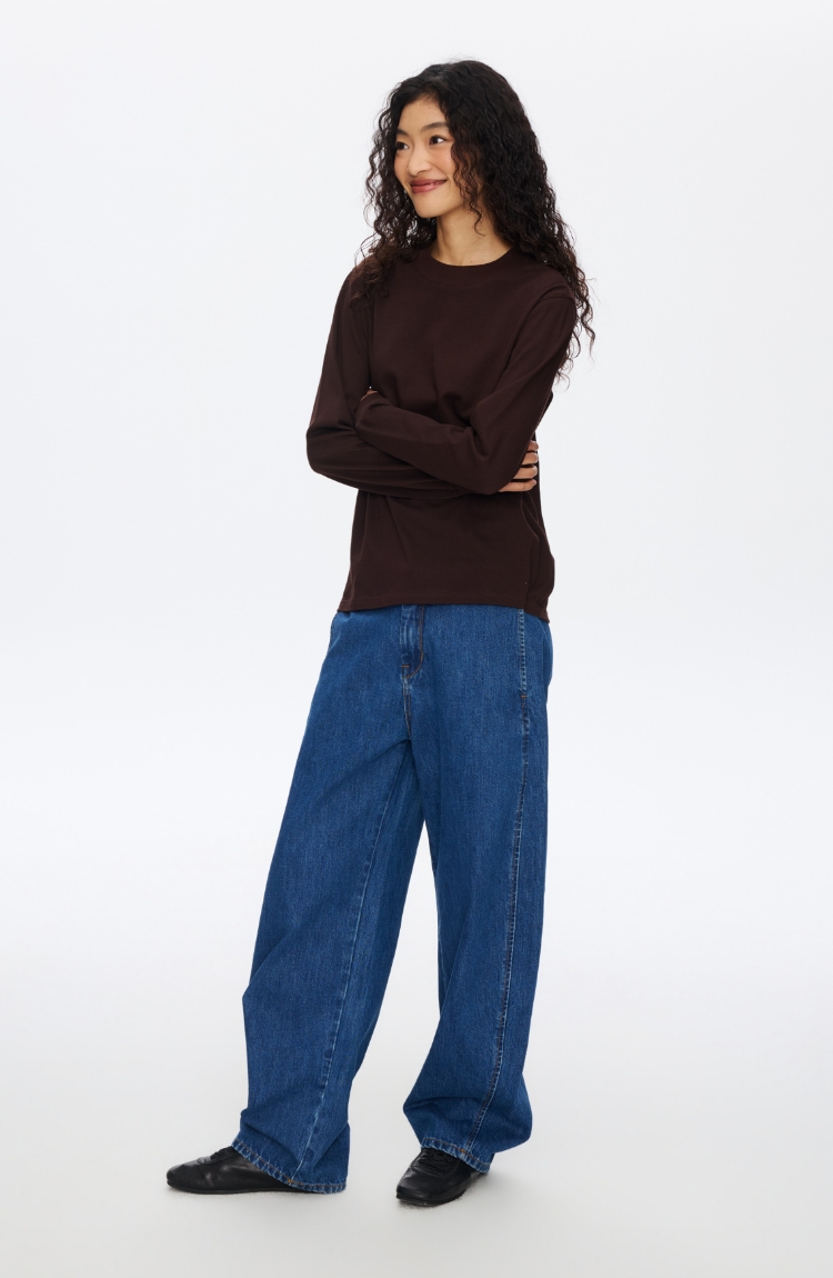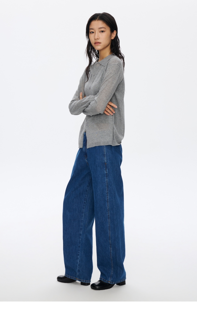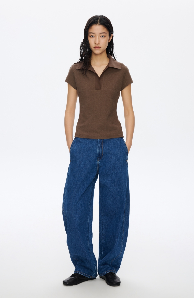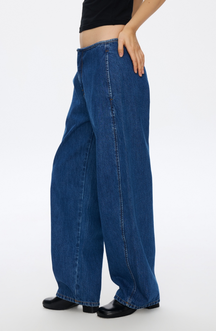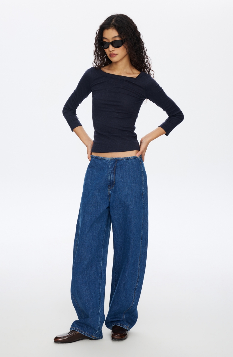 无腰头复古蓝香蕉牛仔裤
