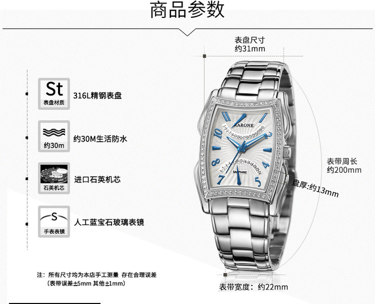 RARONE雷诺表夜色系列石英腕表87101