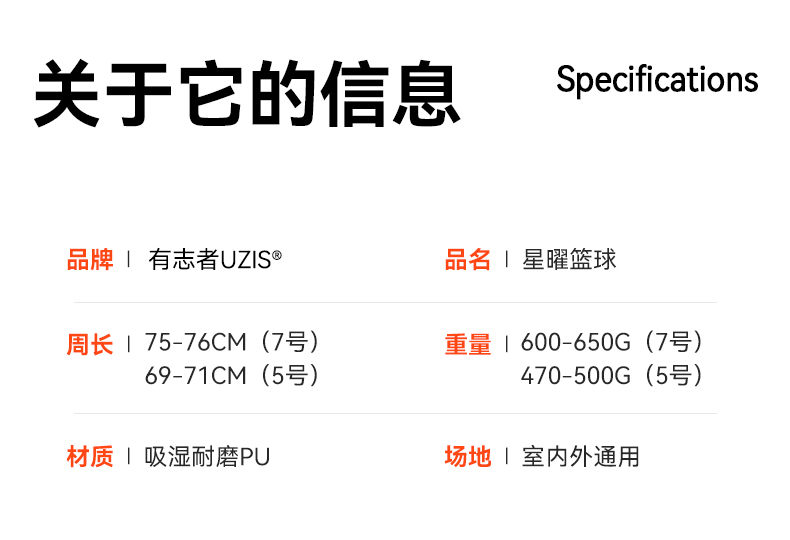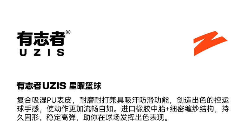 有志者UZIS成人7号篮球正品青少年5号儿童专用室内外专业训练星曜