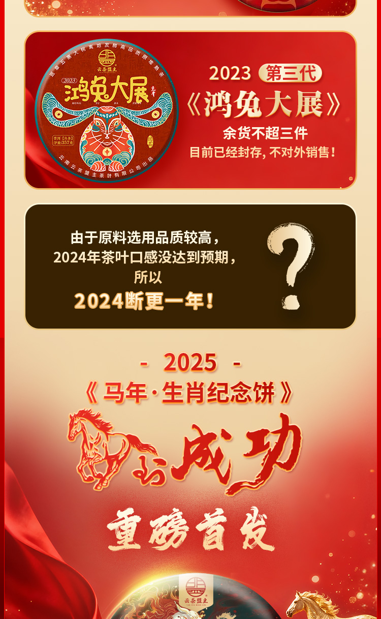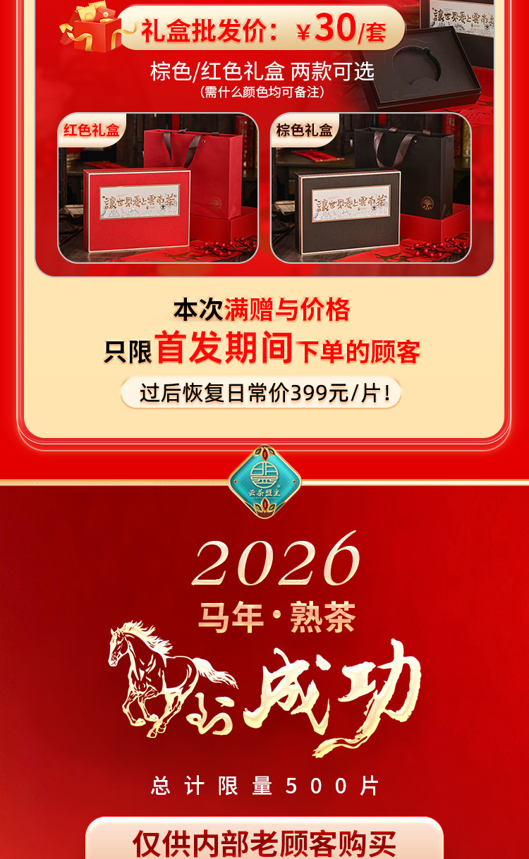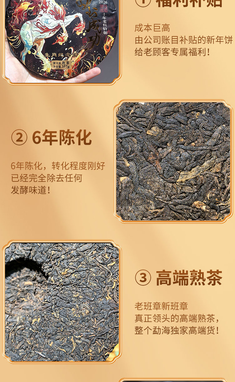马年生肖饼【马到成功】开年首款熟茶,班章熟茶的顶级享受!内部限量补贴价发售!线上仅抢300饼!357克/片!