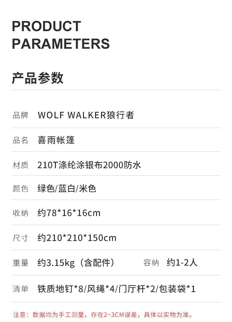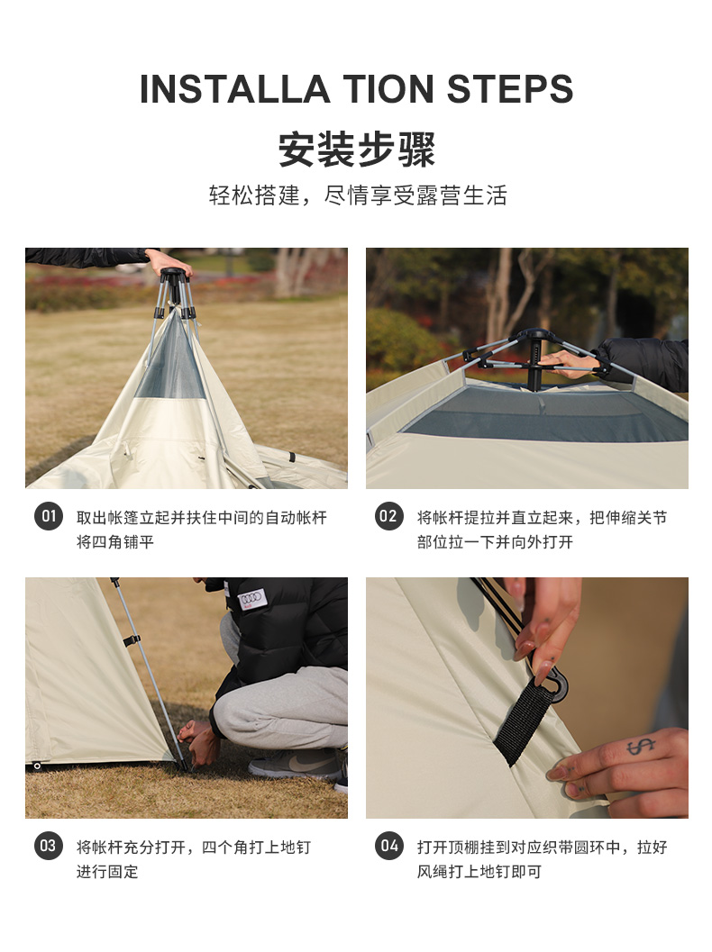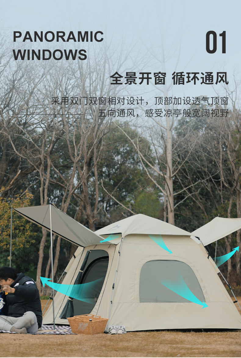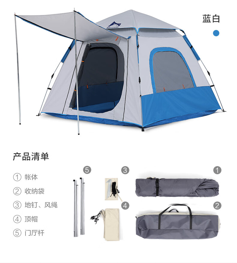 狼行者 户外全自动加厚速开防风雨公园帐篷野外露营便携式可折叠门厅帐