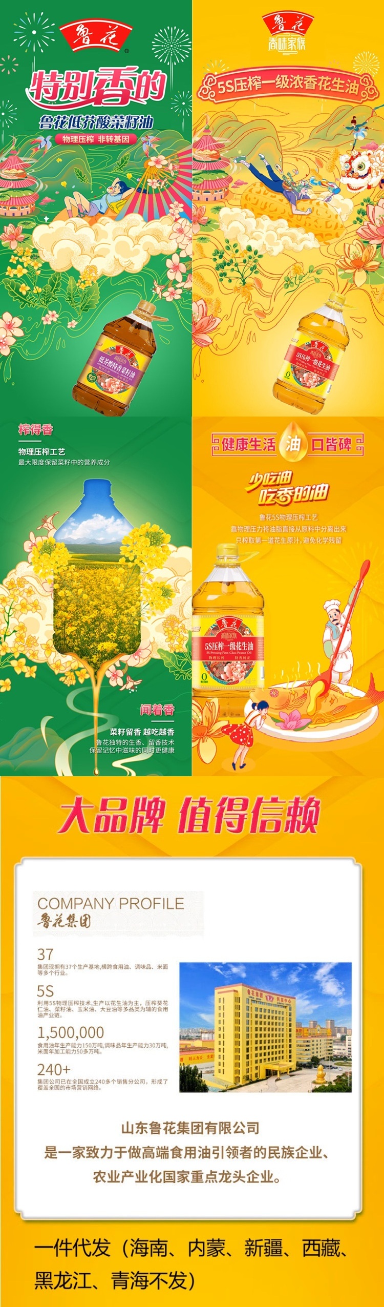 鲁花 香味家族 5S压榨一级花生油 5L*1 / 低芥酸特香菜籽油5L*1