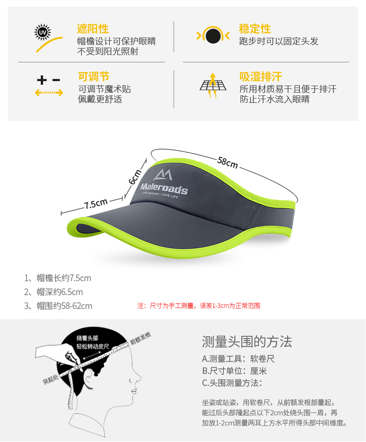 【清仓半价】迈路士防晒夏日跑步空顶帽太阳帽运动遮阳帽子男女马拉松跑步帽
