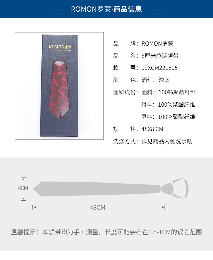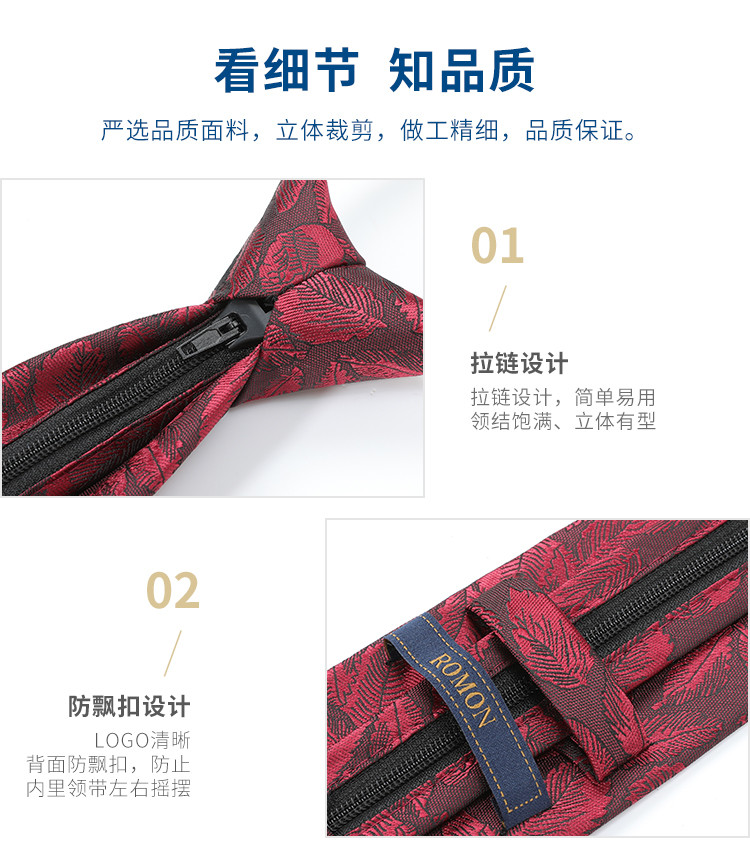 【礼盒款&精致花纹】罗蒙8厘米拉链领带时尚有型婚礼婚庆男士领带