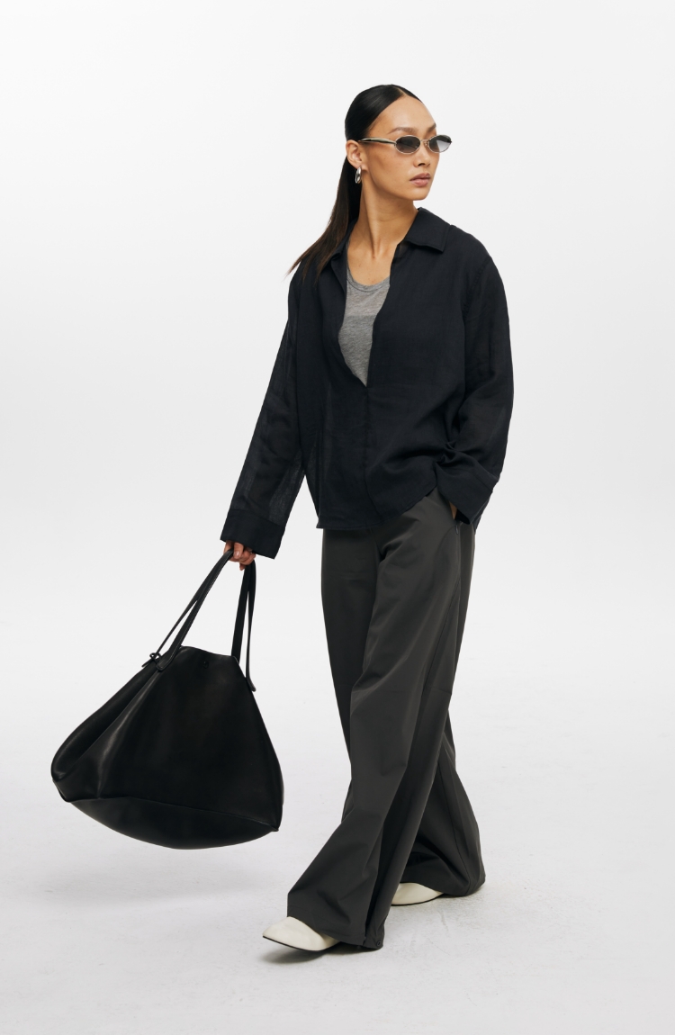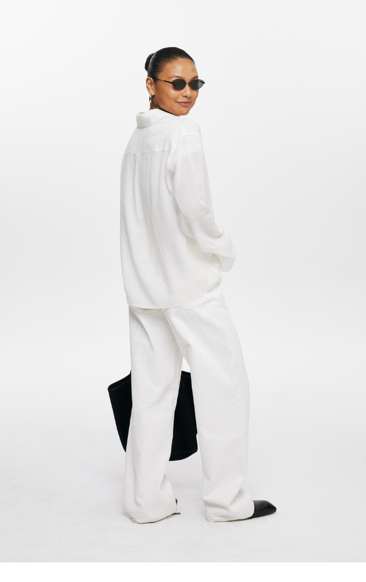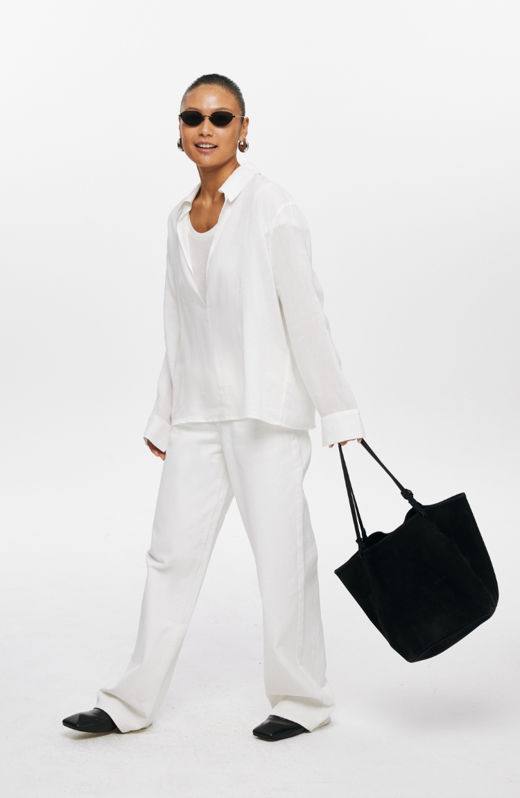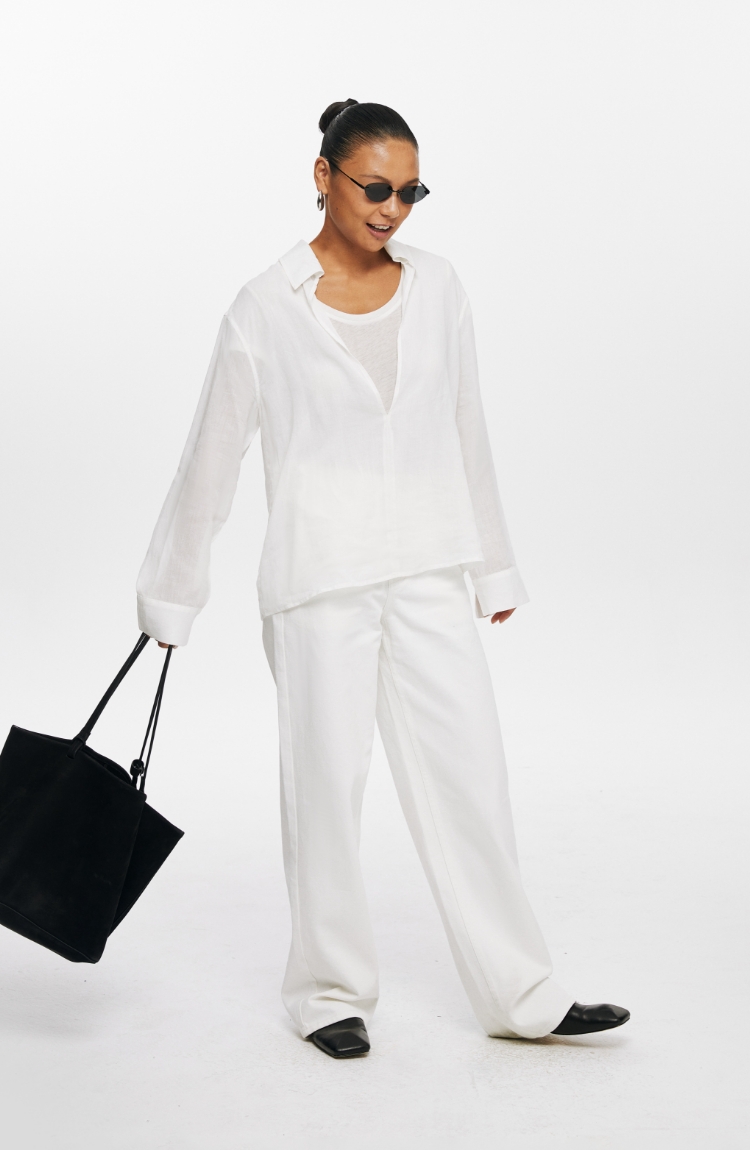 Oneup天丝亚麻系带直筒裤