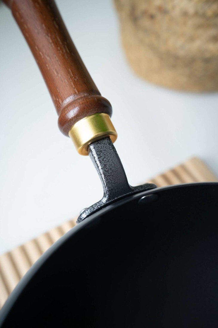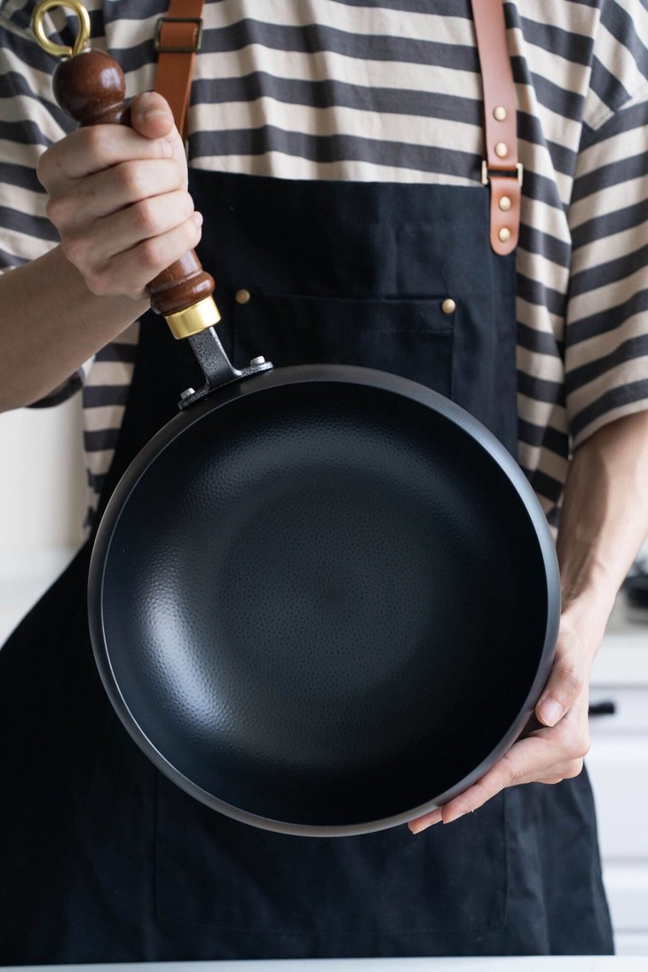 由专业工匠一锤一锤锻打出来,凹槽部分还能很好地储存炒菜的油,起到润滑作用