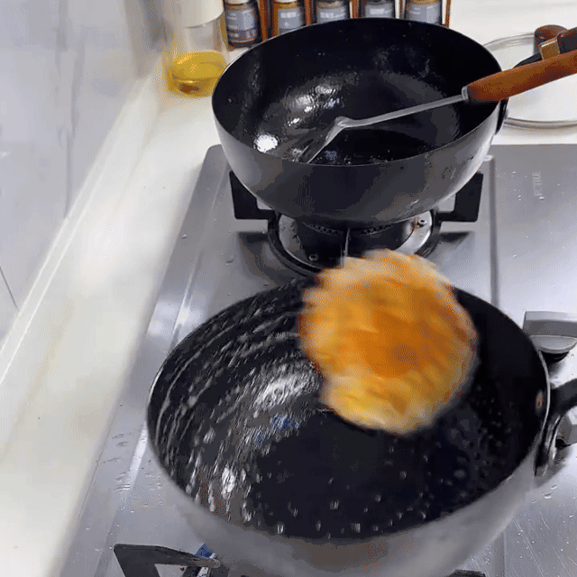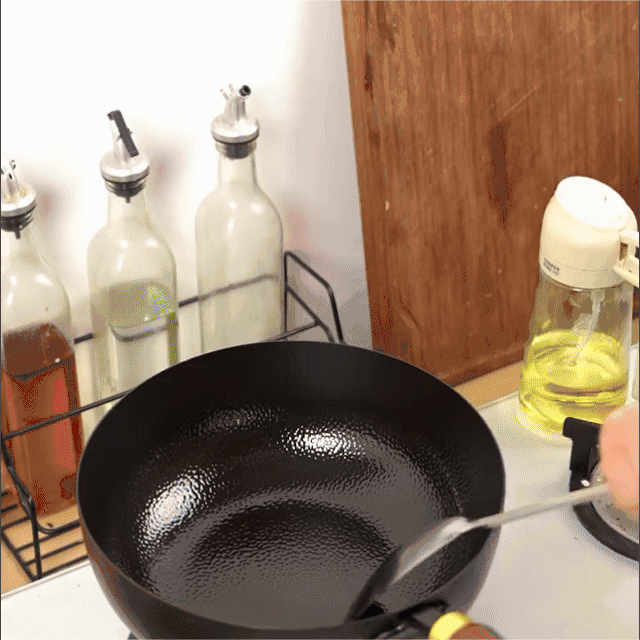 而且这款铁锅用很少的油就可以形成「油膜」,使锅具表面非常光滑。