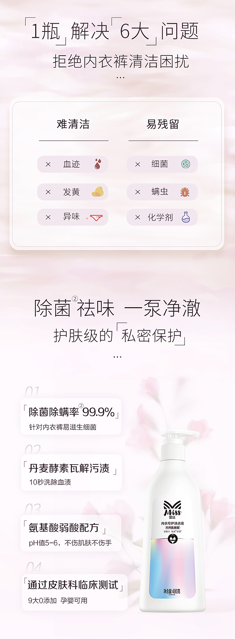 立白丨MISS蜜丝内衣专护洗衣液 480克*1瓶