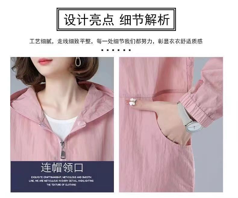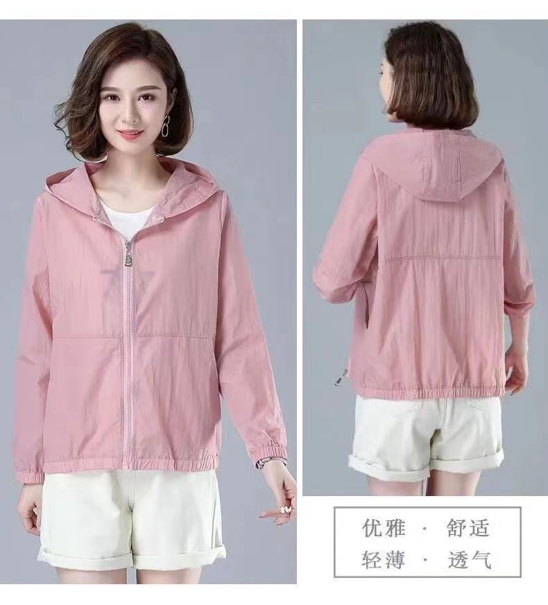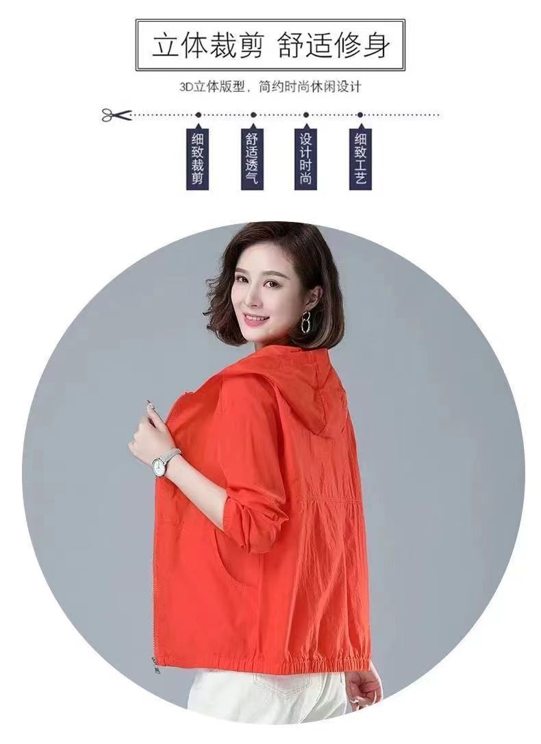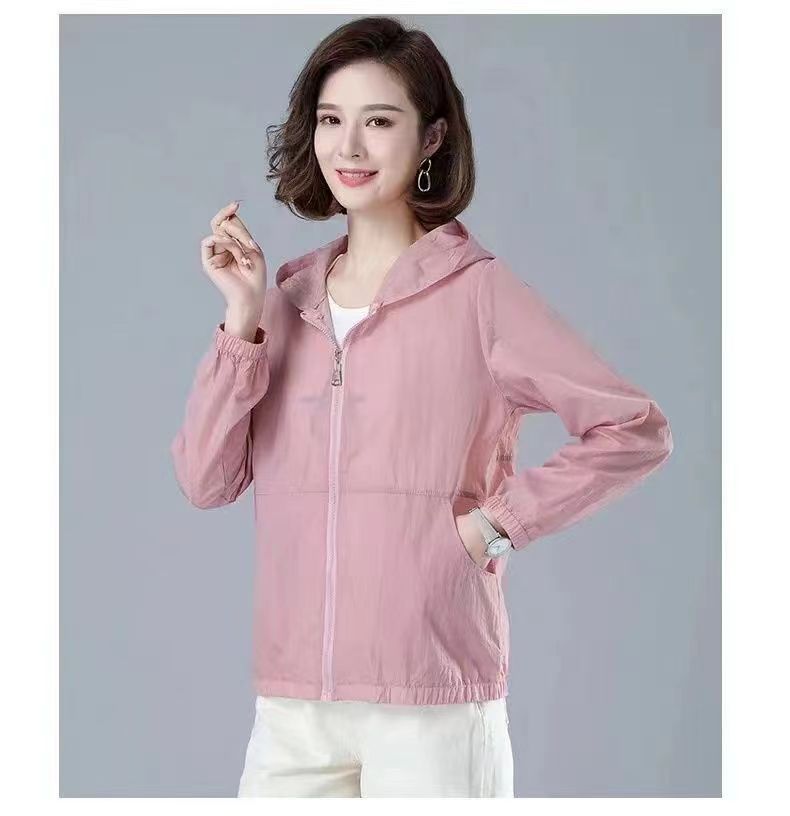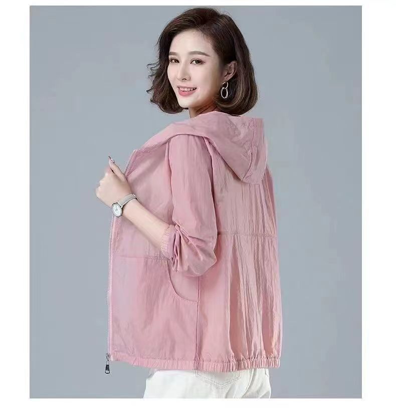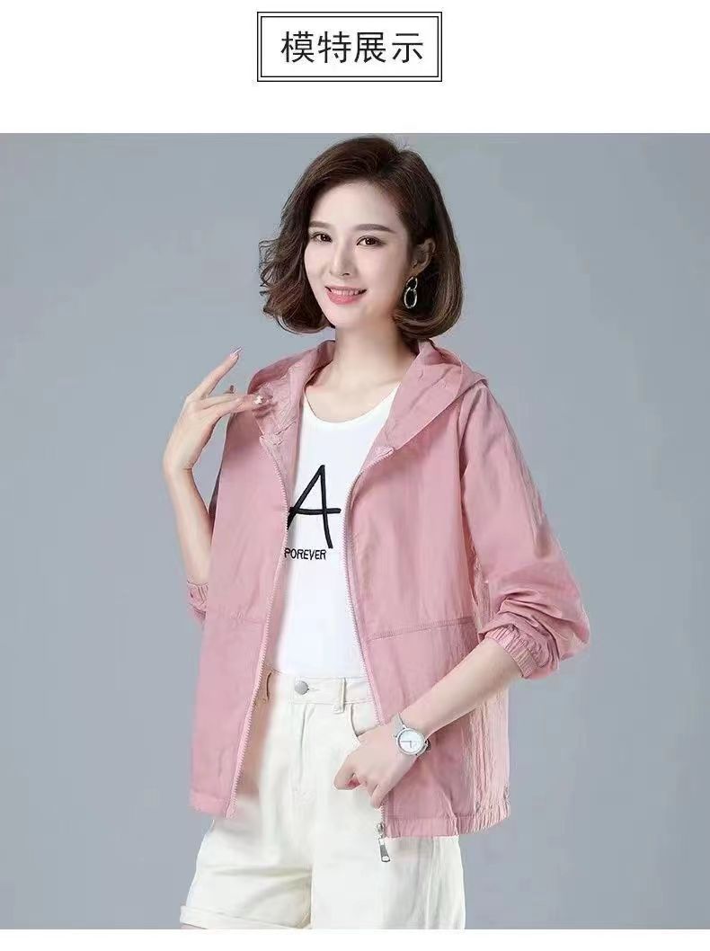 舒适好穿 简约透气防晒衣女中年妈妈夏季新款 长袖轻薄外套 宽松女装休闲连帽防晒服衫