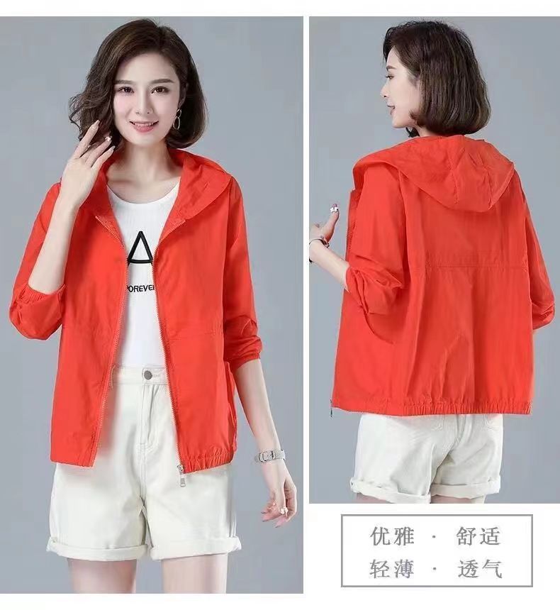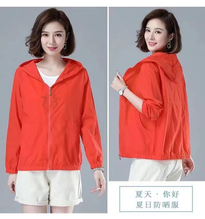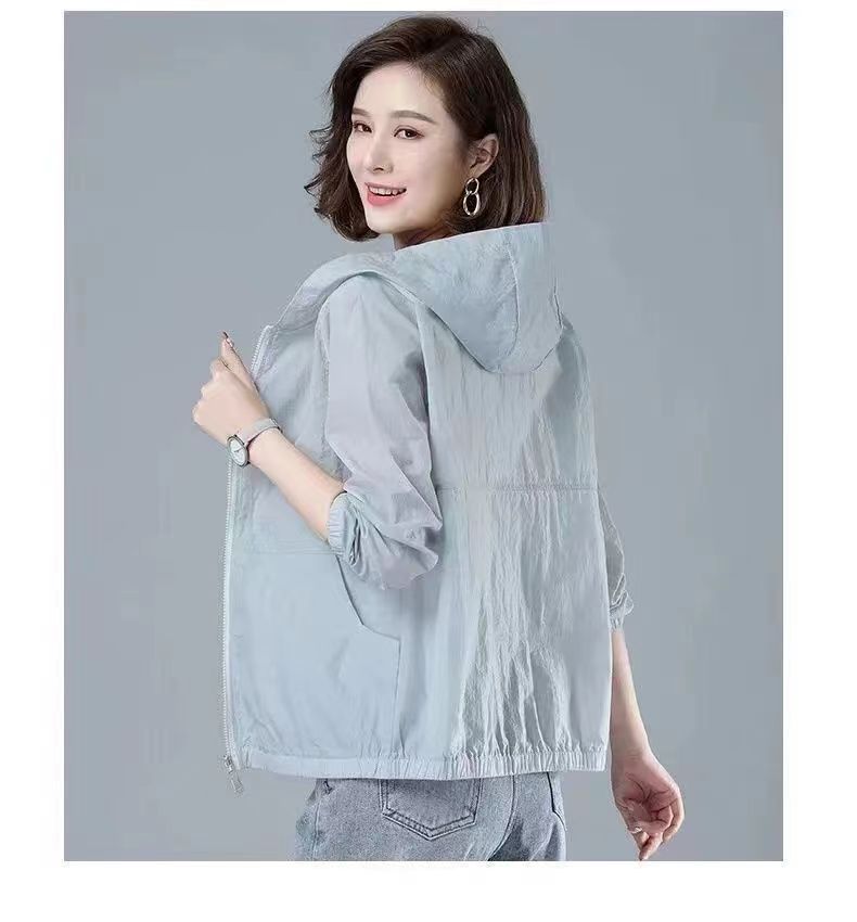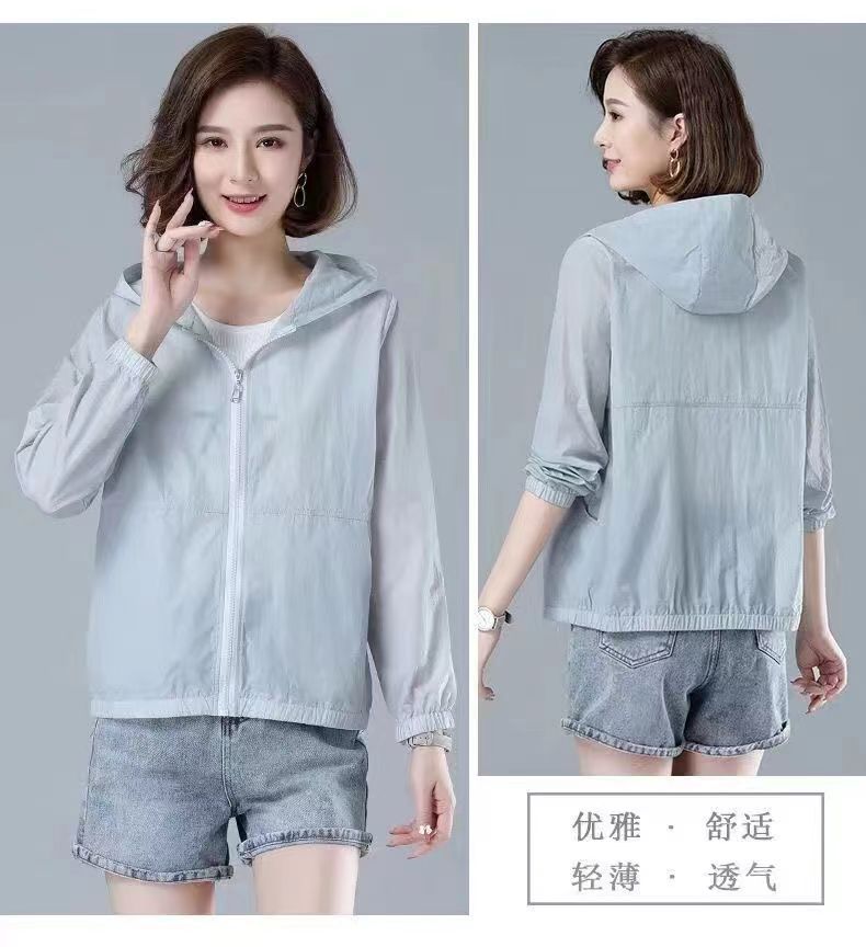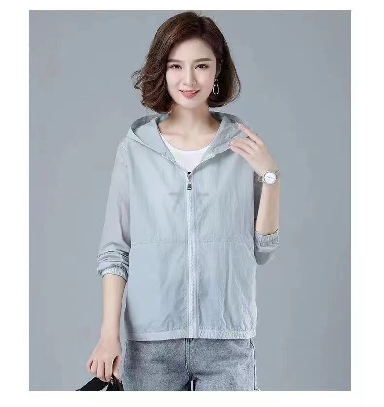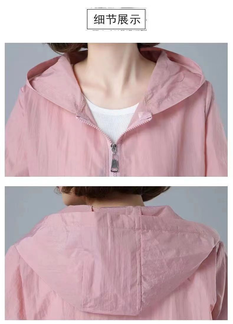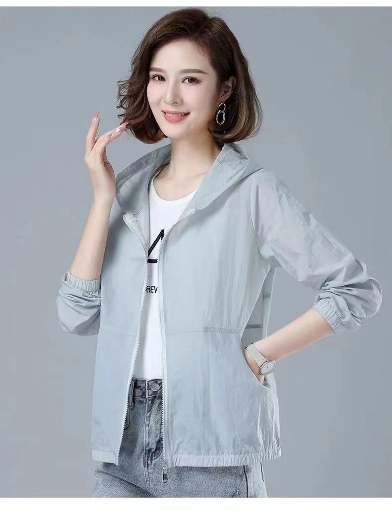 舒适好穿 简约透气防晒衣女中年妈妈夏季新款 长袖轻薄外套 宽松女装休闲连帽防晒服衫