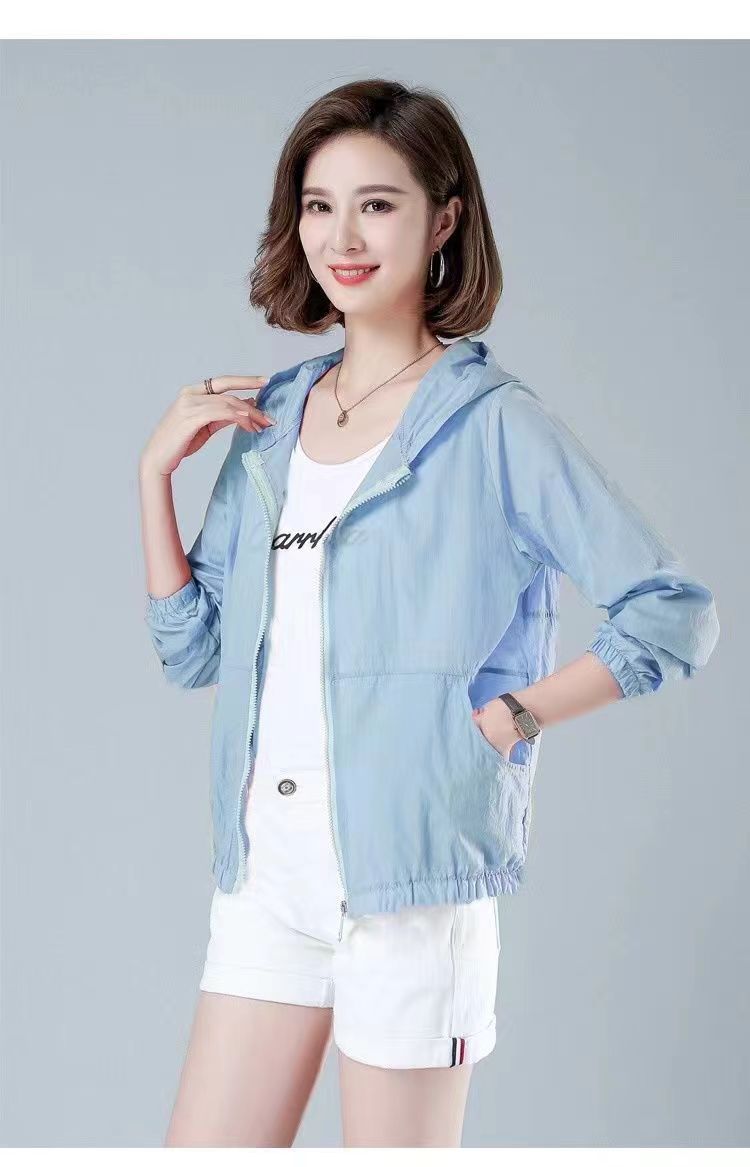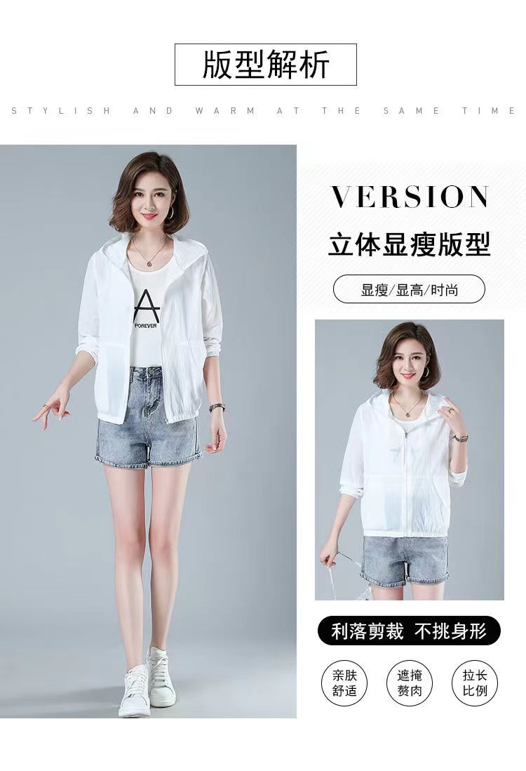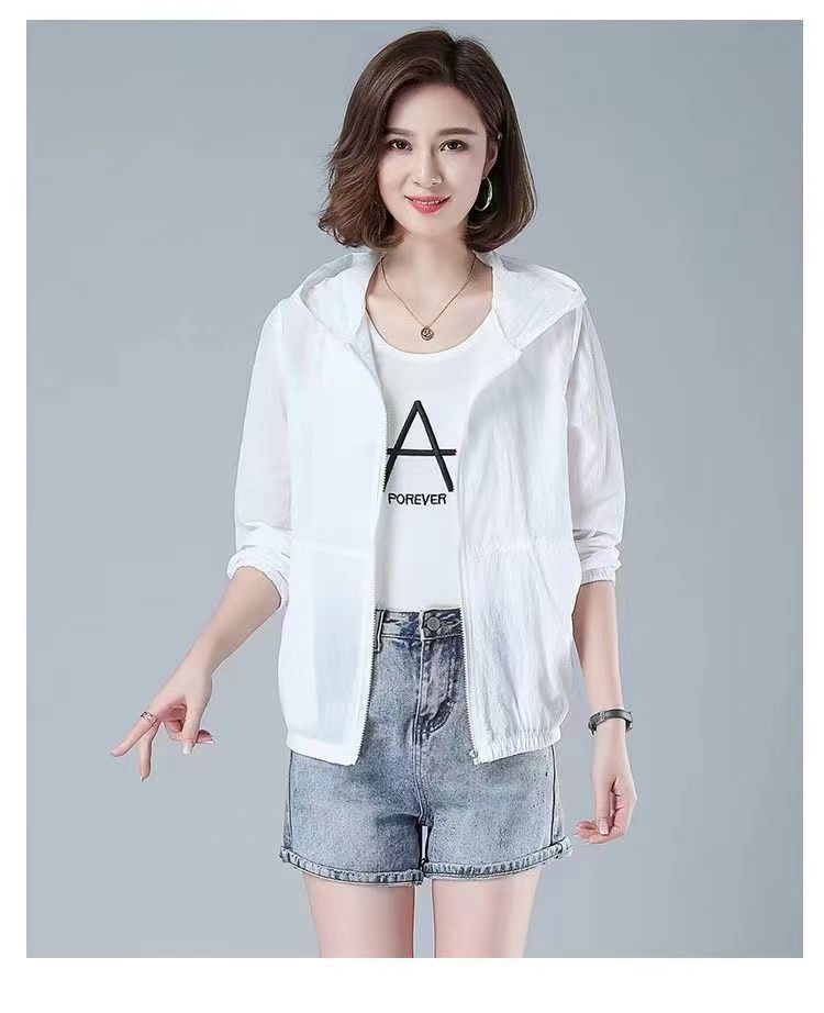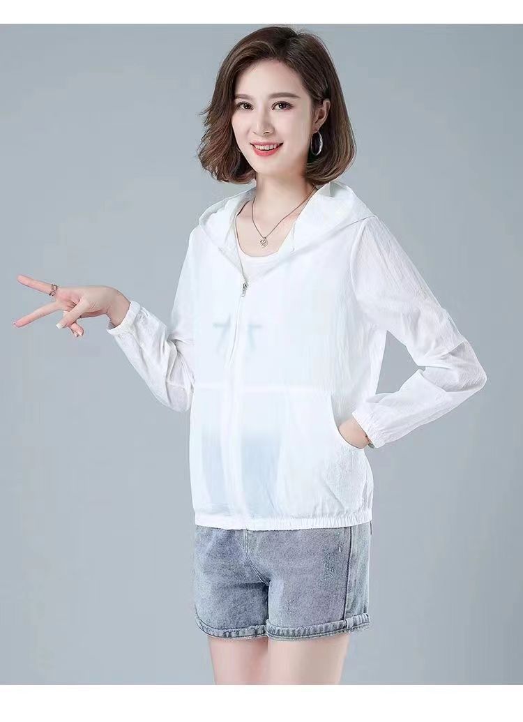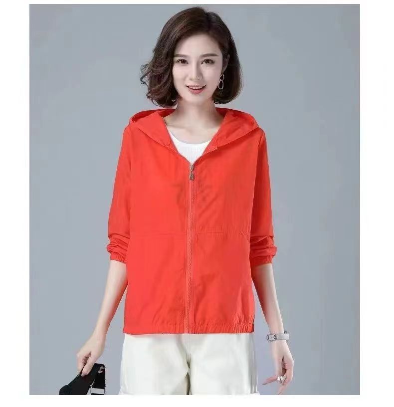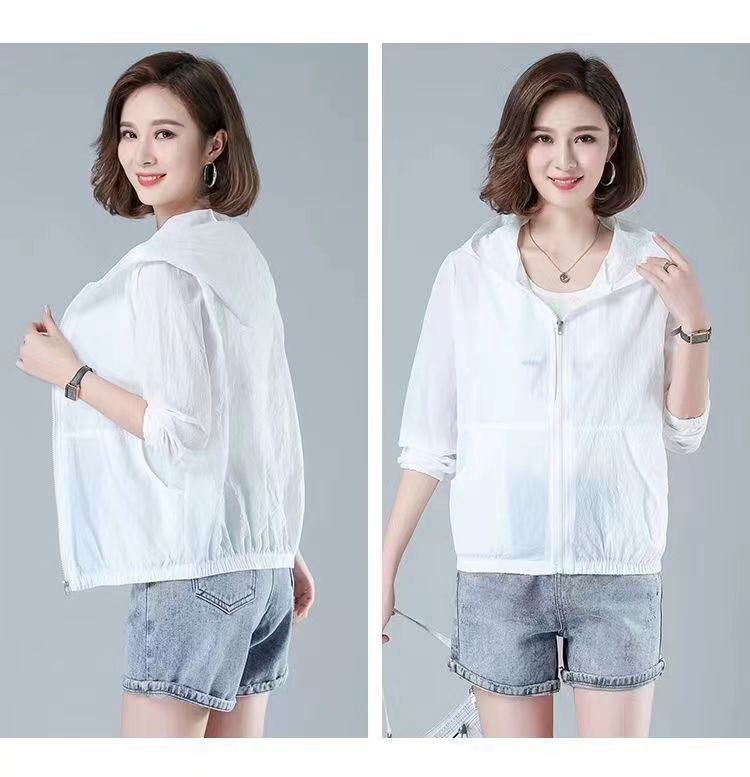 舒适好穿 简约透气防晒衣女中年妈妈夏季新款 长袖轻薄外套 宽松女装休闲连帽防晒服衫
