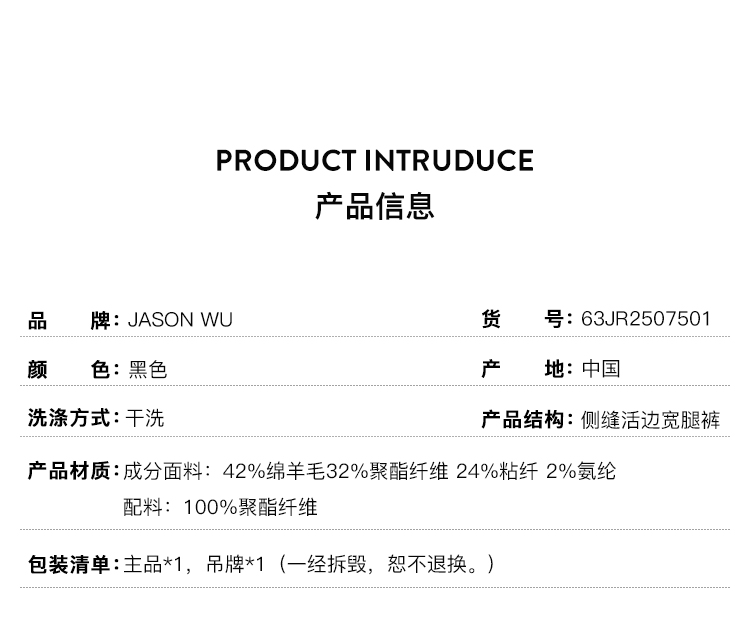 (秋季新品)【JASON WU】25年新款简约高级直筒精纺羊毛解构阔腿裤