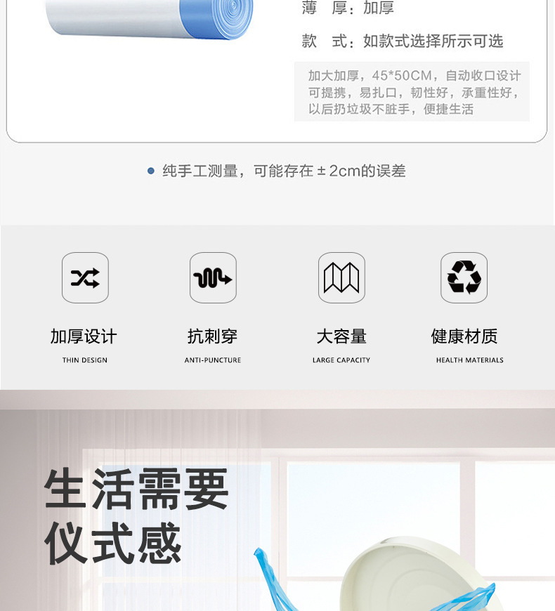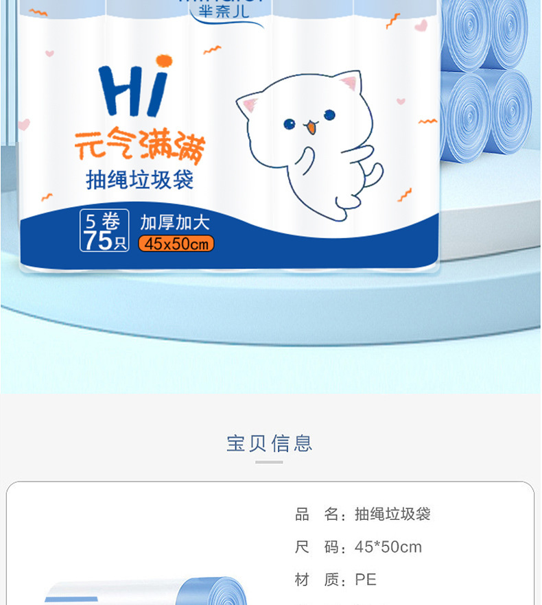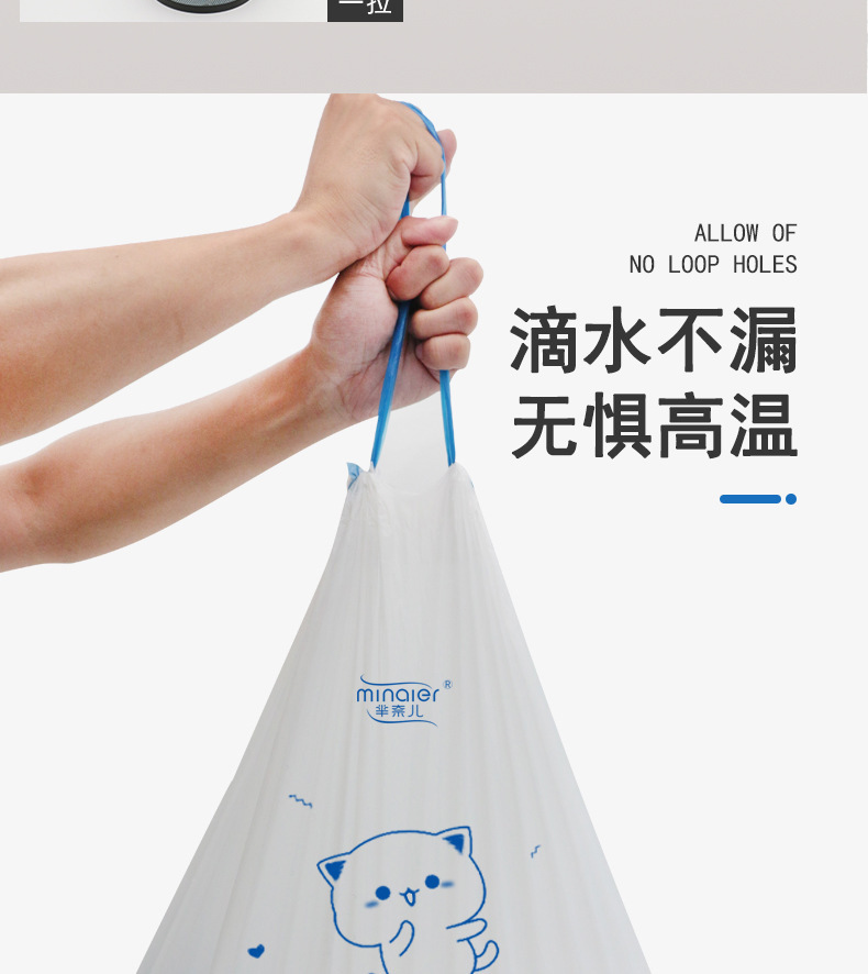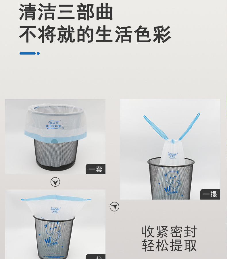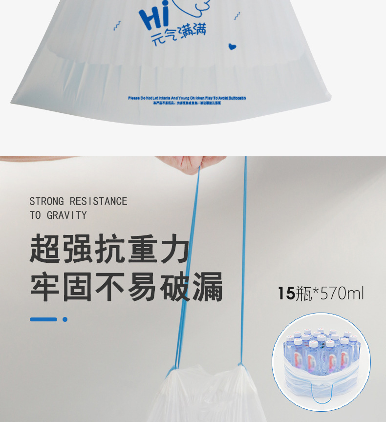 【5卷组合装!加厚抽绳垃圾袋】清洁三部曲 抽绳式加厚垃圾袋 承重强 75 只家用自动收口大号穿绳分类手提塑料袋