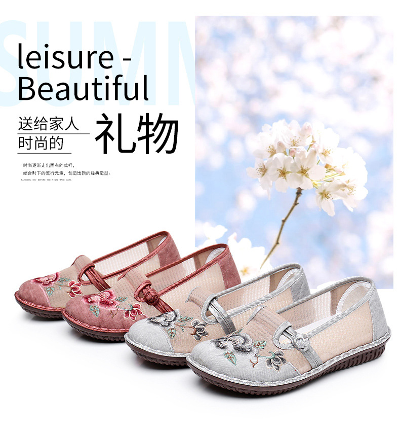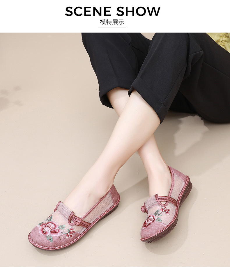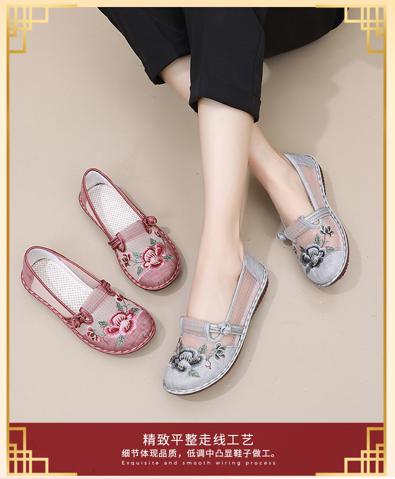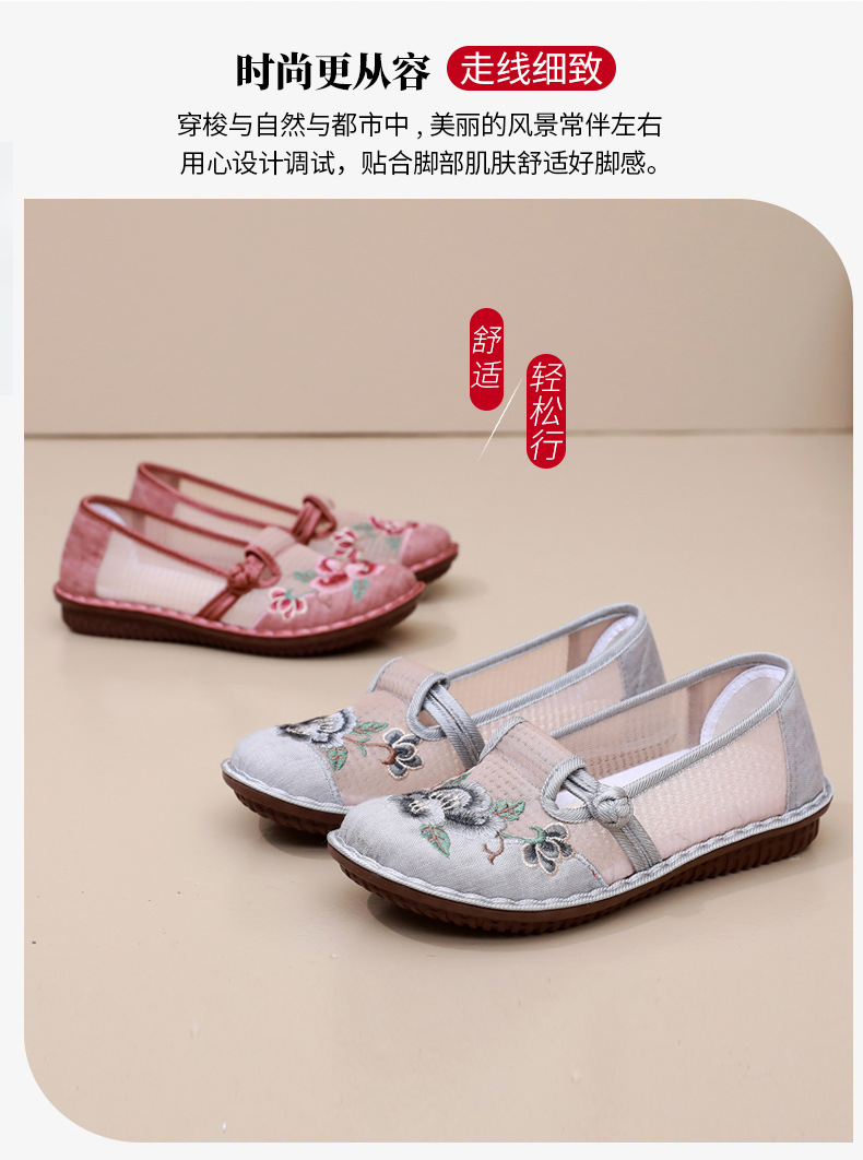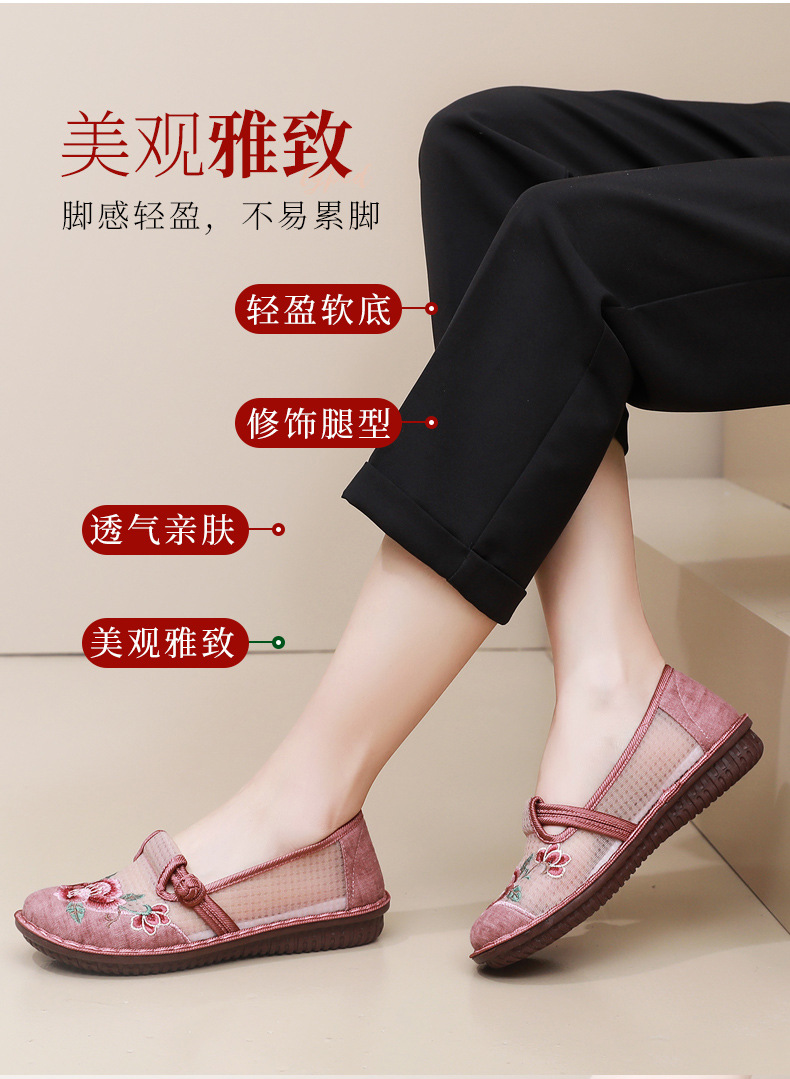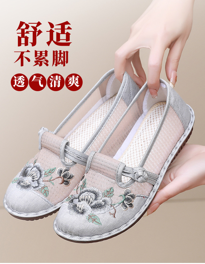 夏季民族风绣花鞋女!一脚蹬便捷时尚,老北京布鞋的舒适,网面透气舒适,夏季轻松驾驭,妈妈鞋复古时尚,搭配多种穿搭风格