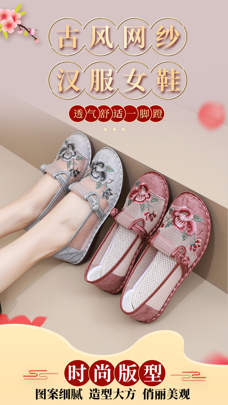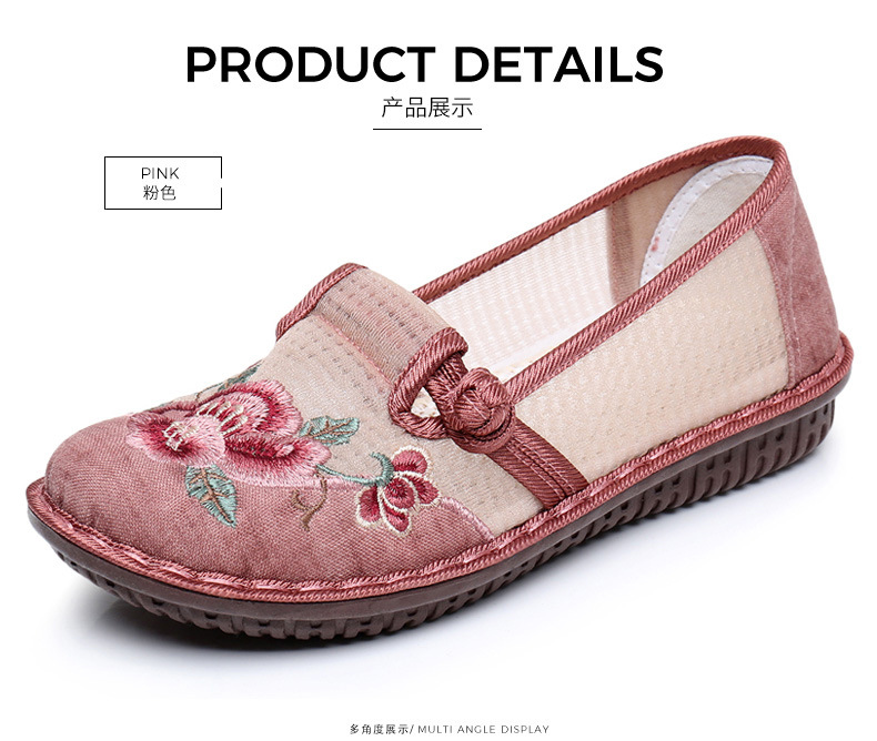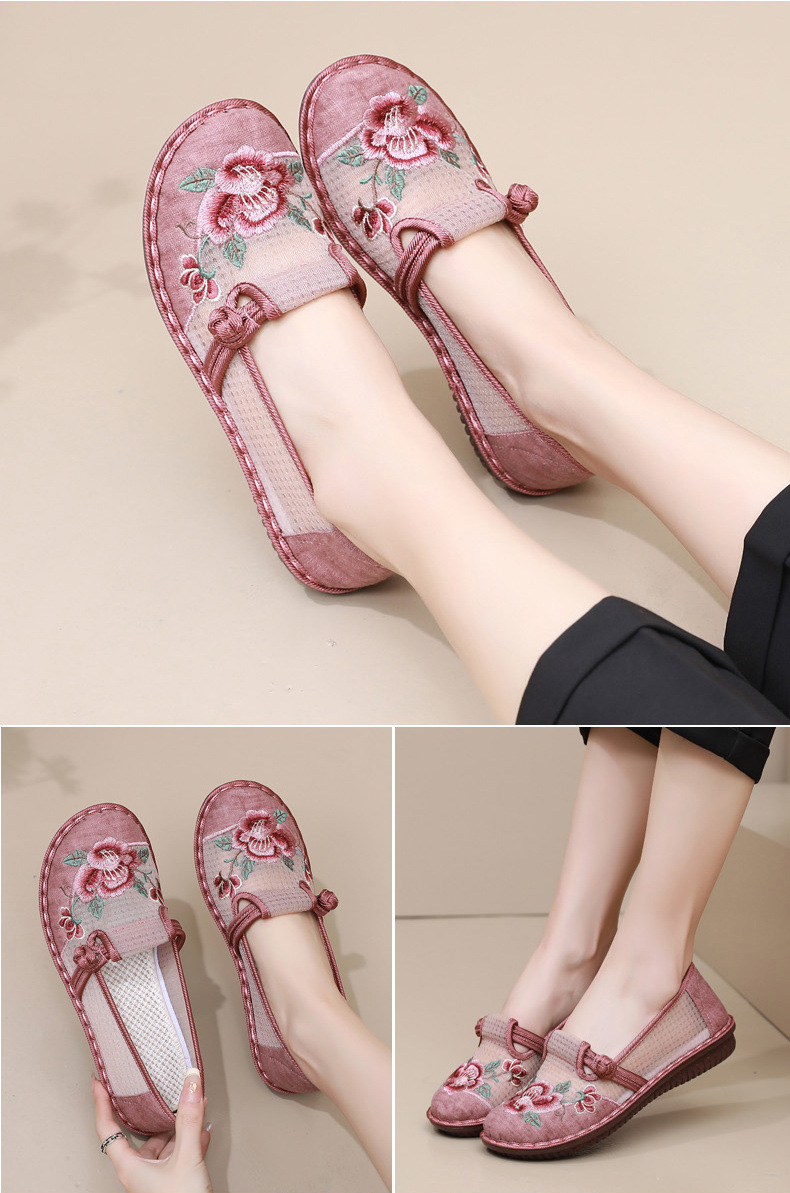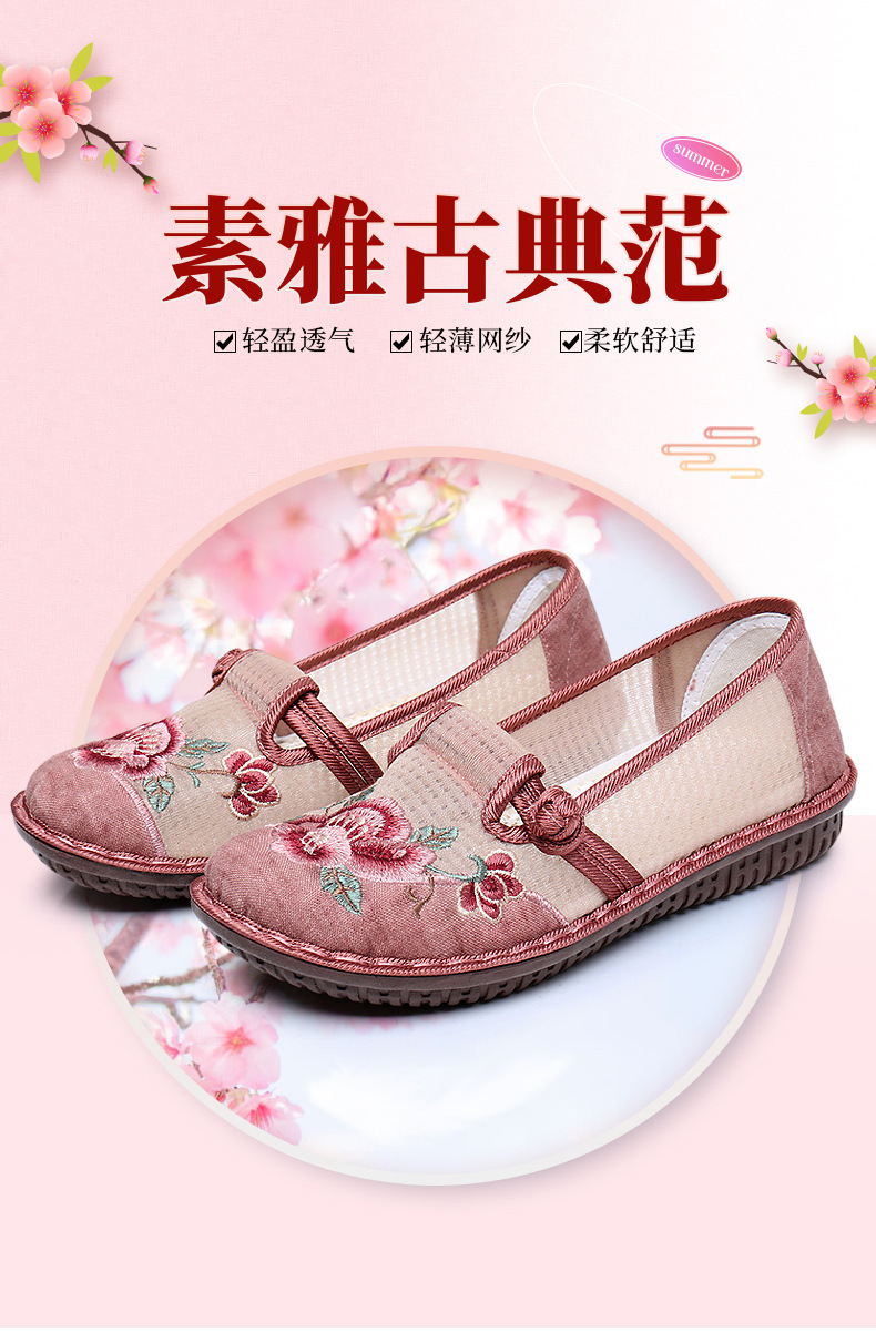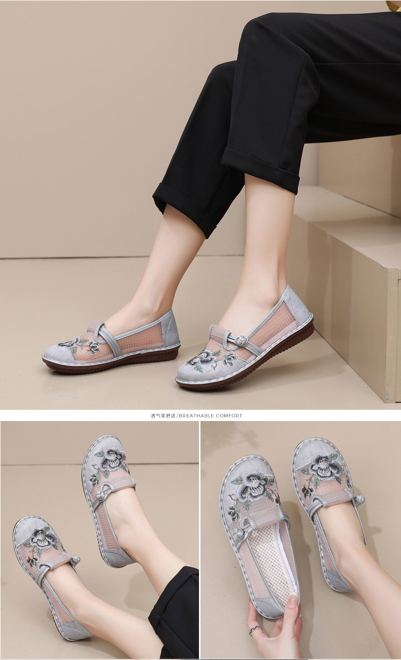 夏季民族风绣花鞋女!一脚蹬便捷时尚,老北京布鞋的舒适,网面透气舒适,夏季轻松驾驭,妈妈鞋复古时尚,搭配多种穿搭风格