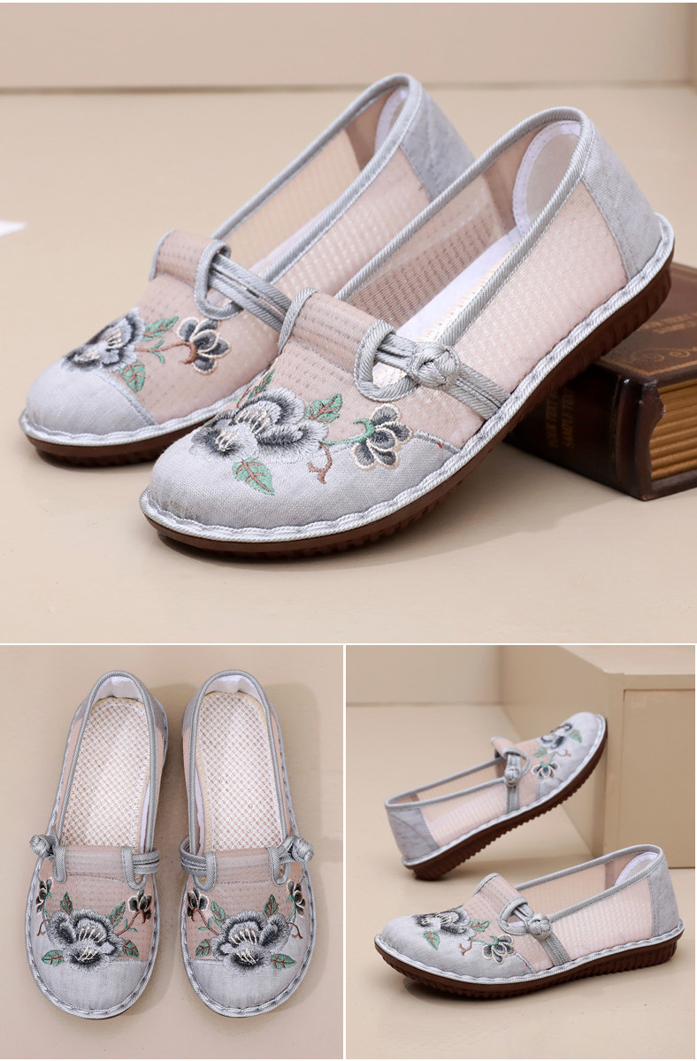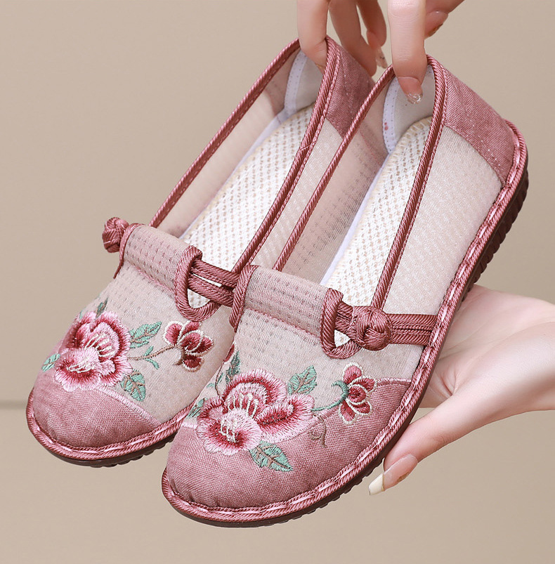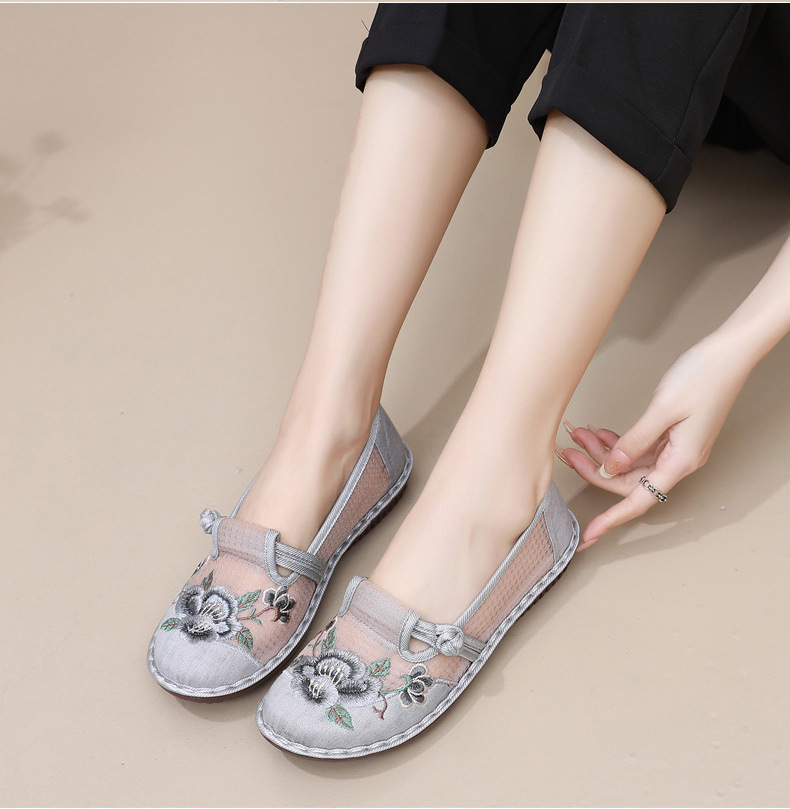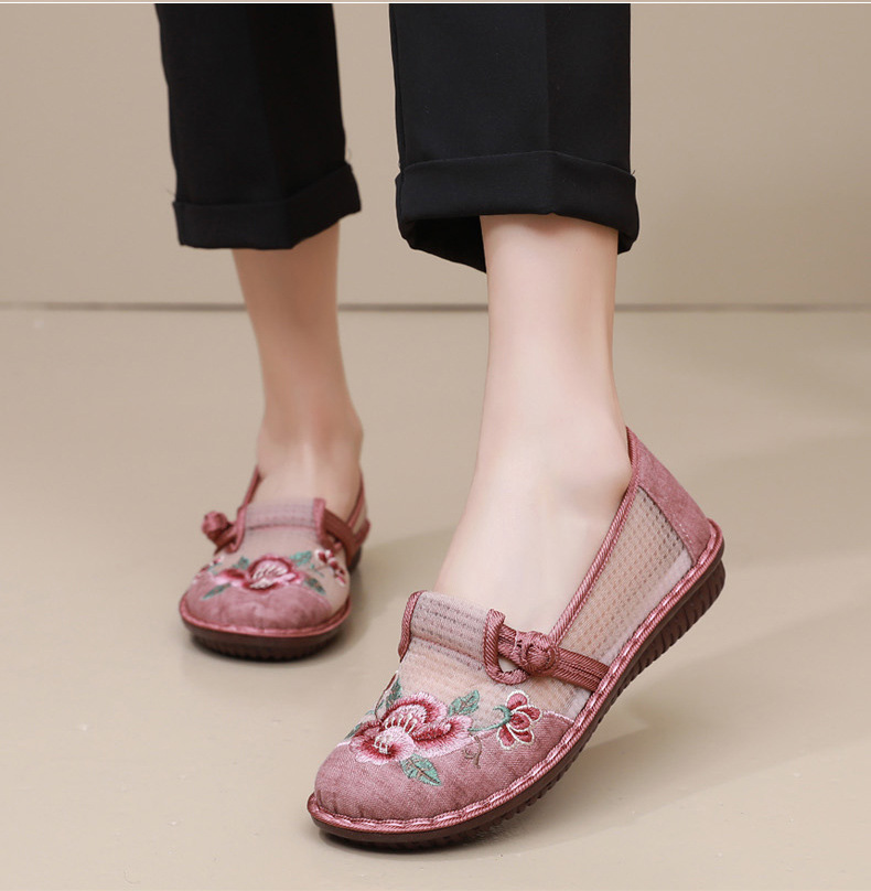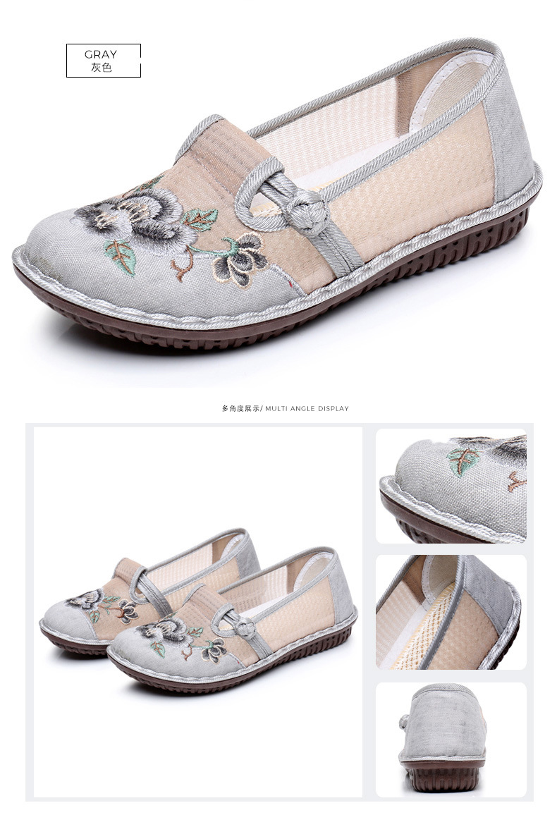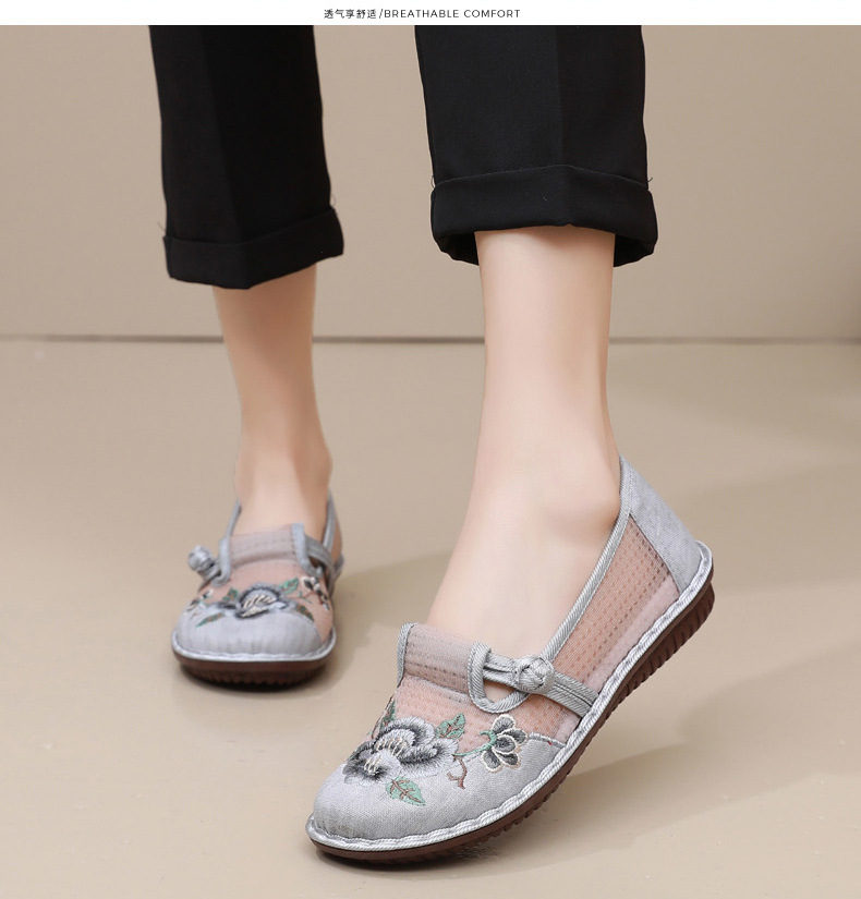 夏季民族风绣花鞋女!一脚蹬便捷时尚,老北京布鞋的舒适,网面透气舒适,夏季轻松驾驭,妈妈鞋复古时尚,搭配多种穿搭风格