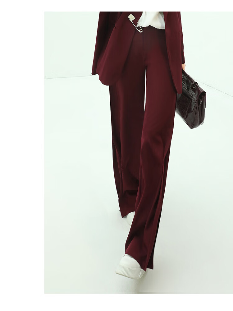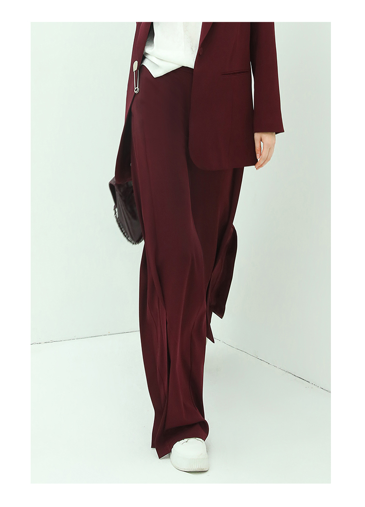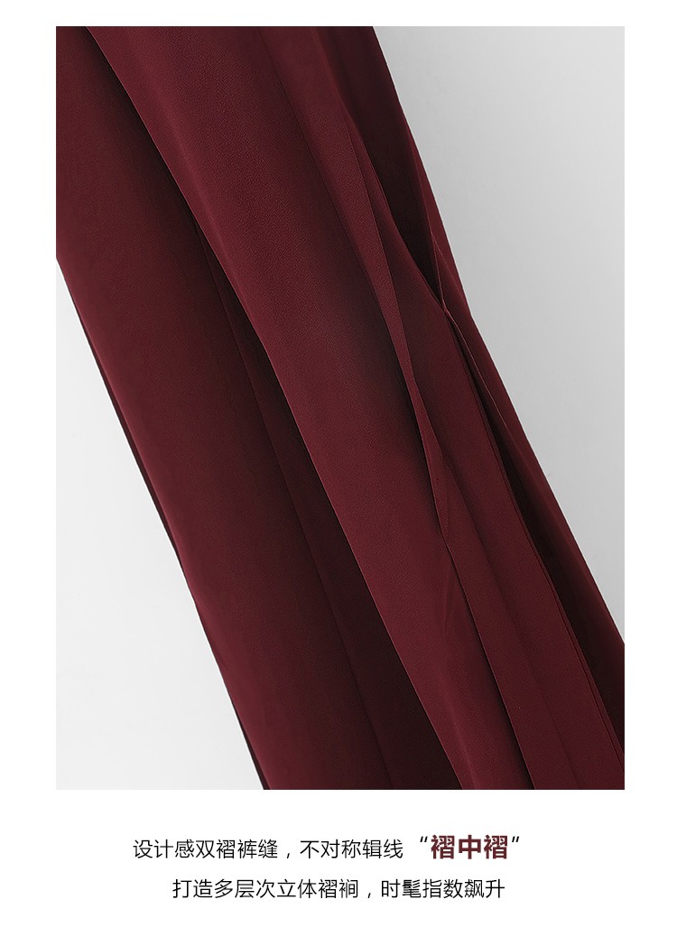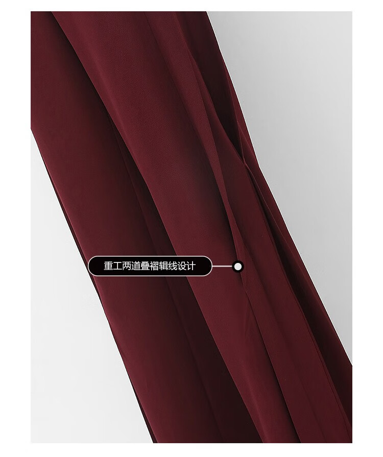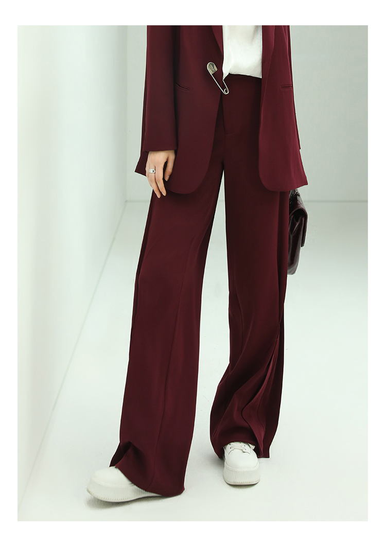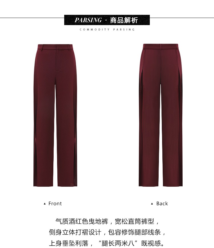 【秒杀特惠】COCOBELLA重工捏褶气质通勤酒红西裤女垂感高腰直筒裤PA617