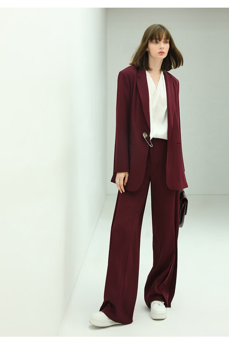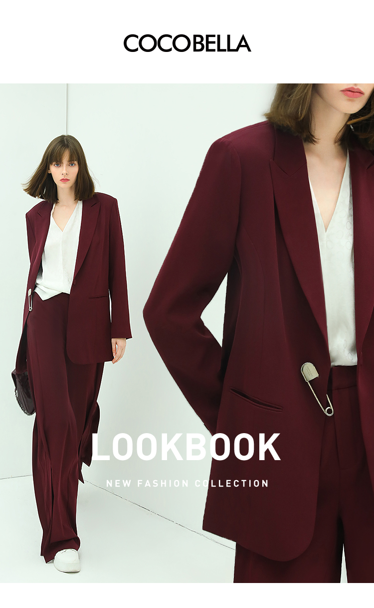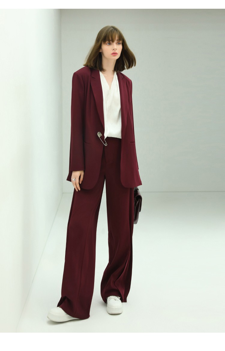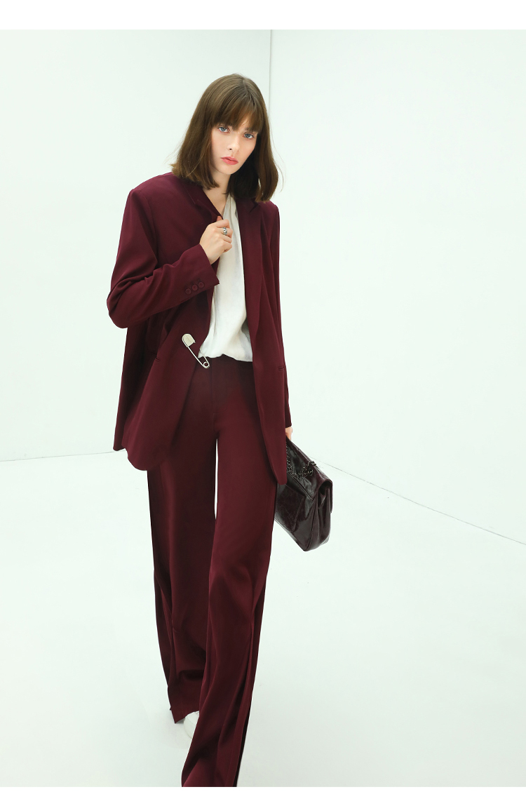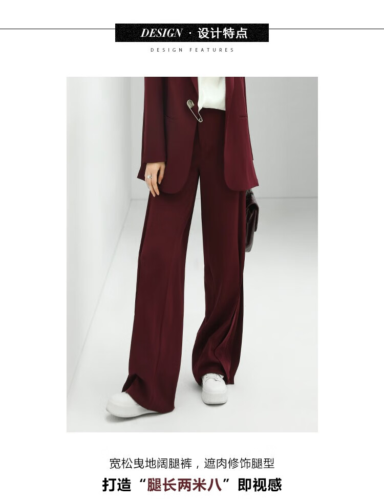 【秒杀特惠】COCOBELLA重工捏褶气质通勤酒红西裤女垂感高腰直筒裤PA617
