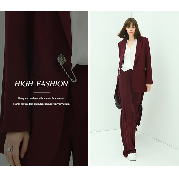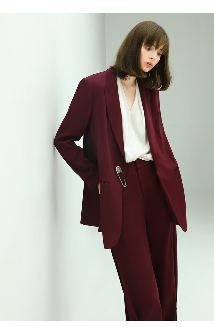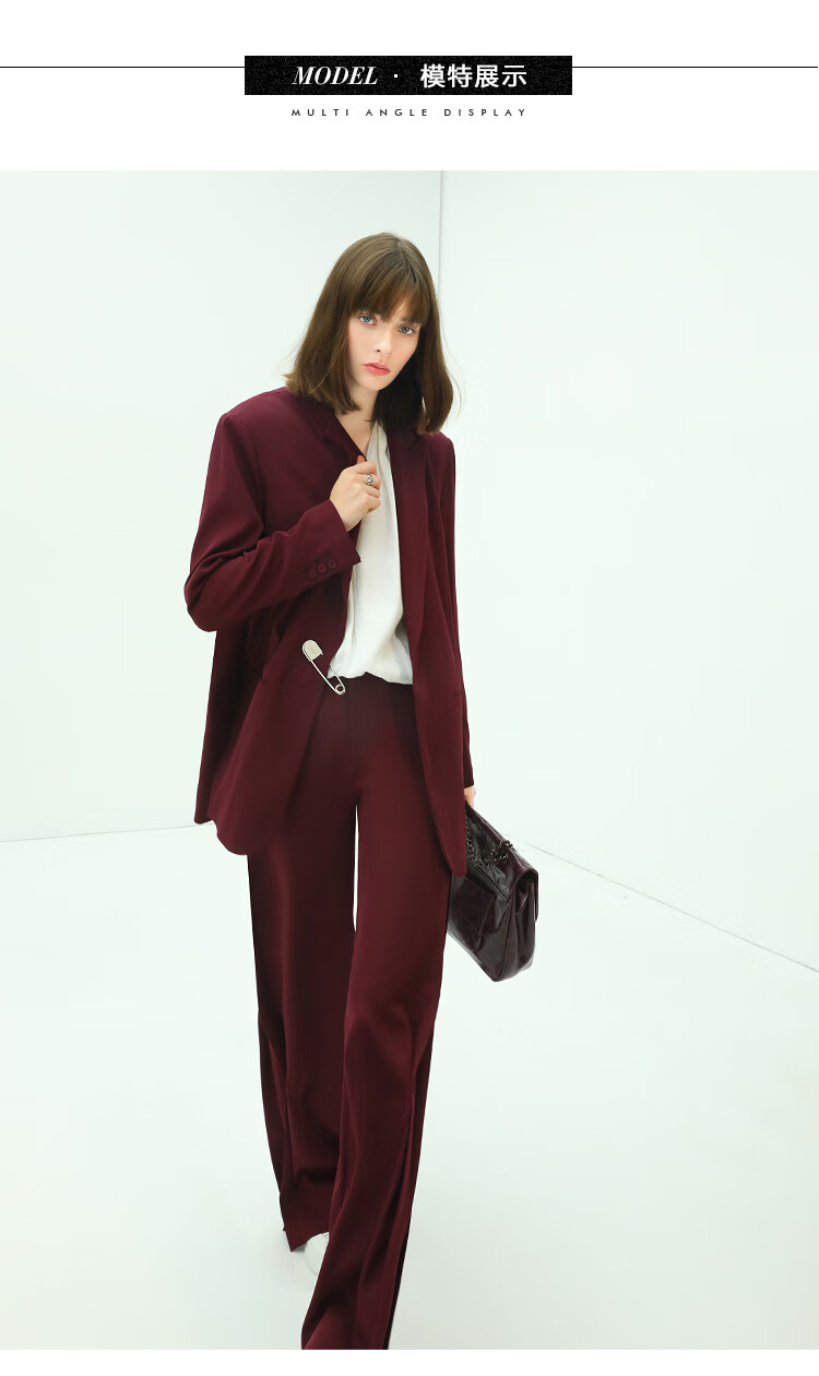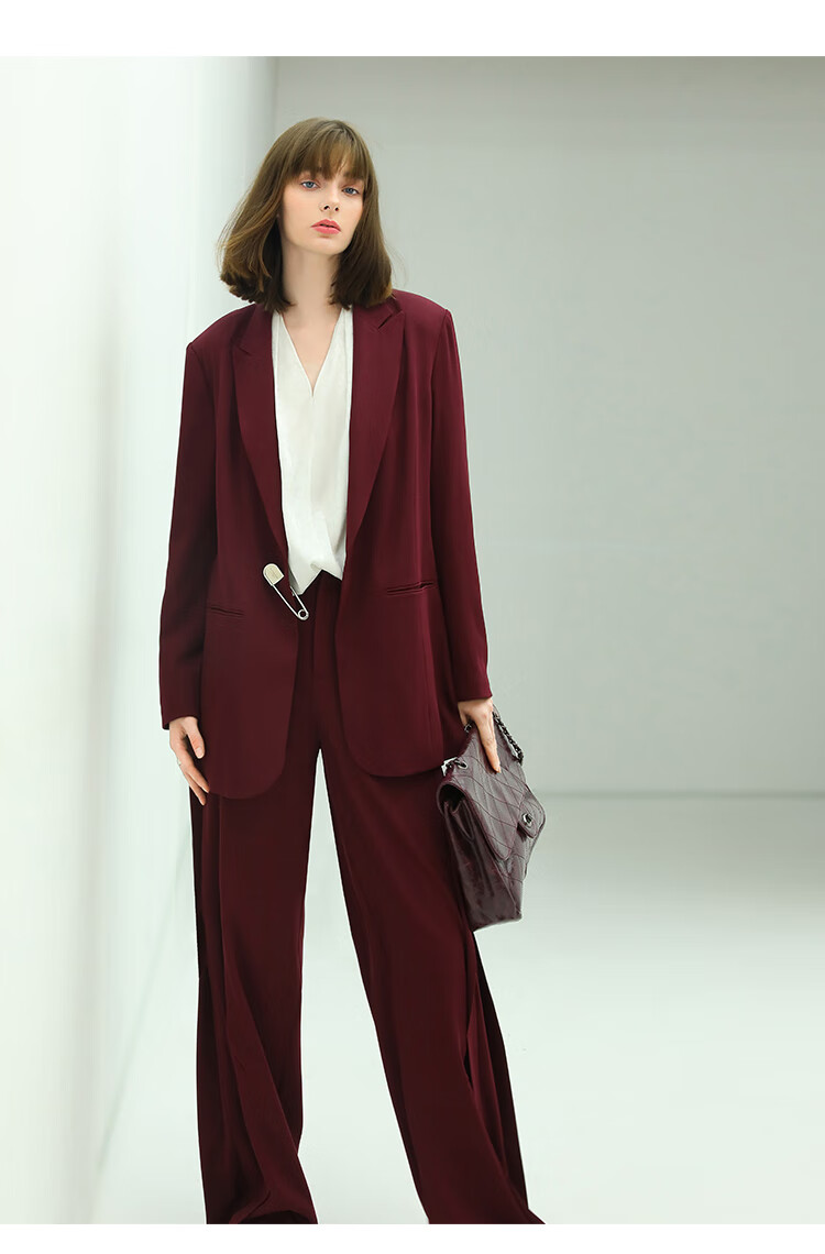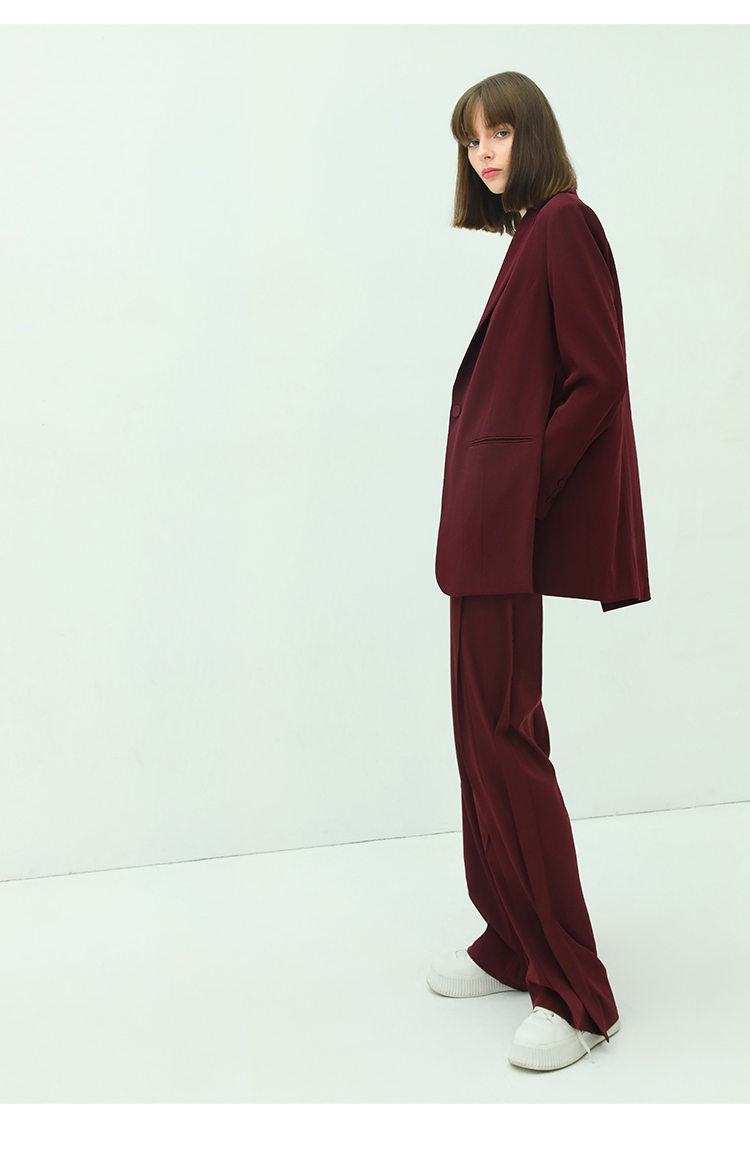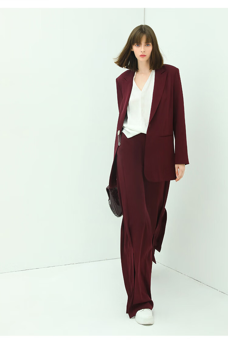 【秒杀特惠】COCOBELLA重工捏褶气质通勤酒红西裤女垂感高腰直筒裤PA617