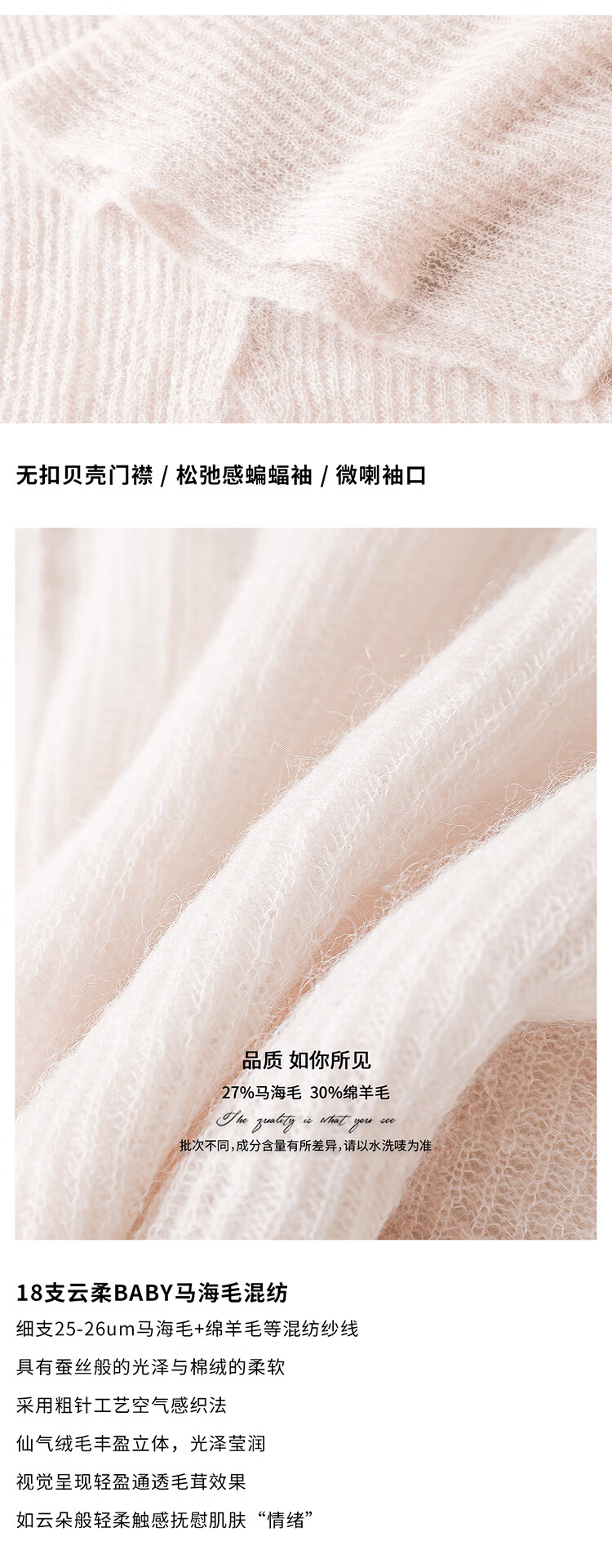 COCOBELLA细腻柔软舒适针织衫女秋温柔马海毛毛衣开衫MZ7092