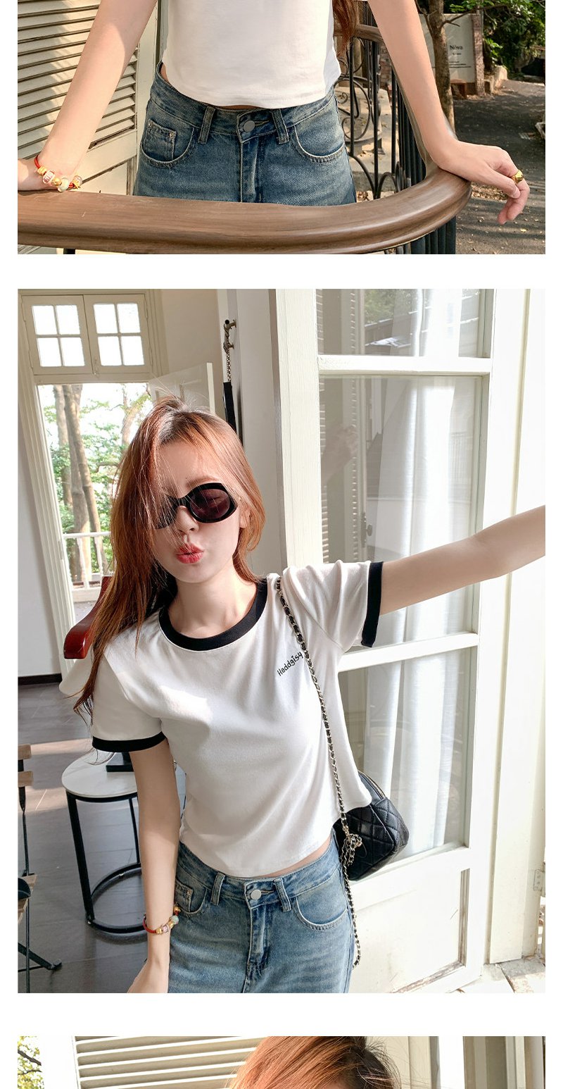 <曾小咸推荐>3.13现货秒杀 !微信超特价!韩系撞色字母刺绣短款t恤 日常109.99 立减50 秒杀59.99!!