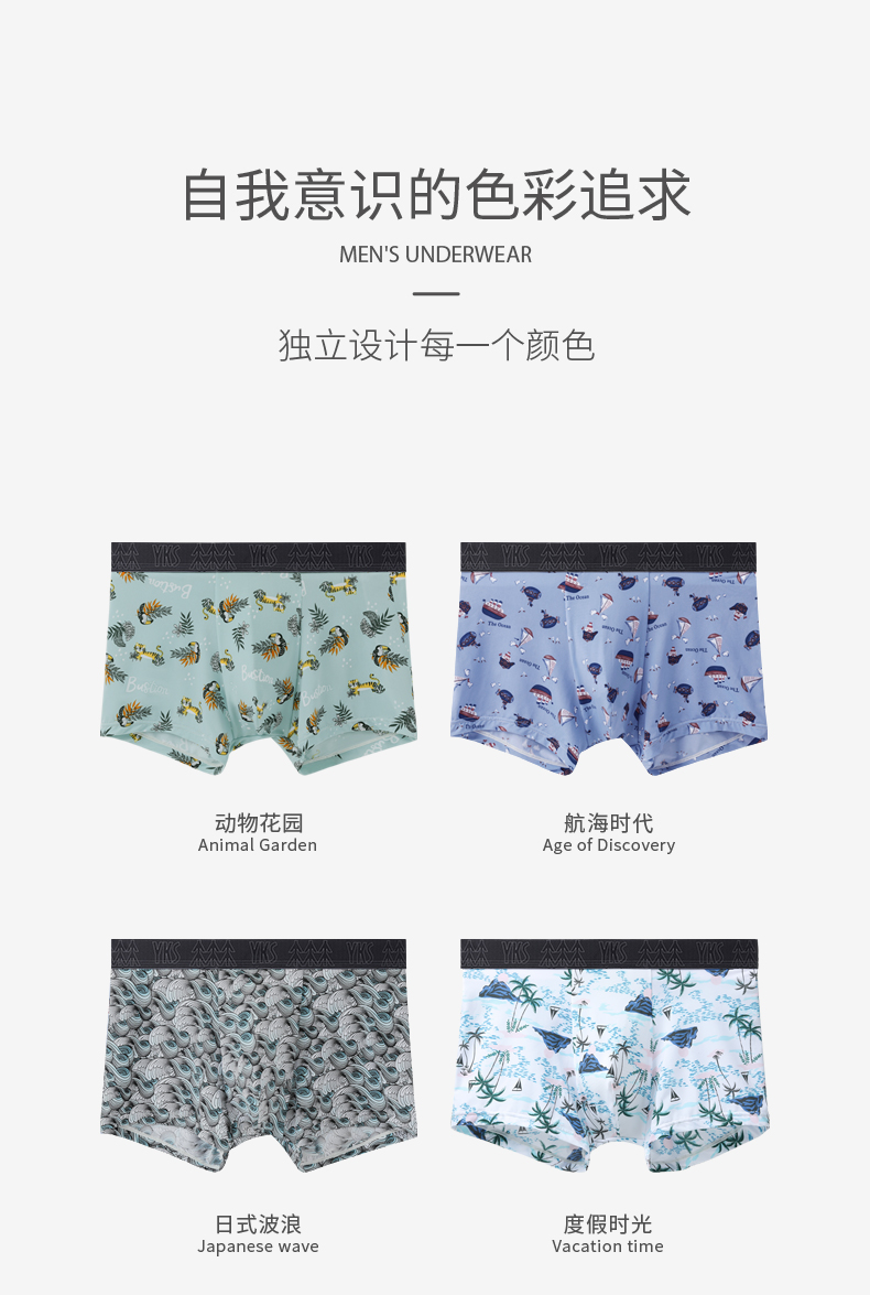 有棵树锦纶中腰冰丝抗菌男士四角裤3条装C-S320