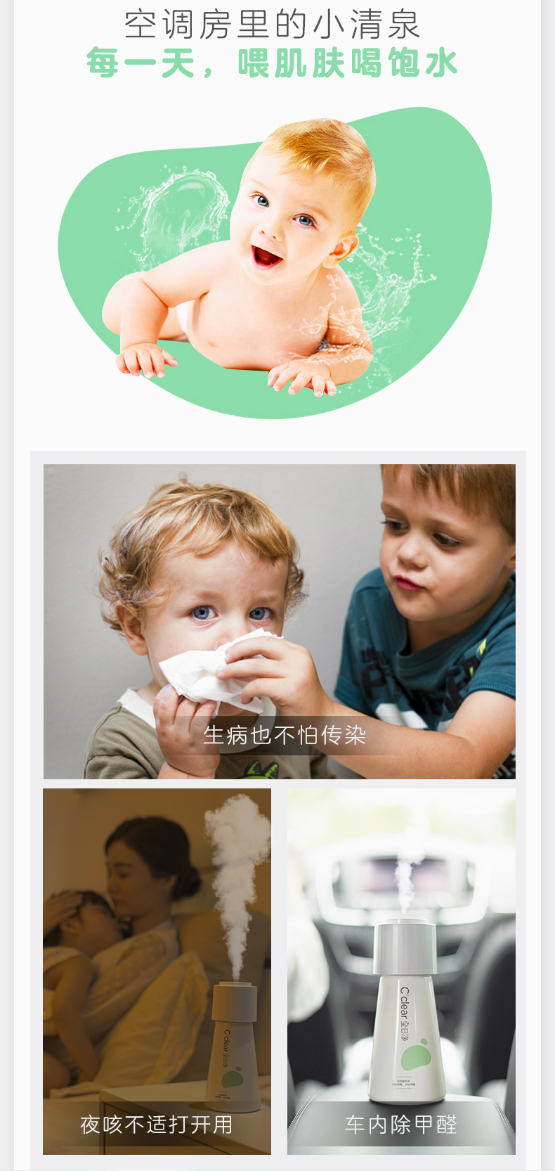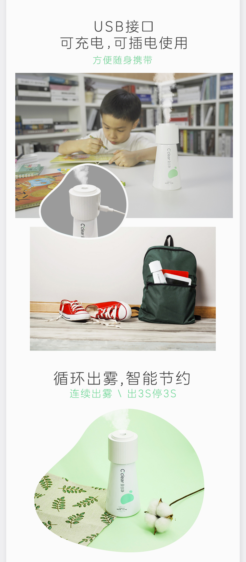CCZ全日净迷你孕妇婴儿补水家用usb小型可充电净化空气净化器ins