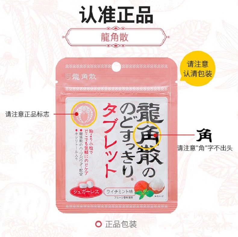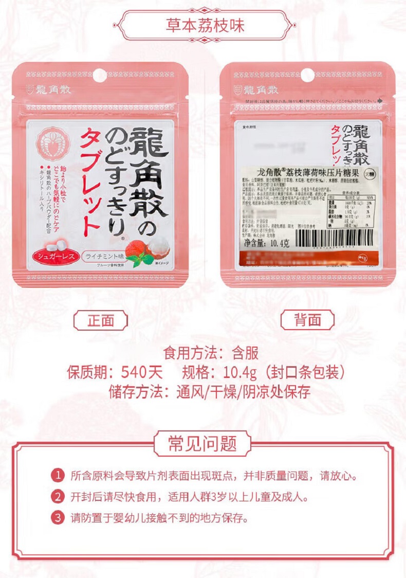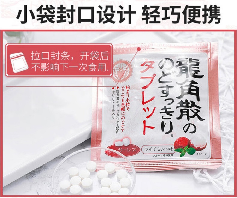 龙角散 荔枝薄荷味无糖压片糖果 10.4g/包