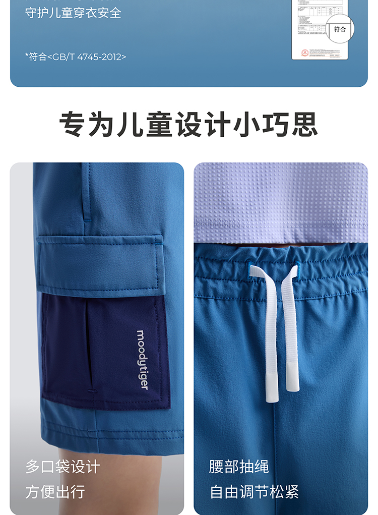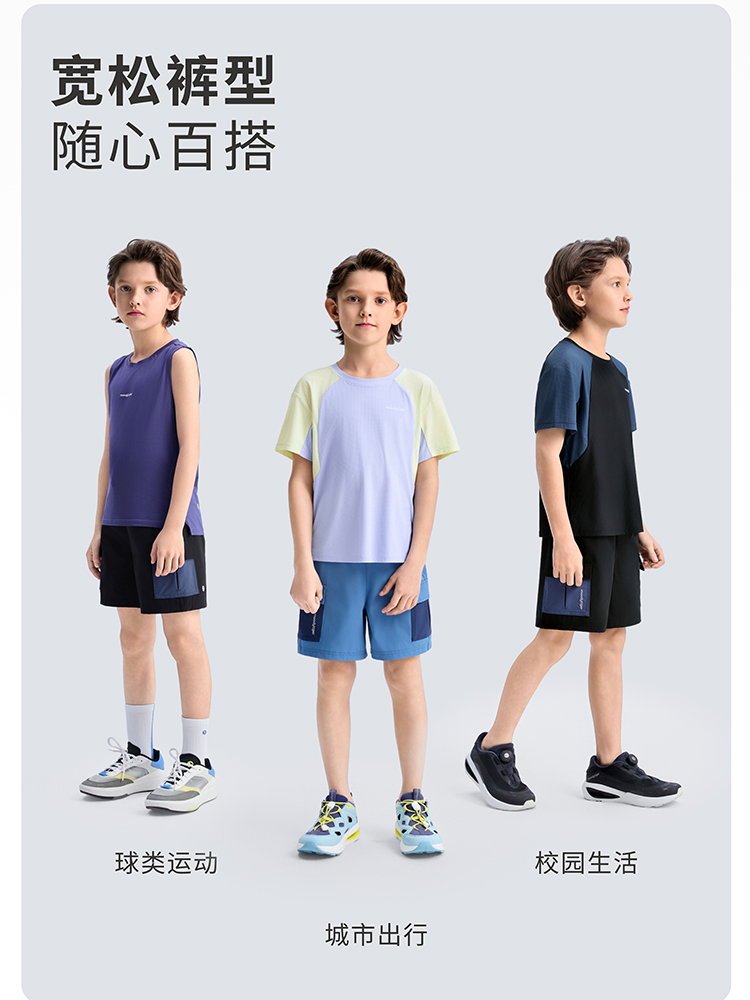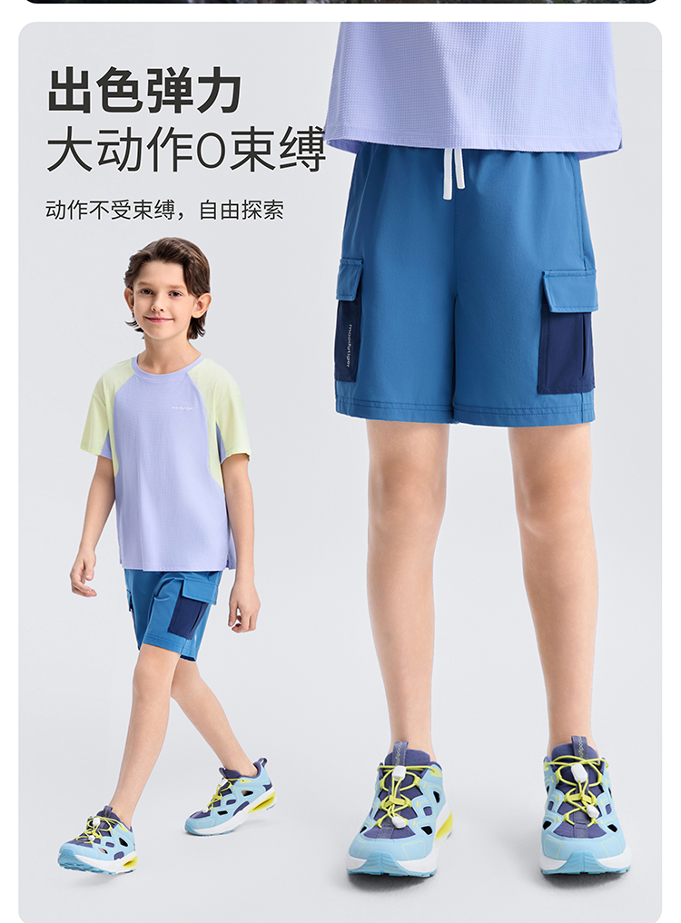 【DR暑假】moodytiger男童短裤25夏新运动宽松凉感裤高弹拒水裤子52111601