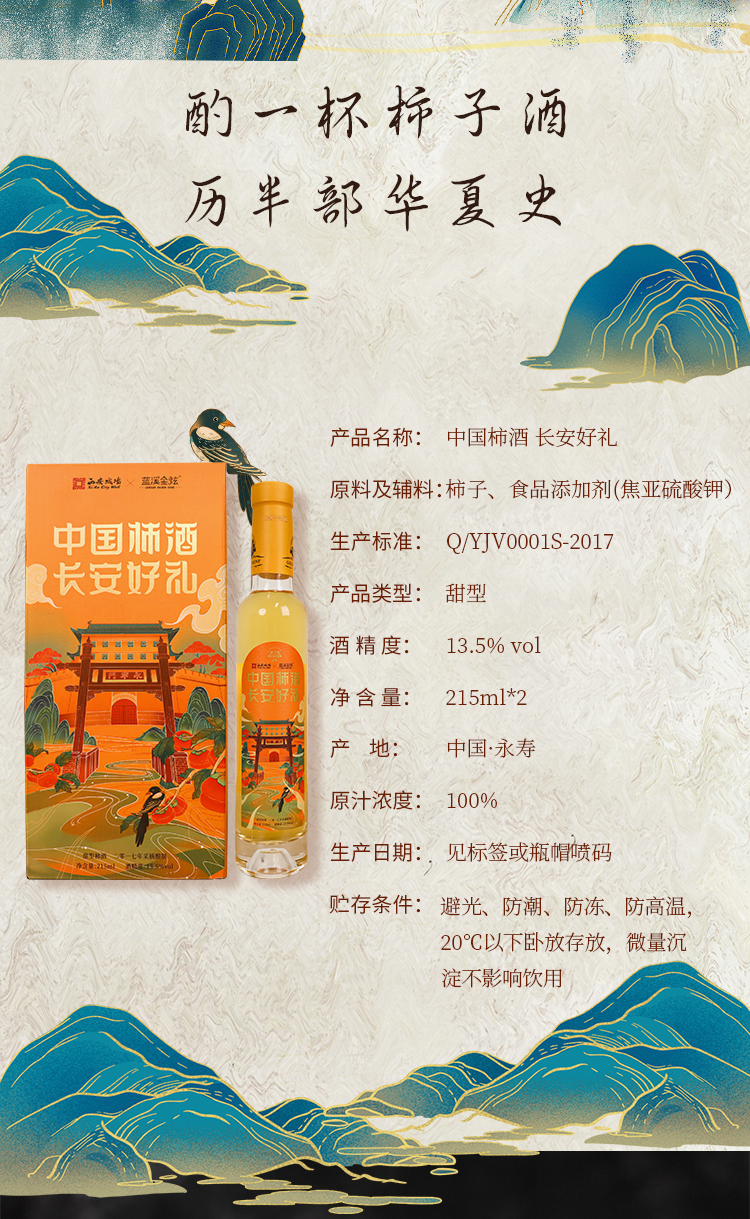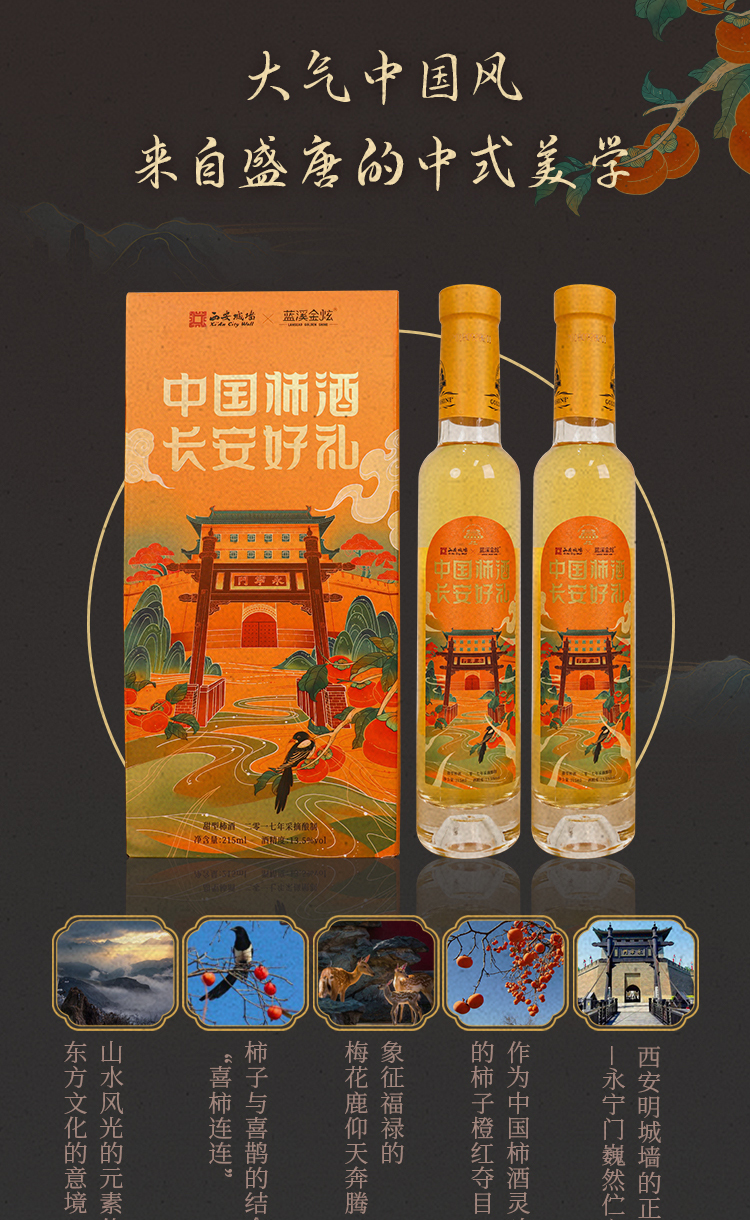蓝溪金炫长安好礼柿酒215ml*2瓶礼盒装 果香浓郁 原柿精酿