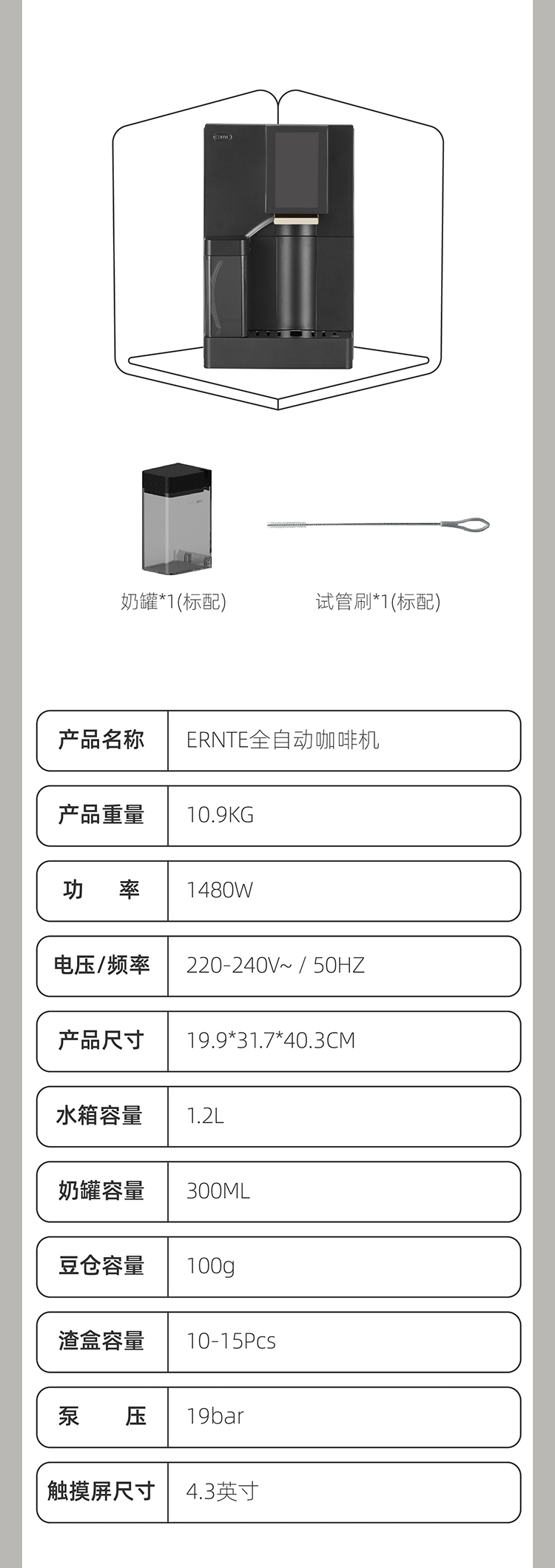 ERNTE昂特意式咖啡机商用家用小型全自动研磨一体机办公室用