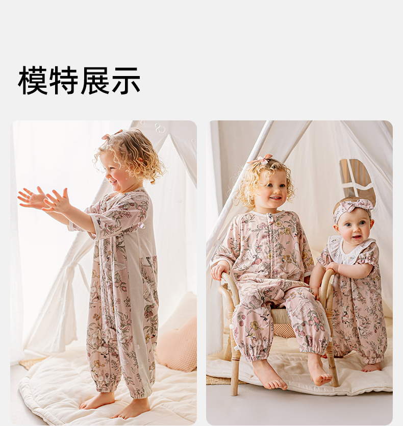 【宝宝安睡】EMXEE嫚熙婴童纱罗七分袖分腿睡袋