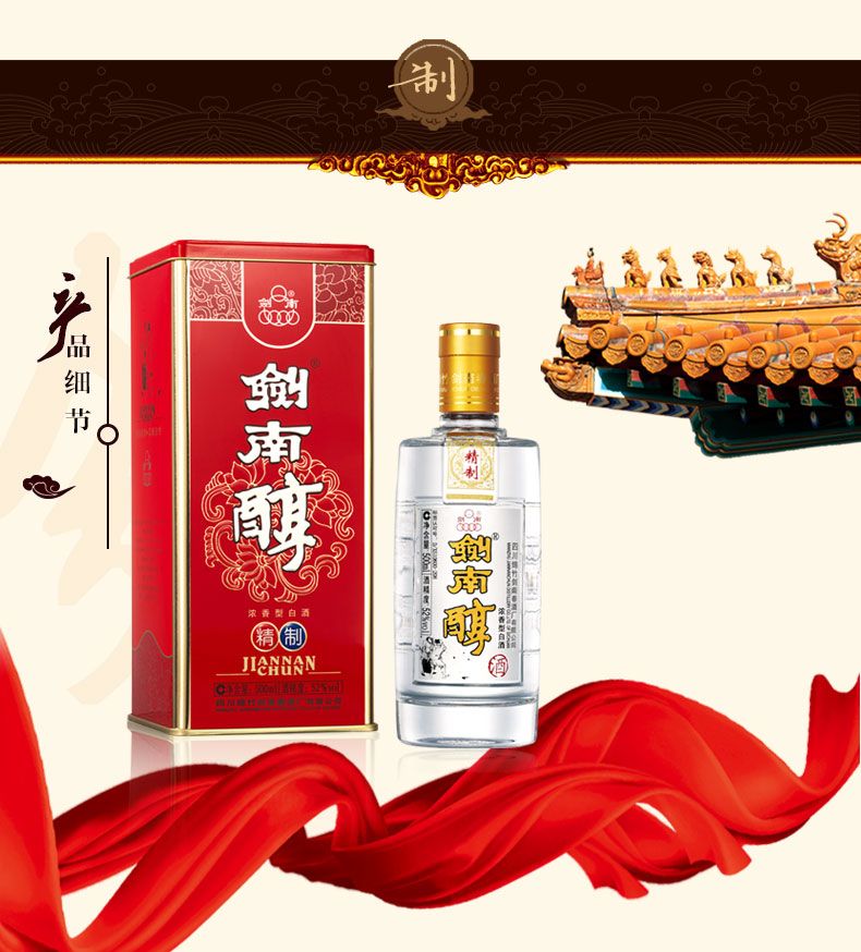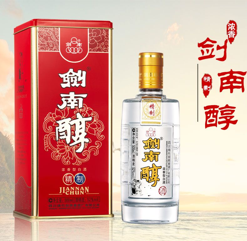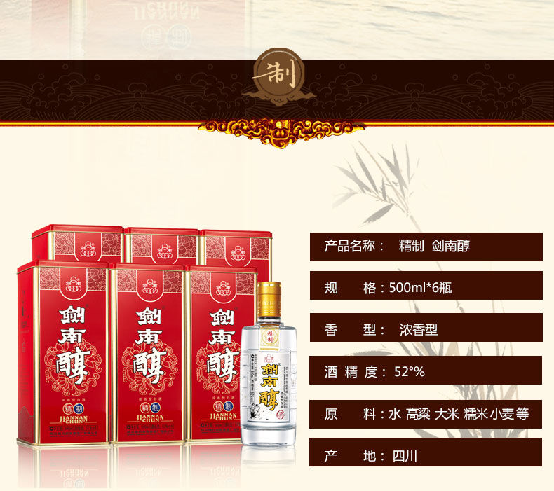 2021年精制剑南醇 52度浓香型白酒 整箱500ml*6瓶包邮