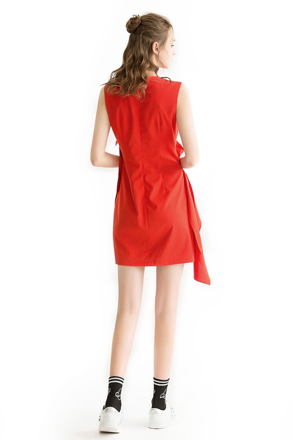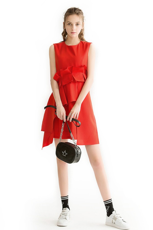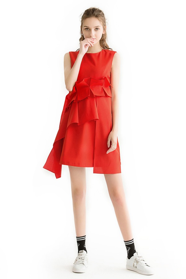 WEN&VI 不规则花边红色连衣裙 1042