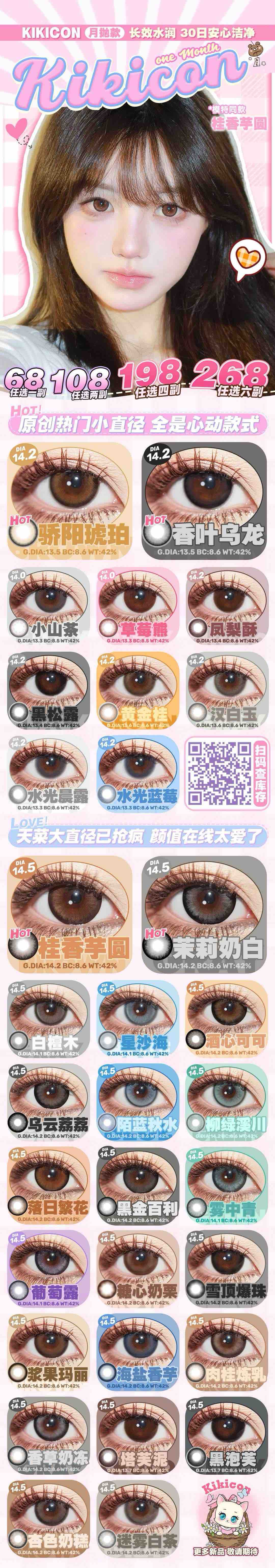 (热卖活动)(月抛)Kikicon月抛 (0-800度)68/副 108/2副 198/4副 268/6副