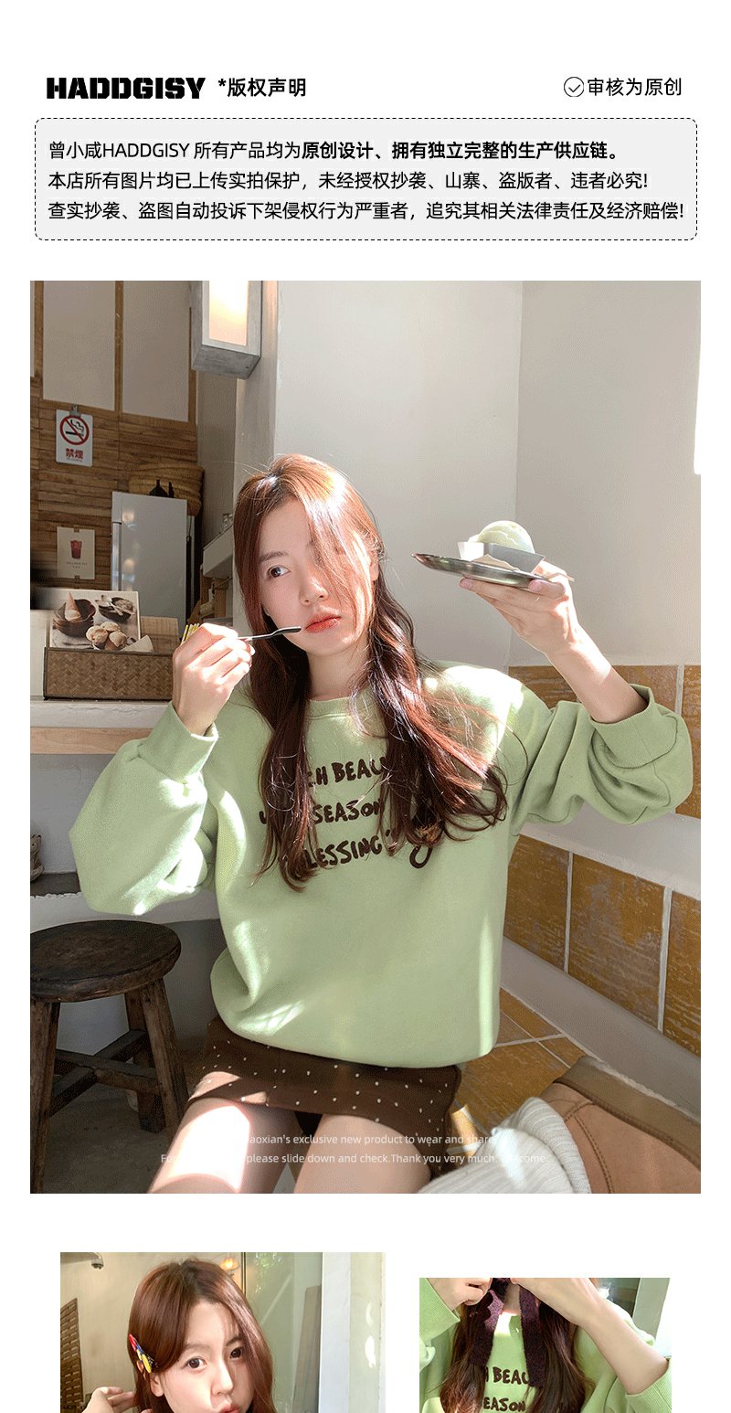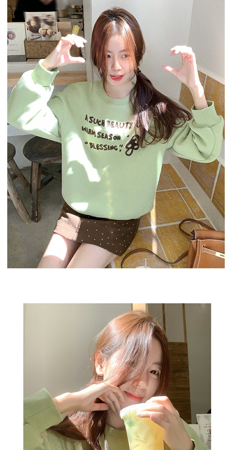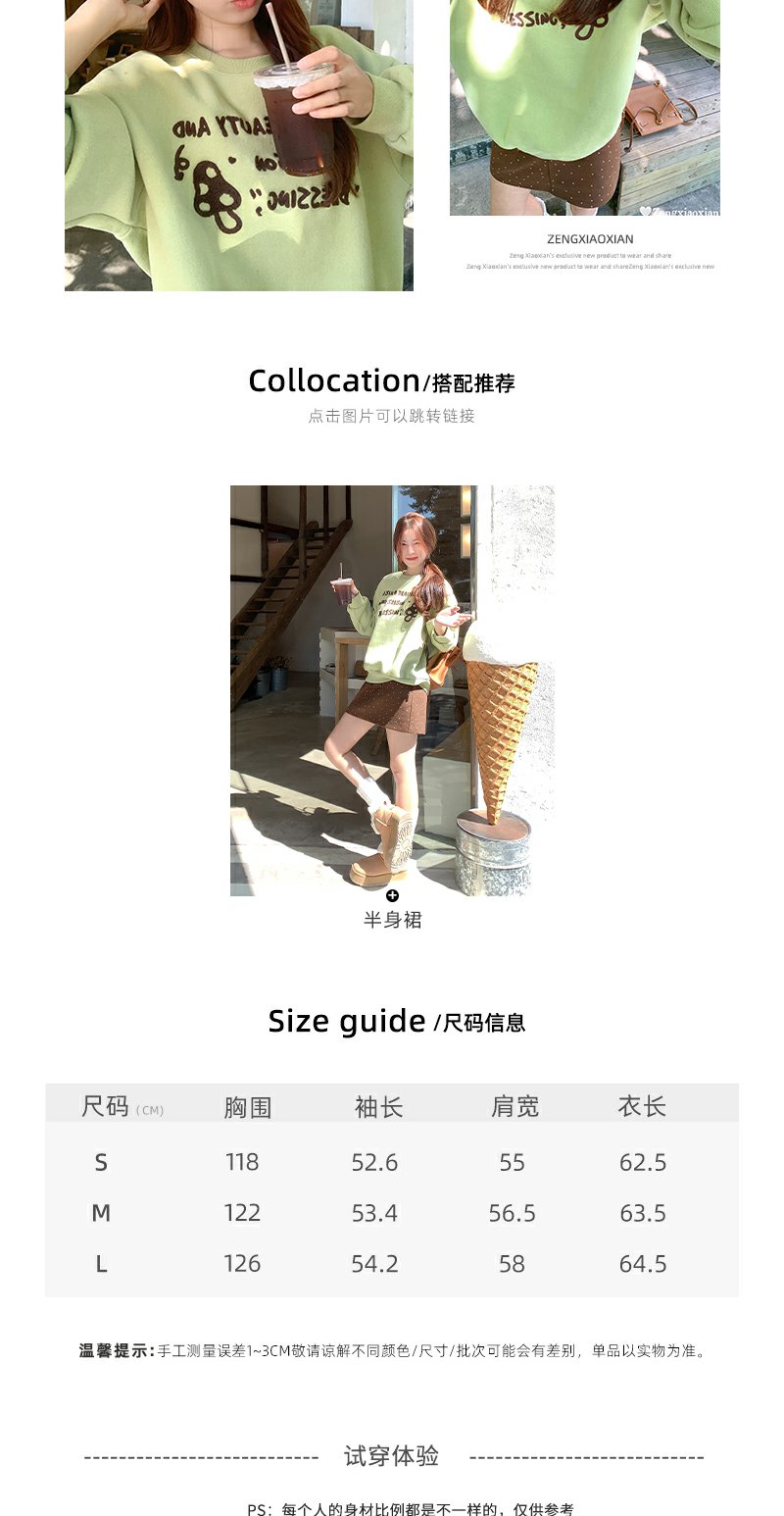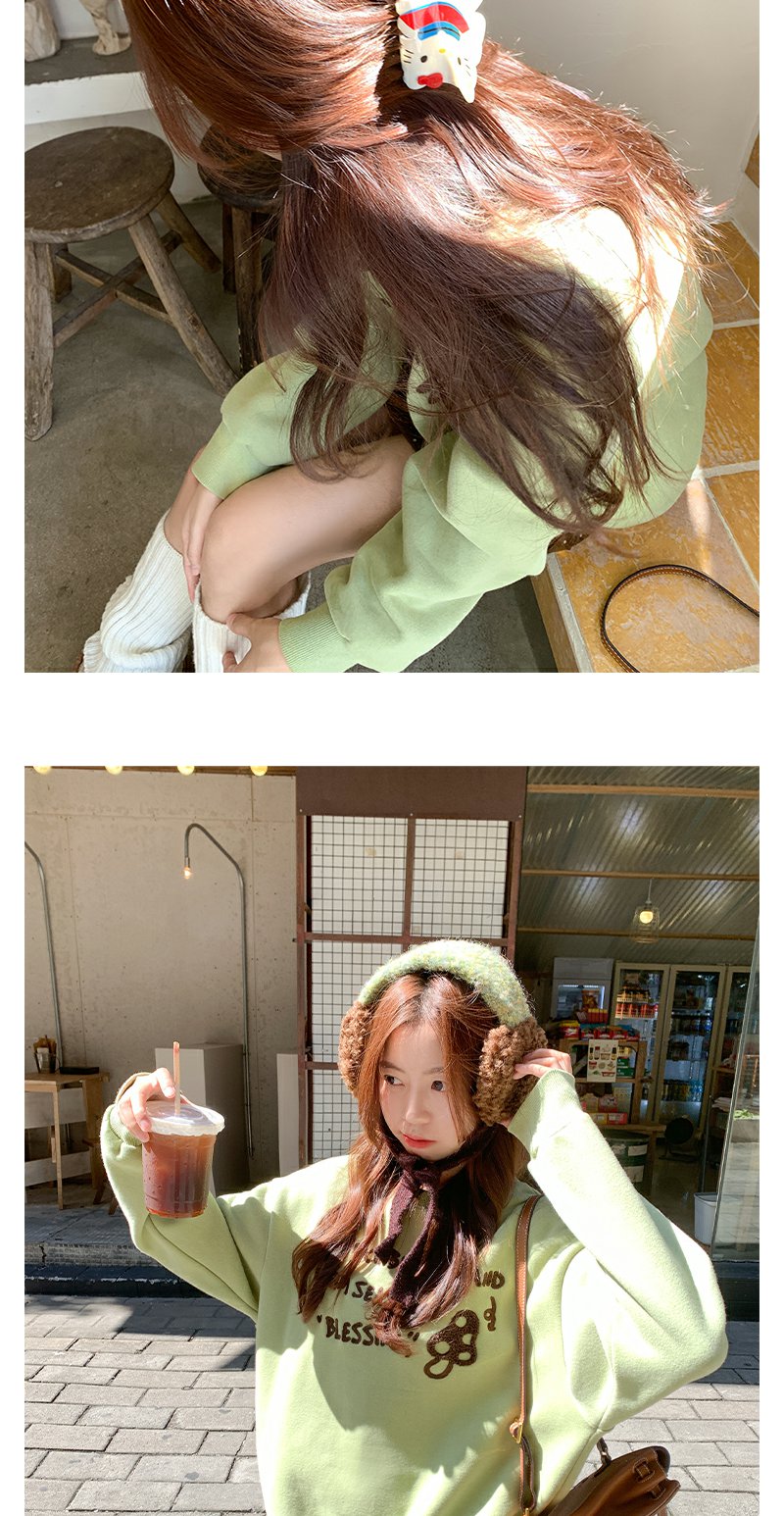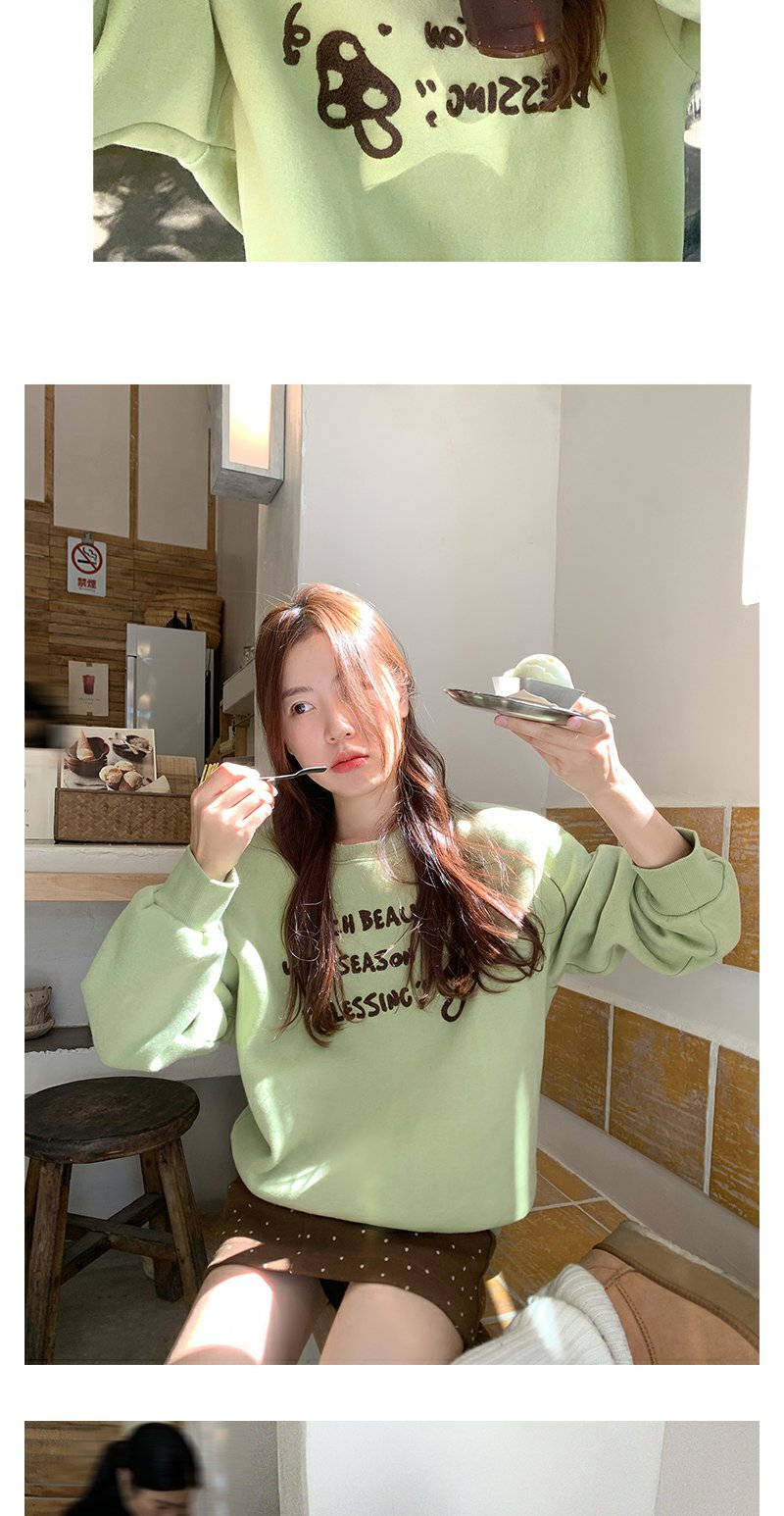 <曾小咸推荐>橄榄绿蘑菇字母绣花卫衣